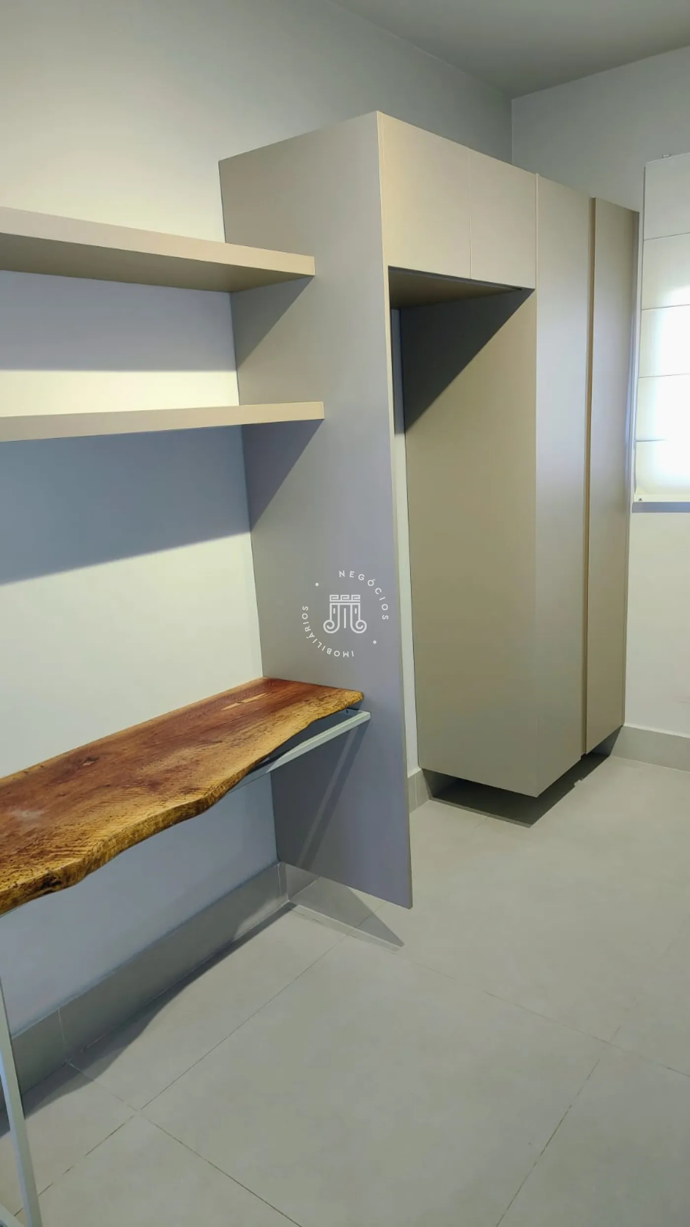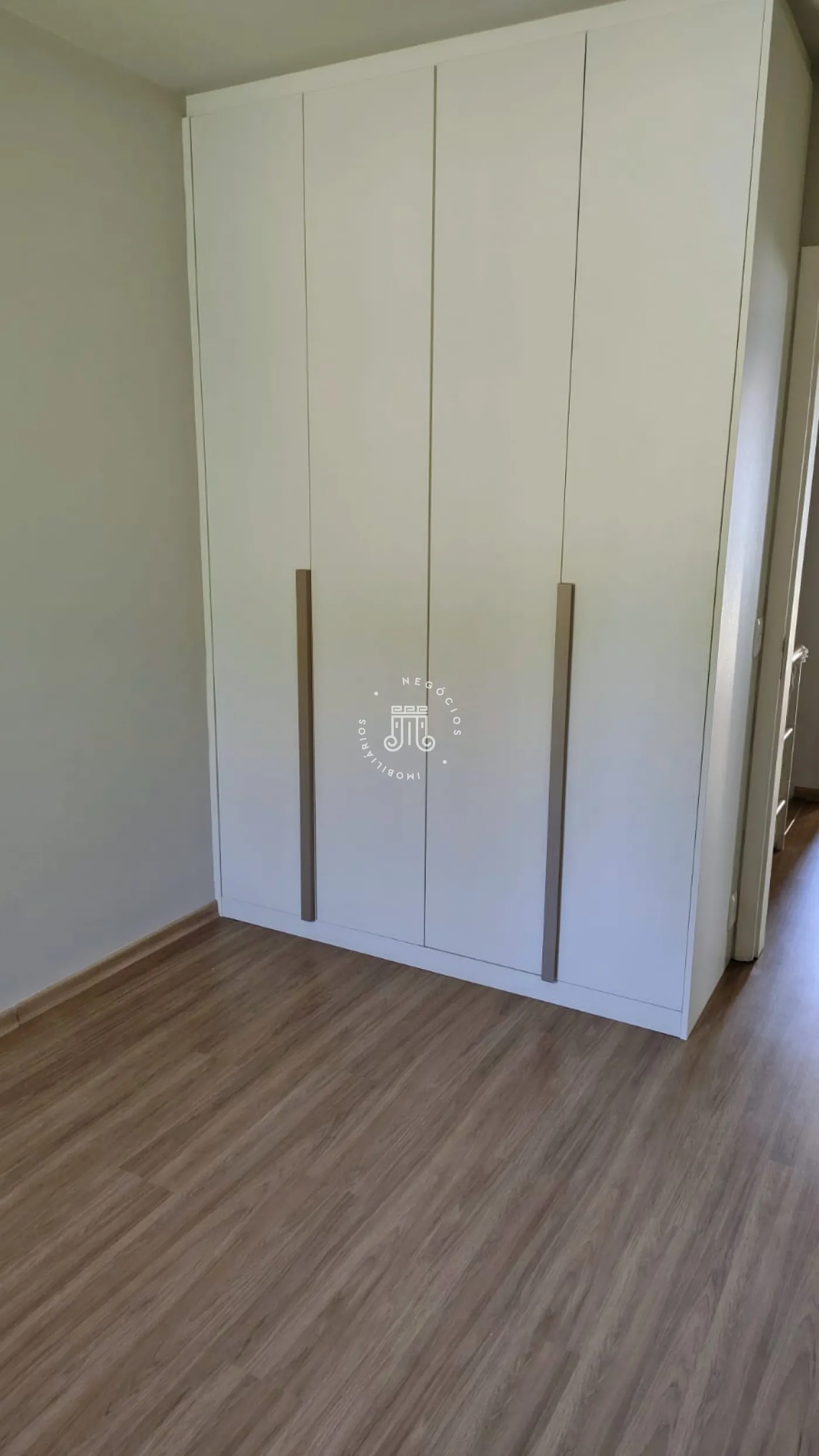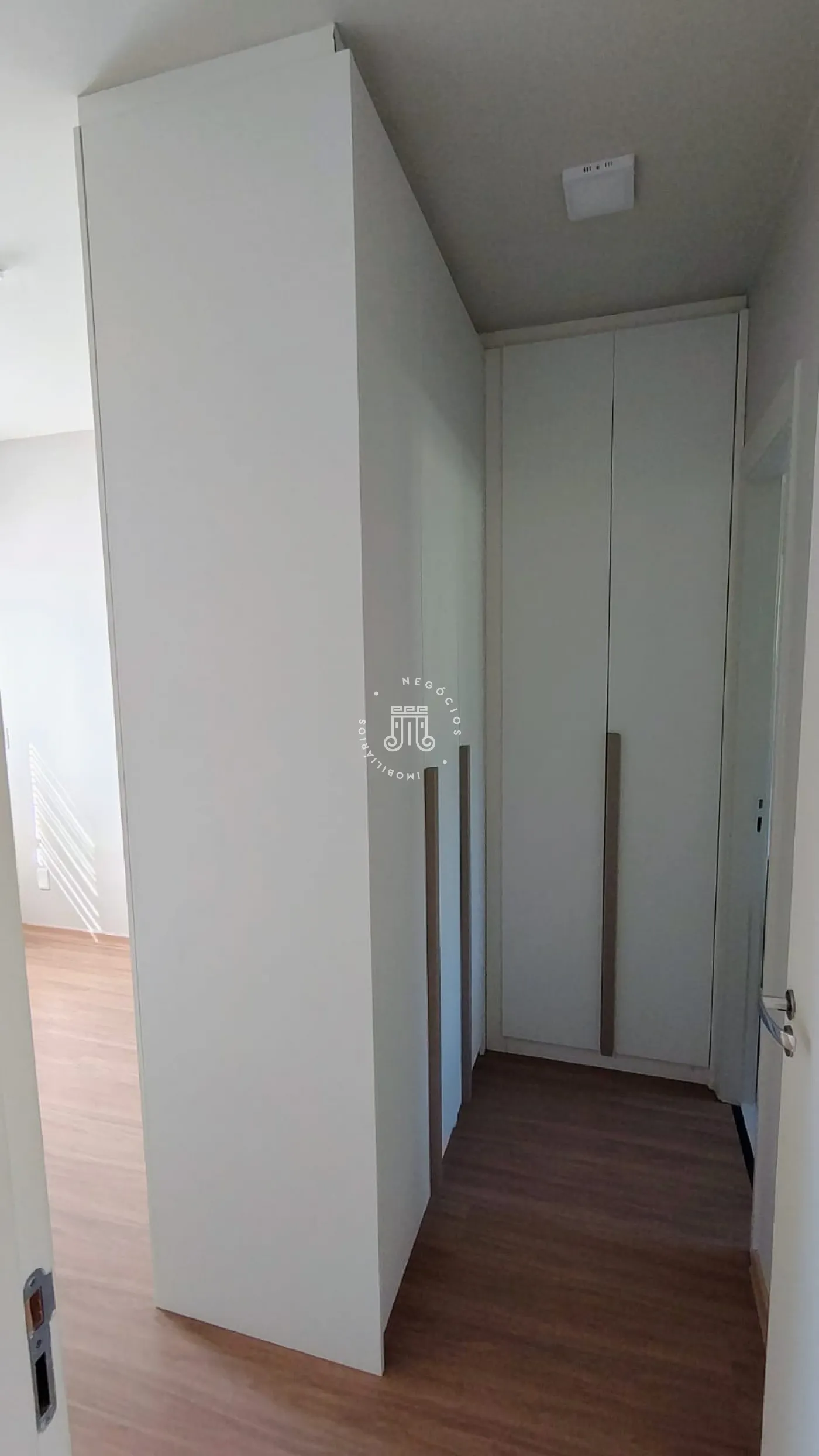 O sobrado possui 89m² de área construída, distribuídos em pavimento superior com 3 quartos, sendo uma suíte, todos com armários planejados, piso laminado e um banheiro social com piso cerâmico e box blindex, assim como o da suíte.