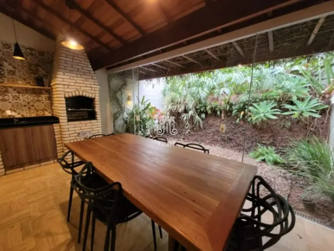 A área gourmet, com fechamento em vidro, é o espaço ideal para momentos de descontração em qualquer época do ano. O sobrado conta ainda com duas vagas de garagem, completando o conjunto de comodidades que valorizam o bem-estar e a praticidade.