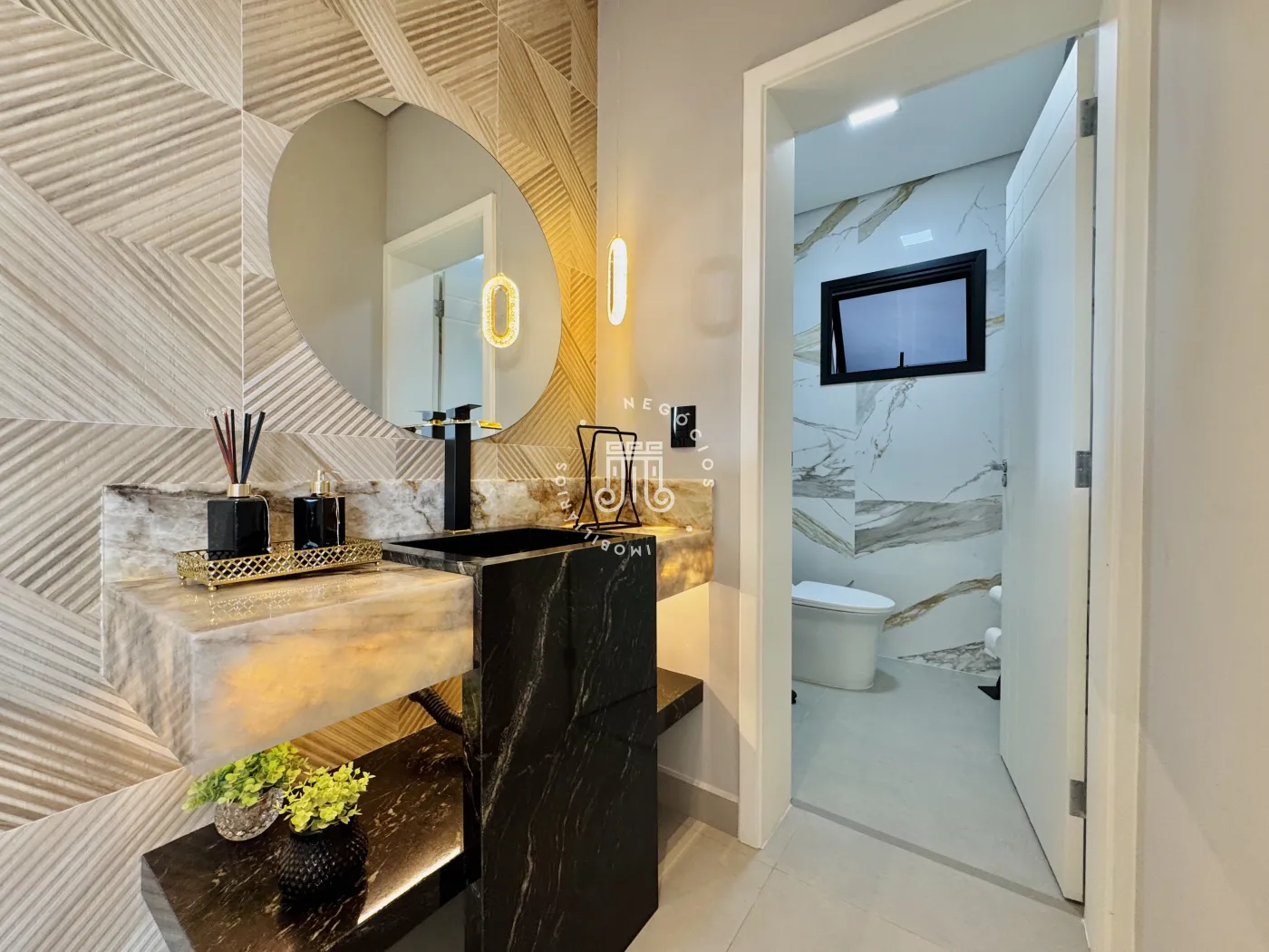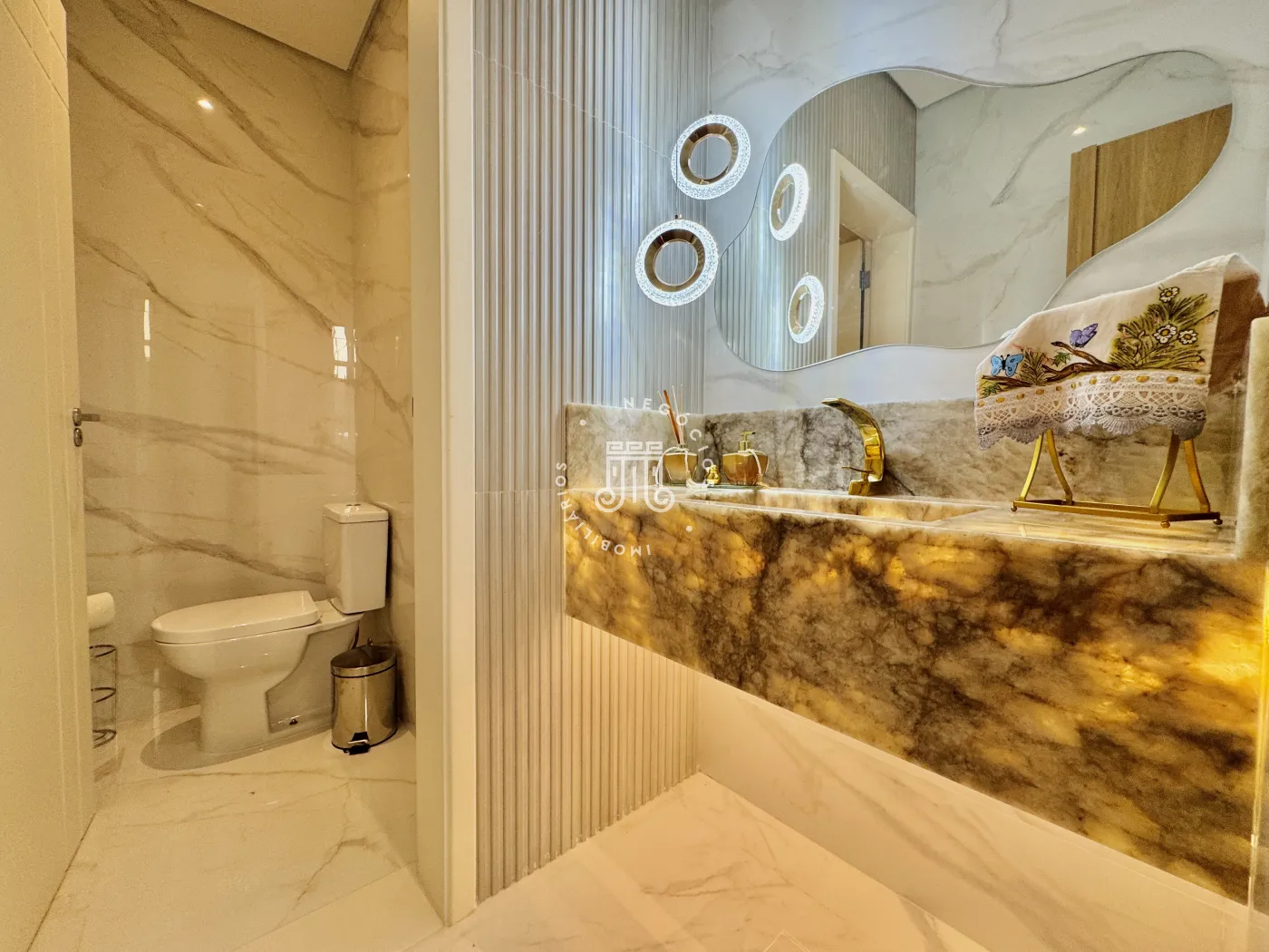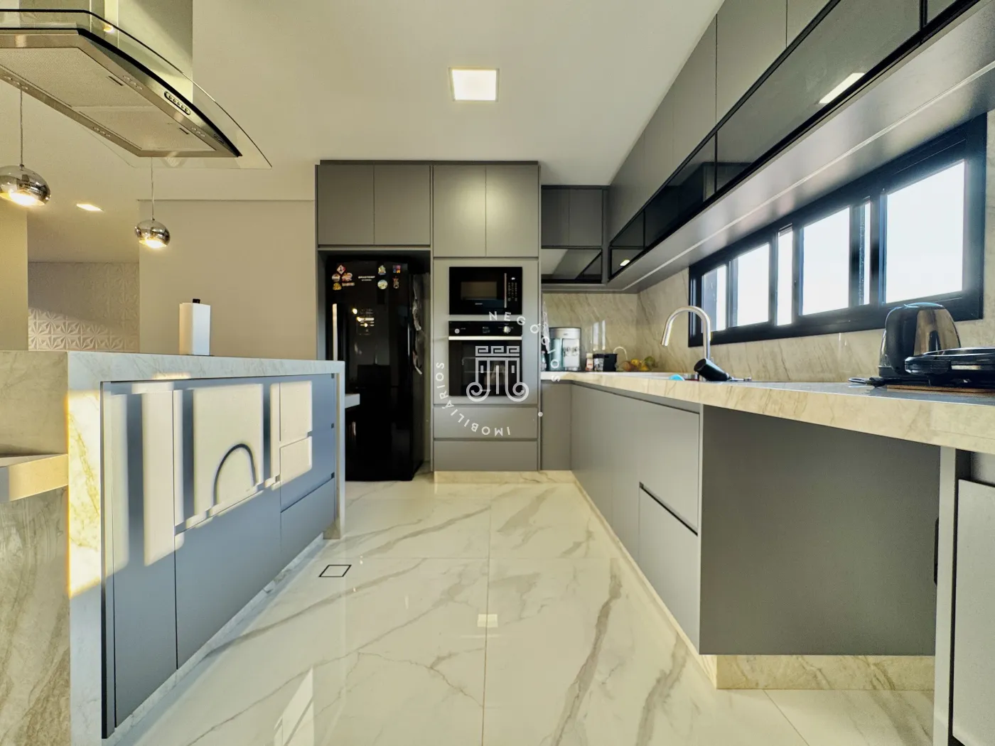 O imóvel possui terreno de 484m², sendo 374m² de área construída distribuídas em: 4 suítes, sendo 3 com closet e 2 com sacada, cozinha com ilha e fogão de indução, sala de jantar com armários planejado, despensa, lavanderia, escritório com planejados, área gourmet com churrasqueira, fogão, coifa, chopeira tipo NAJA com 2 bicos, Lavabo, Sala de cinema com sistema de som home teather, sala de jogos com adega, vestiário na piscina, garagem para 4 veículos e rampa para acessibilidade.
