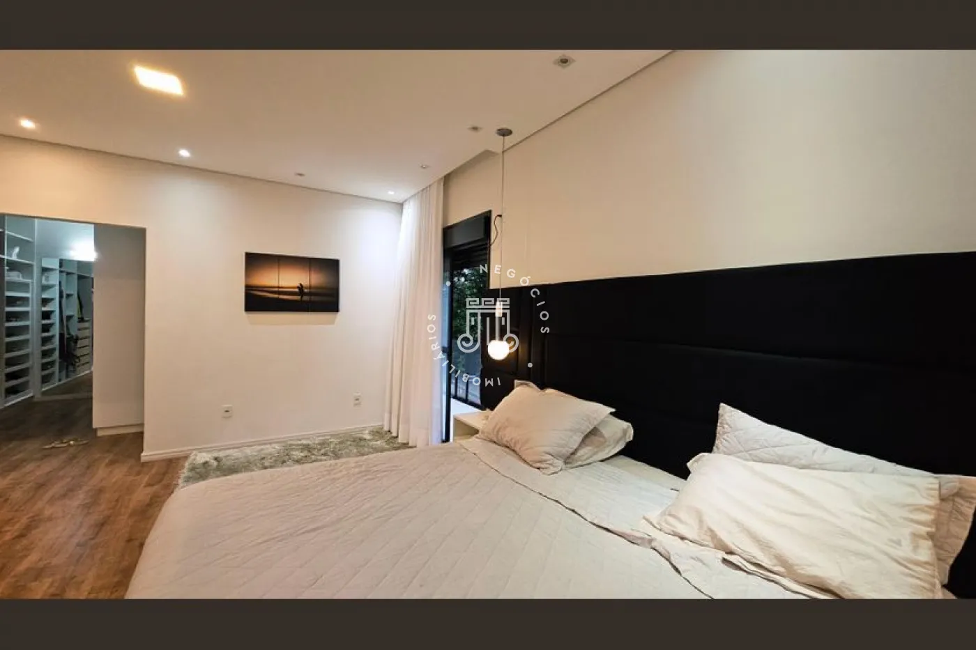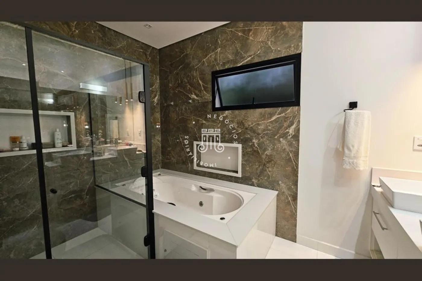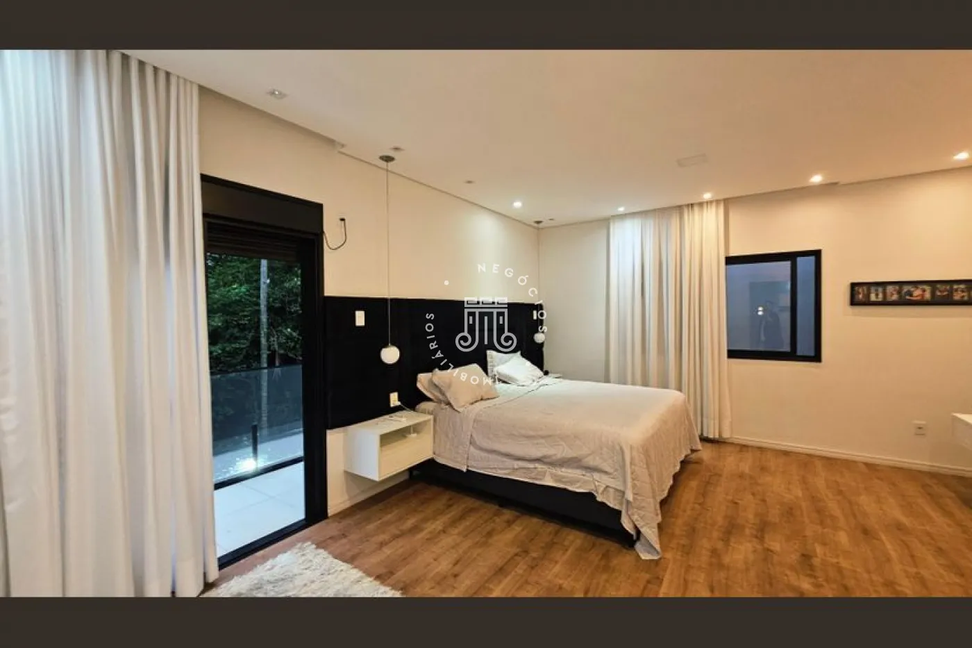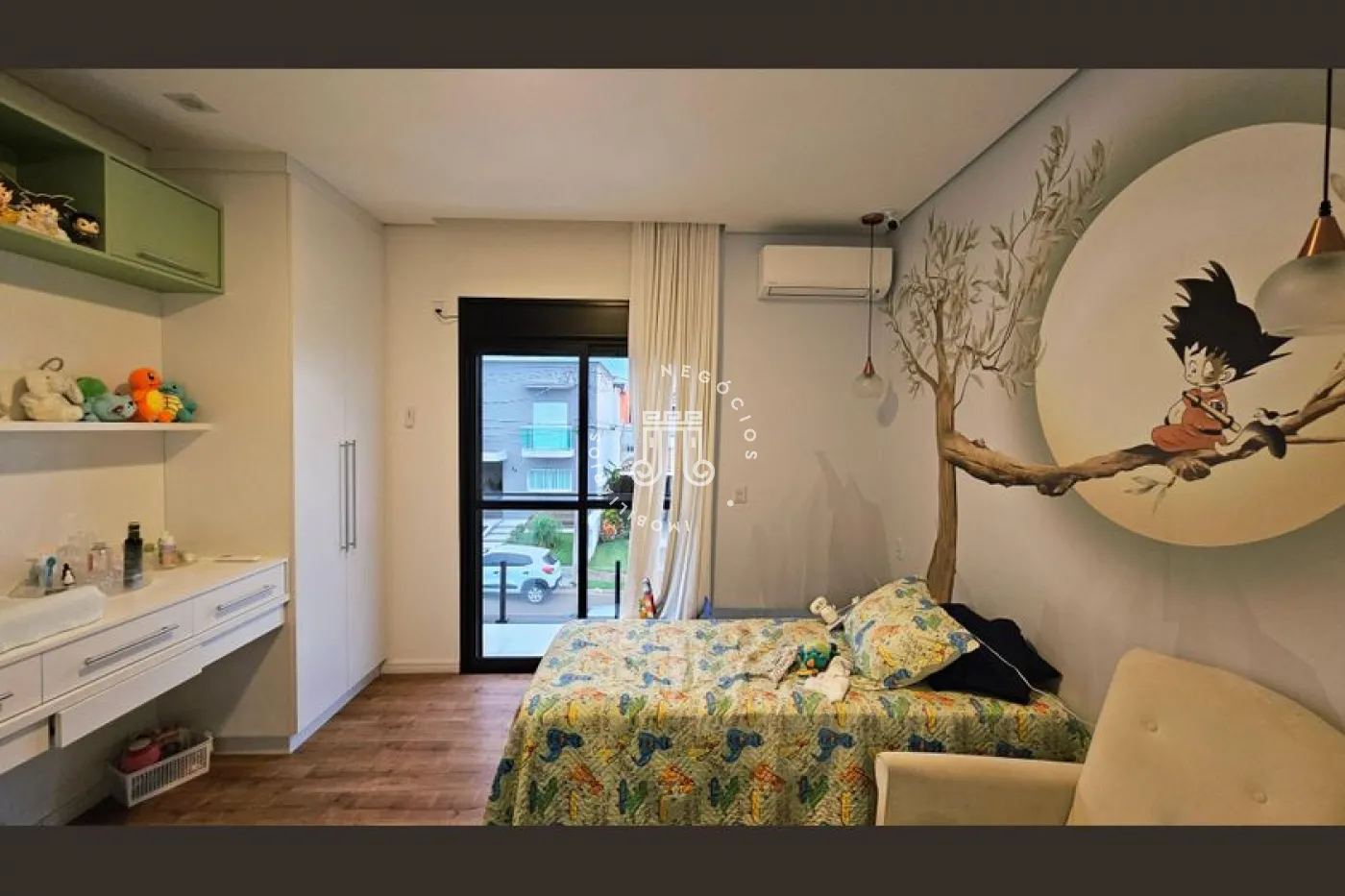 O imóvel conta com 4 dormitórios, sendo 3 suítes com sacadas, escritório e banheiro social. Possui sala para 2 ambientes, lavabo, copa e cozinha planejada, área de serviço e área gourmet completa com quintal e piscina. Dispõe ainda de 4 vagas de garagem, sendo 2 cobertas. A casa conta com aquecimento a gás e ar-condicionado.