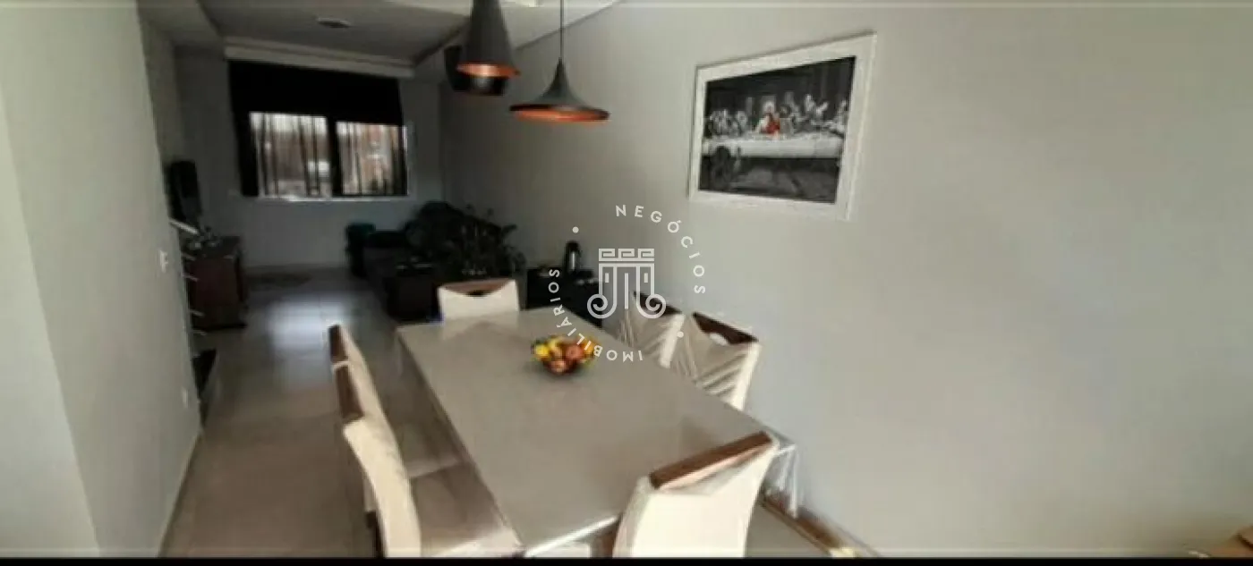 Composto por 3 dormitórios, sendo 1 suite com closet, banheiro social, lavabo, sala, sala de jantar, cozinha, despensa, lavanderia, área gourmet com churrasqueira, amplo quintal com ducha, corredor com acesso à garagem, garagem com vaga para 3 carros, sendo 1 coberta e 2 descobertas.