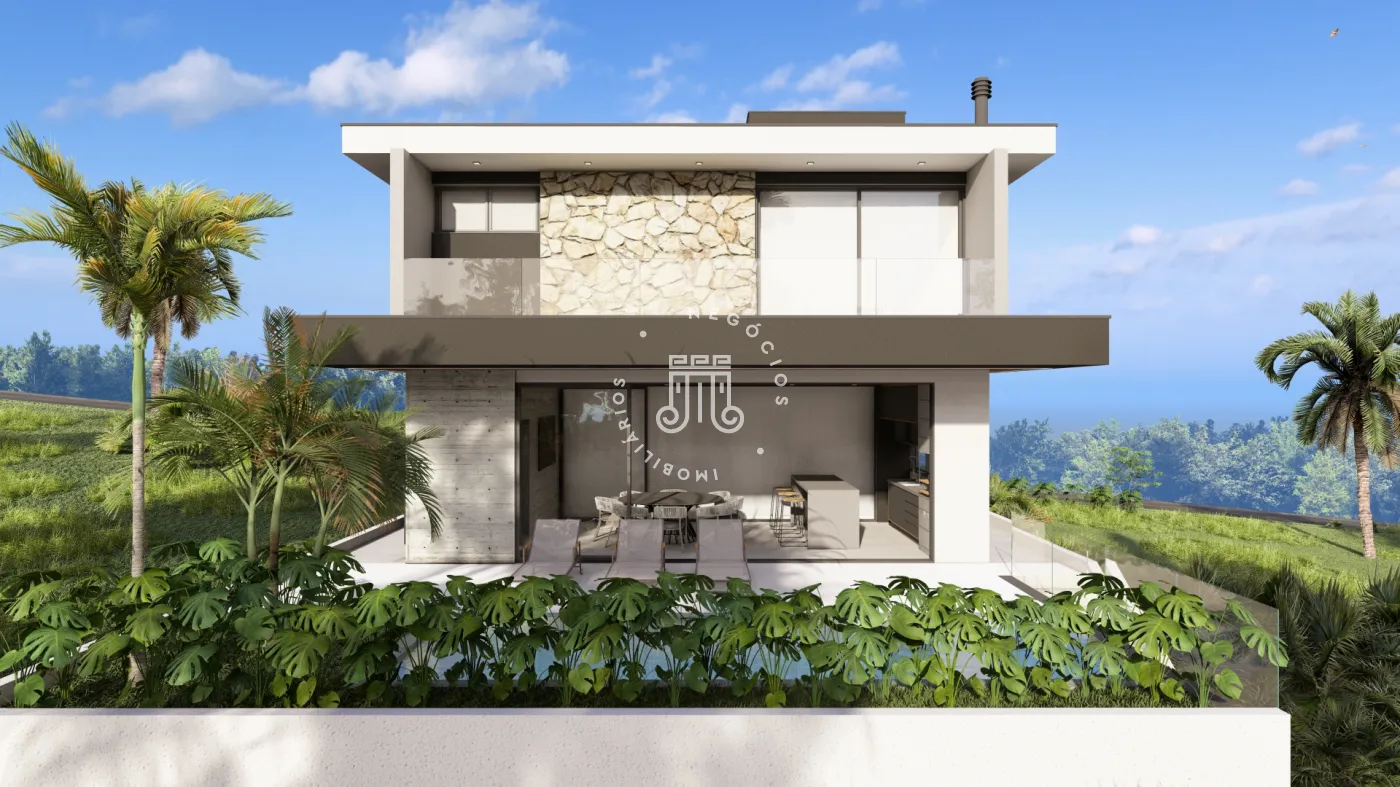 Andar térreo com sala jantar, sala estar, lavabo, home Office no andar térreo reversível para 4ª suíte, área serviço, Despensa, cozinha, área gourmet com churrasqueira, garagem para 4 carros.