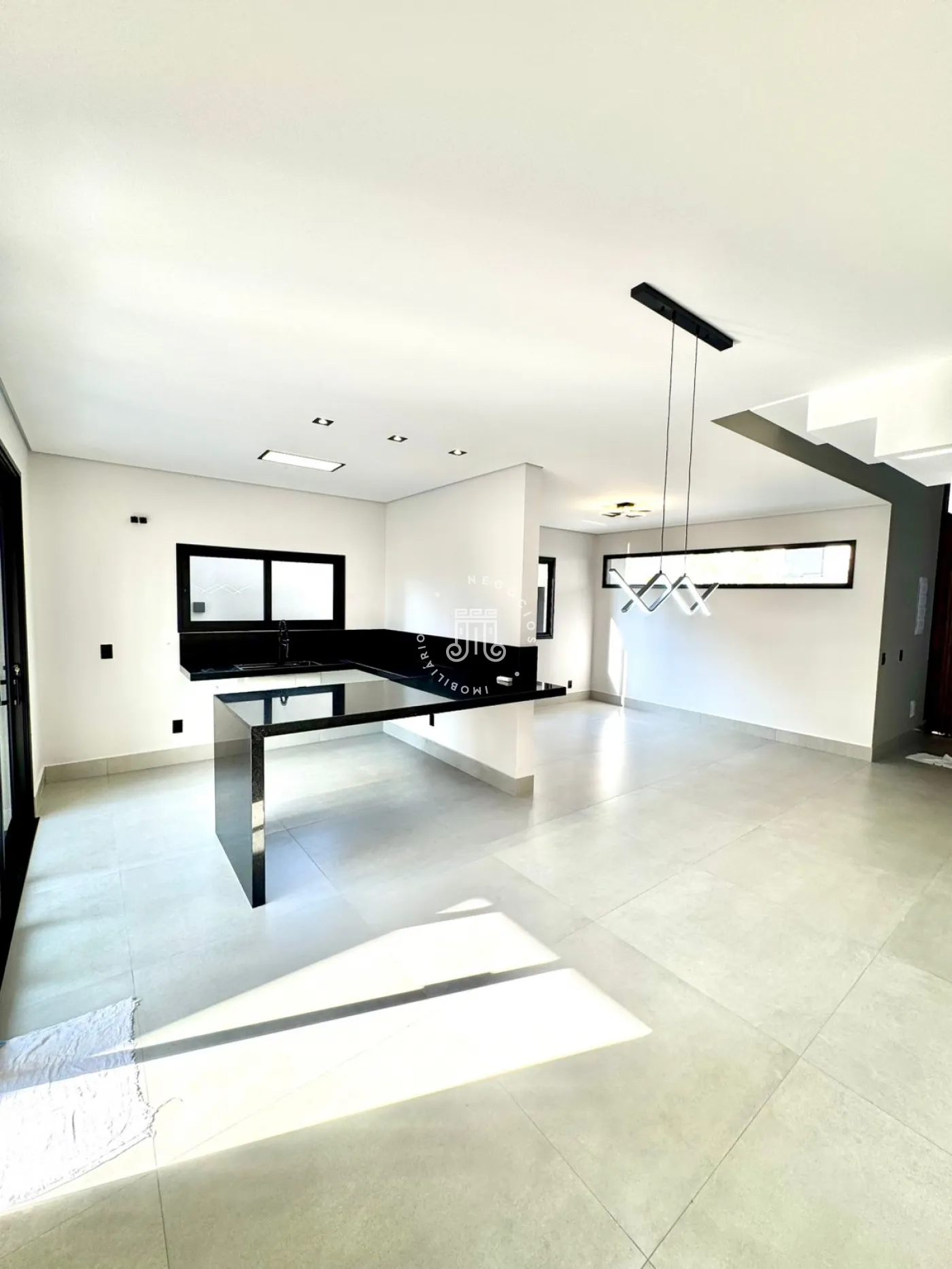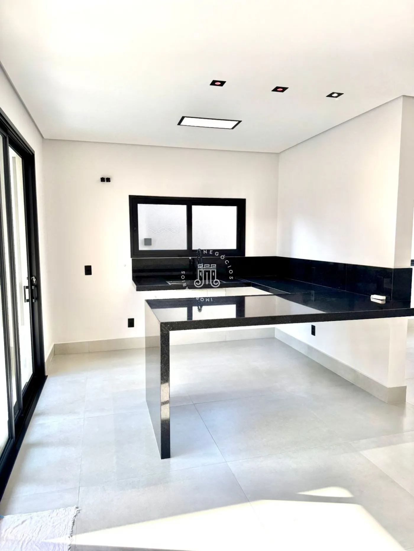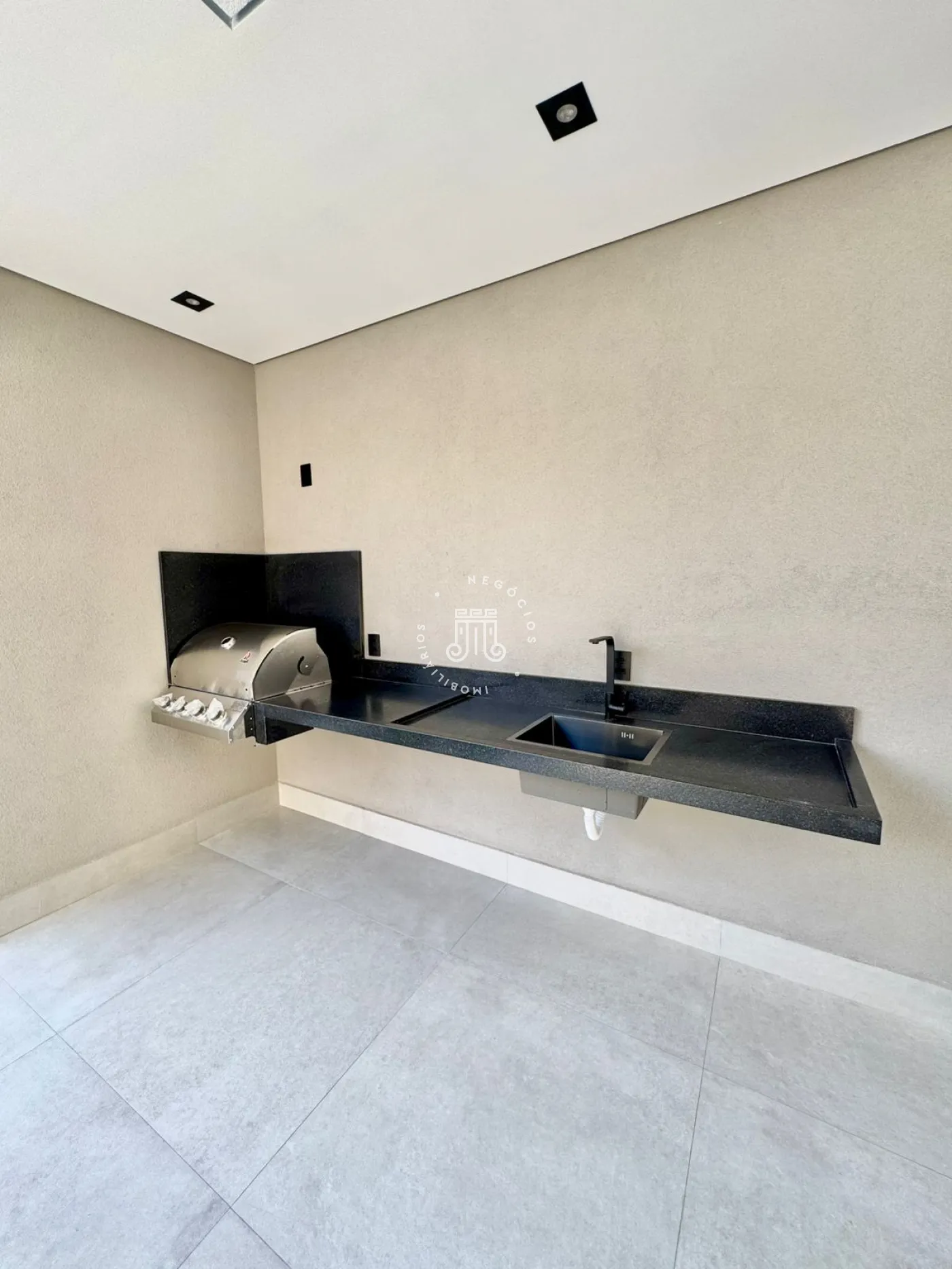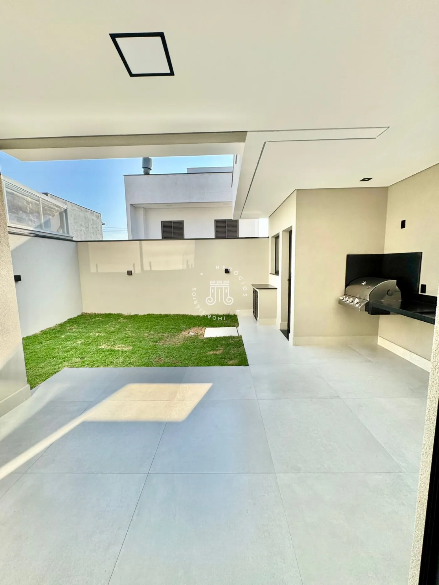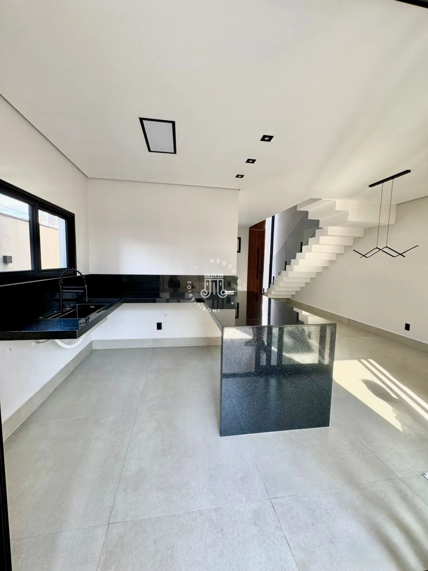 Casa com 3 suítes, sendo uma com closet. O imóvel possui sala de estar e jantar integradas, cozinha, lavabo e escritório. A área externa dispõe de churrasqueira a gás, espaço destinado para piscina ou jacuzzi, corredor lateral e lavanderia.