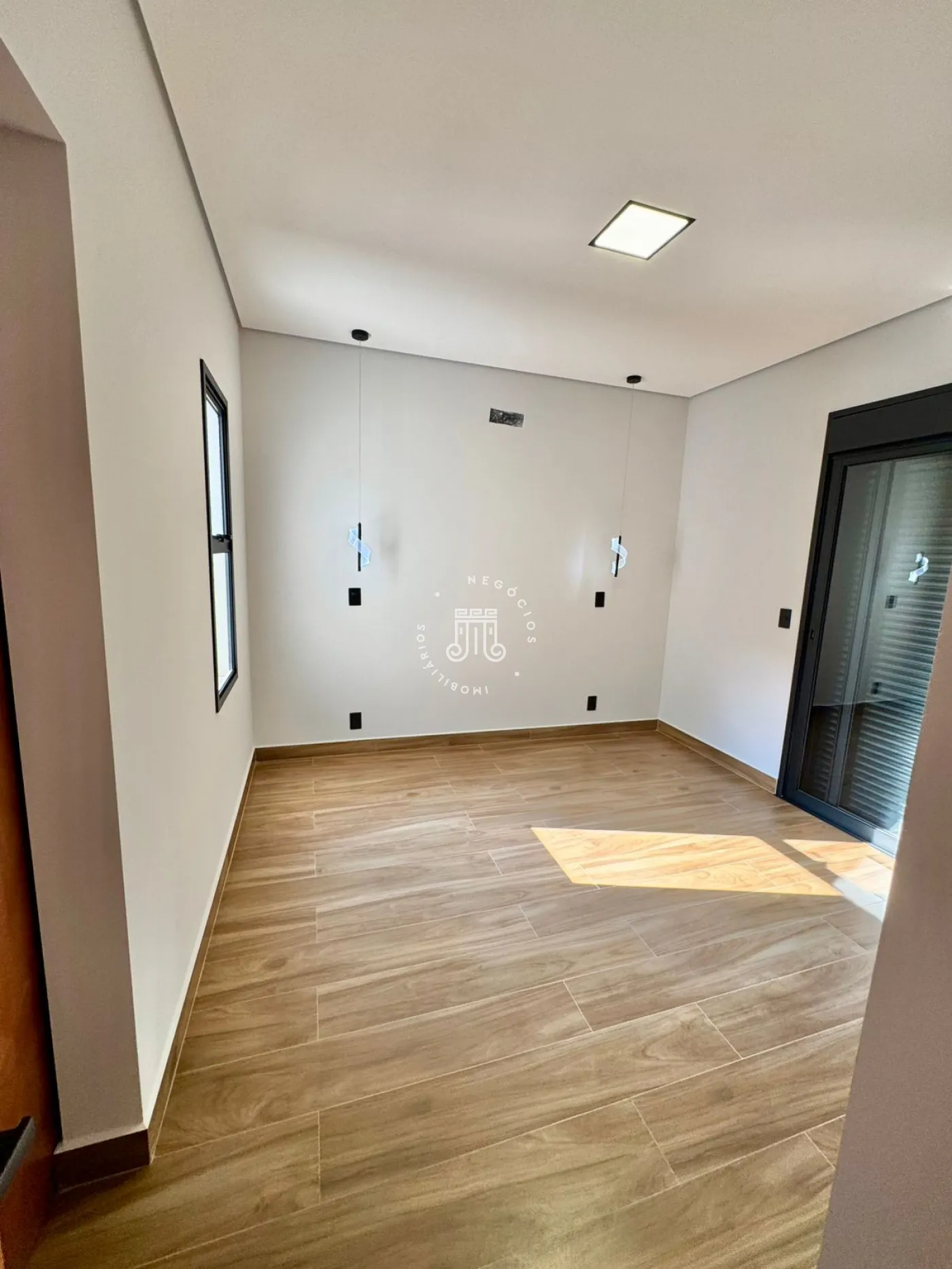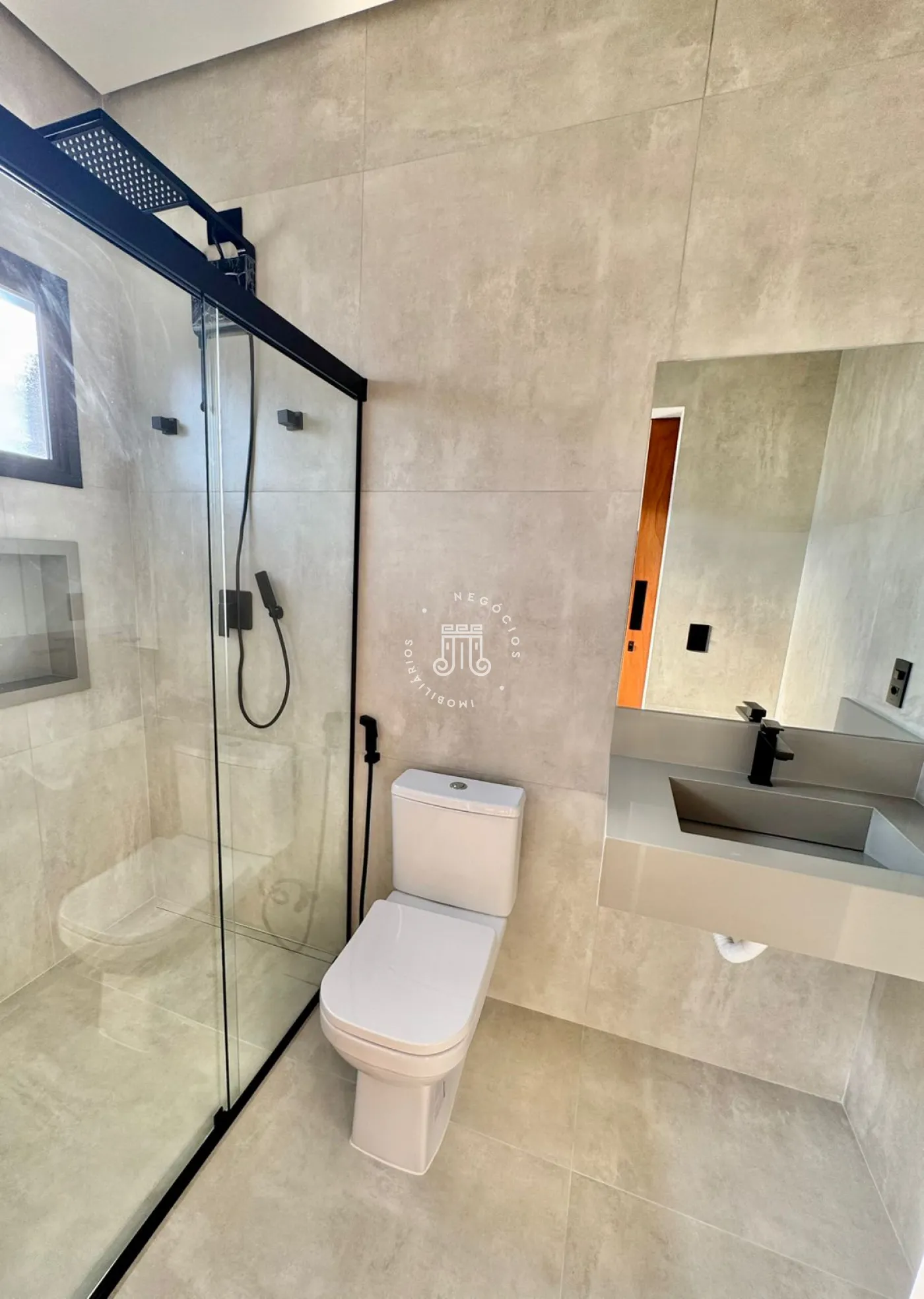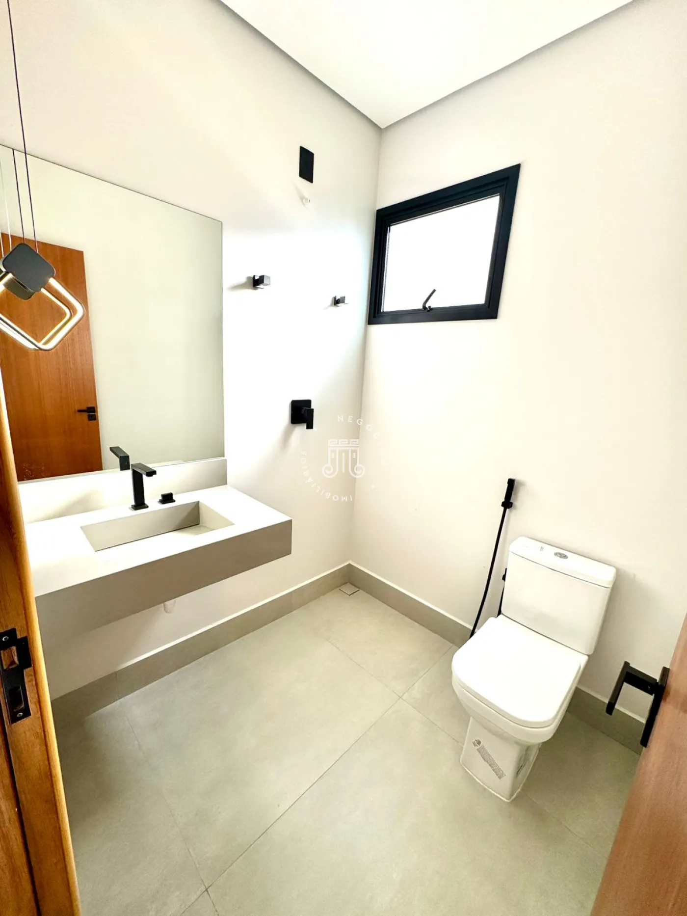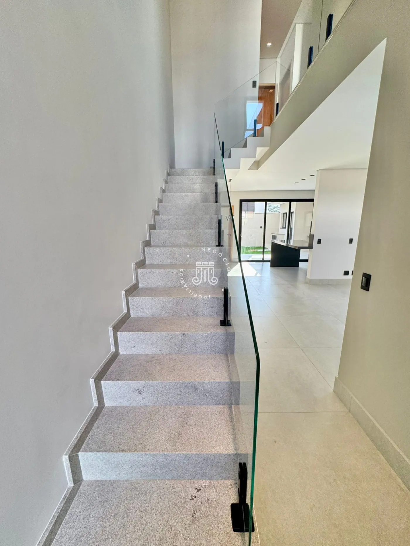 Casa com 3 suítes, sendo uma com closet. O imóvel possui sala de estar e jantar integradas, cozinha, lavabo e escritório. A área externa dispõe de churrasqueira a gás, espaço destinado para piscina ou jacuzzi, corredor lateral e lavanderia.