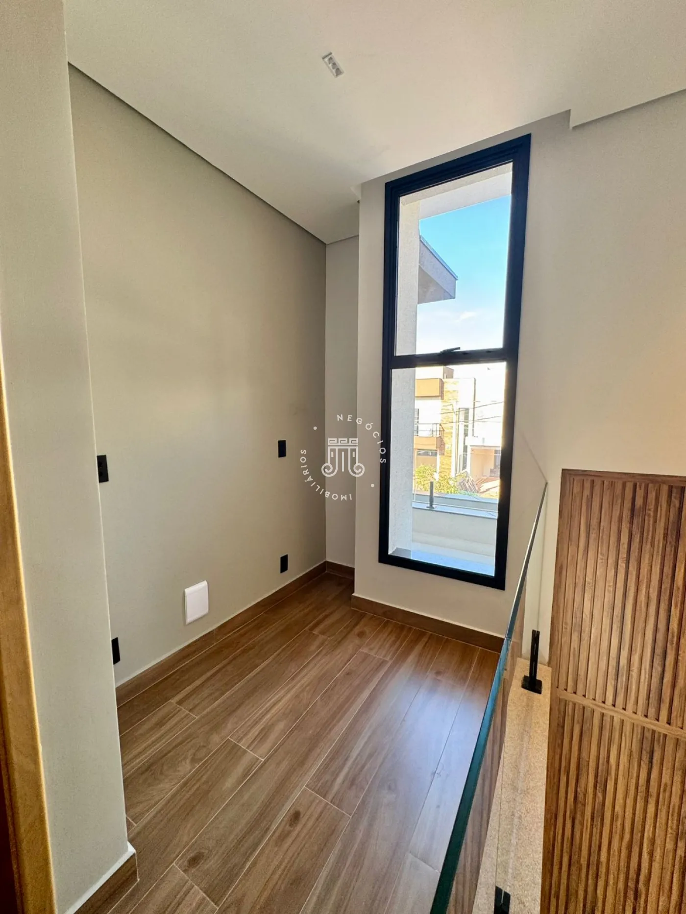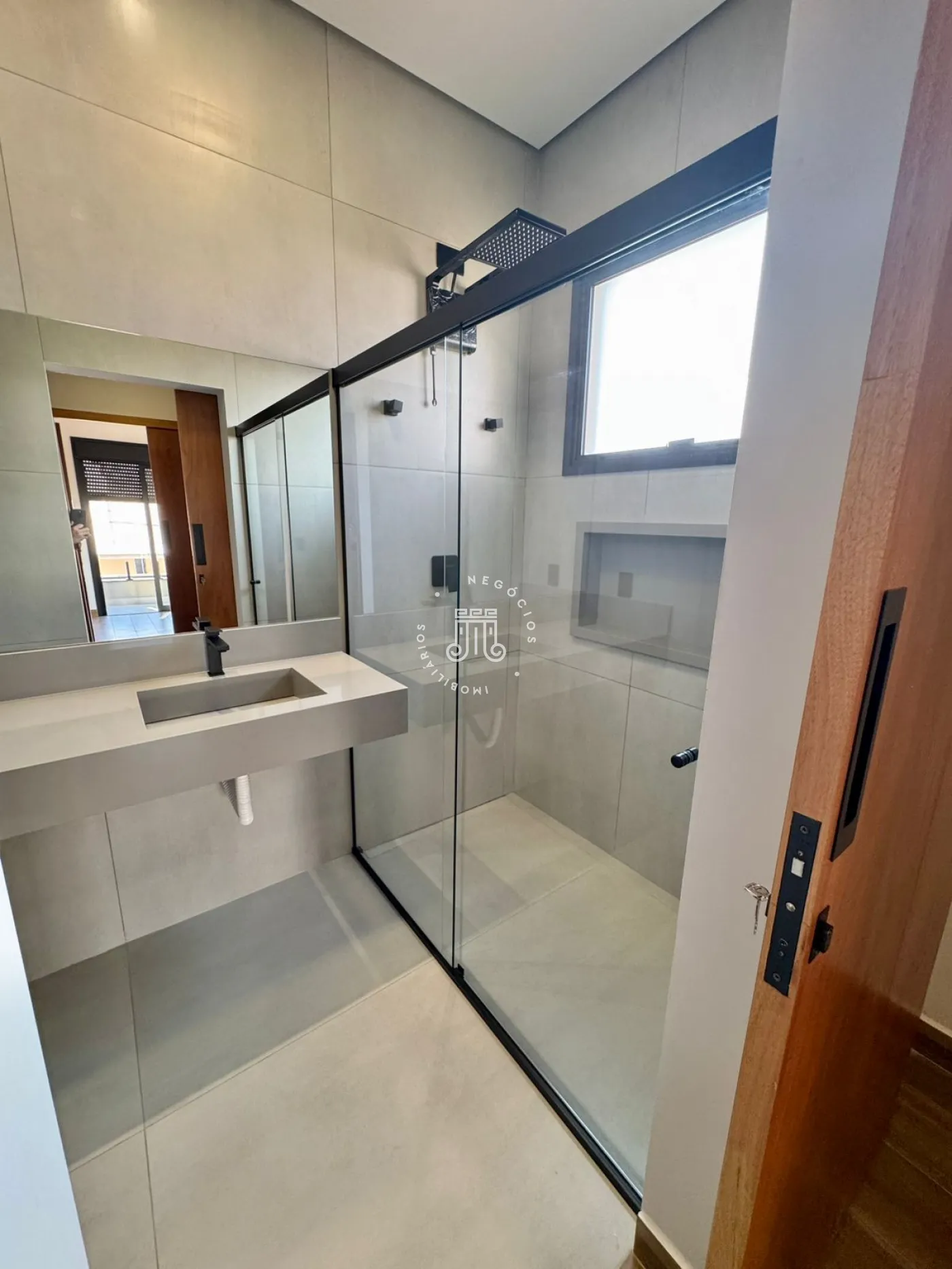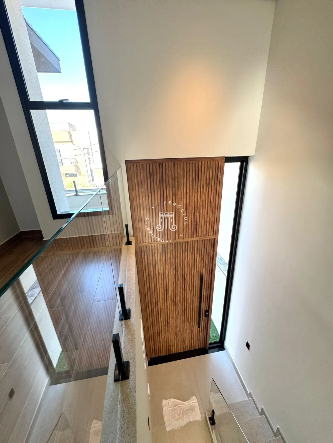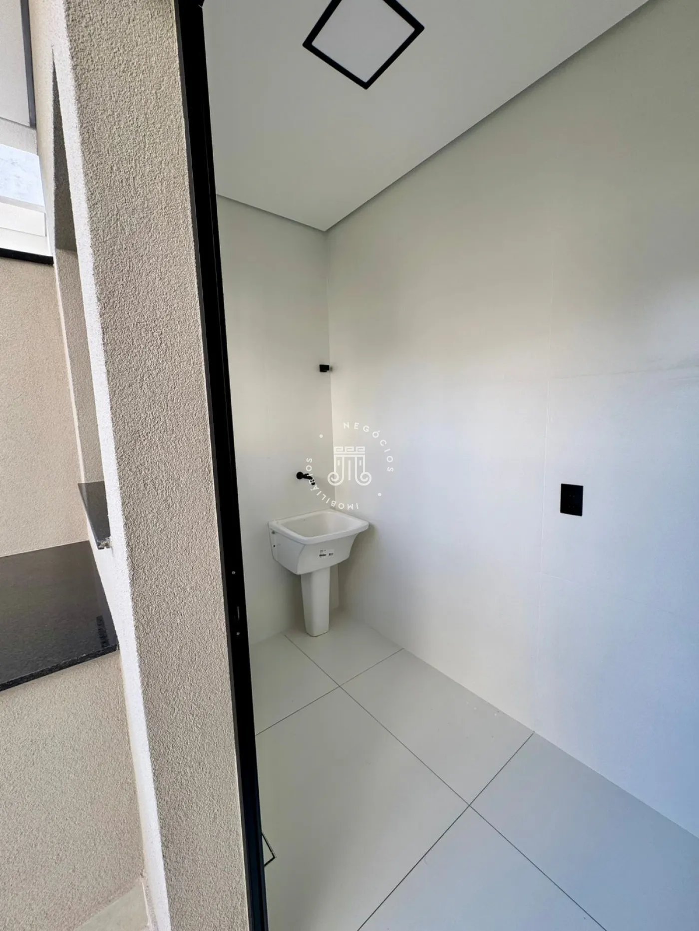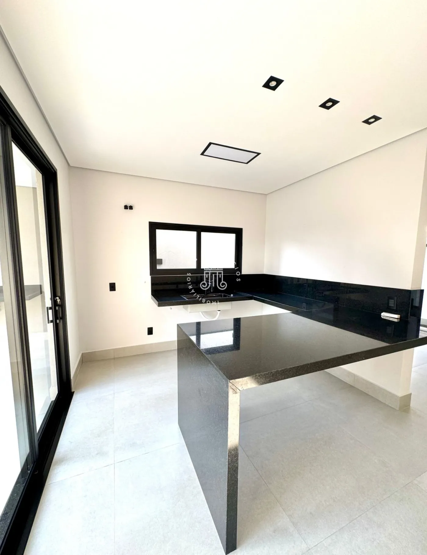 Casa com 3 suítes, sendo uma com closet. O imóvel possui sala de estar e jantar integradas, cozinha, lavabo e escritório. A área externa dispõe de churrasqueira a gás, espaço destinado para piscina ou jacuzzi, corredor lateral e lavanderia.