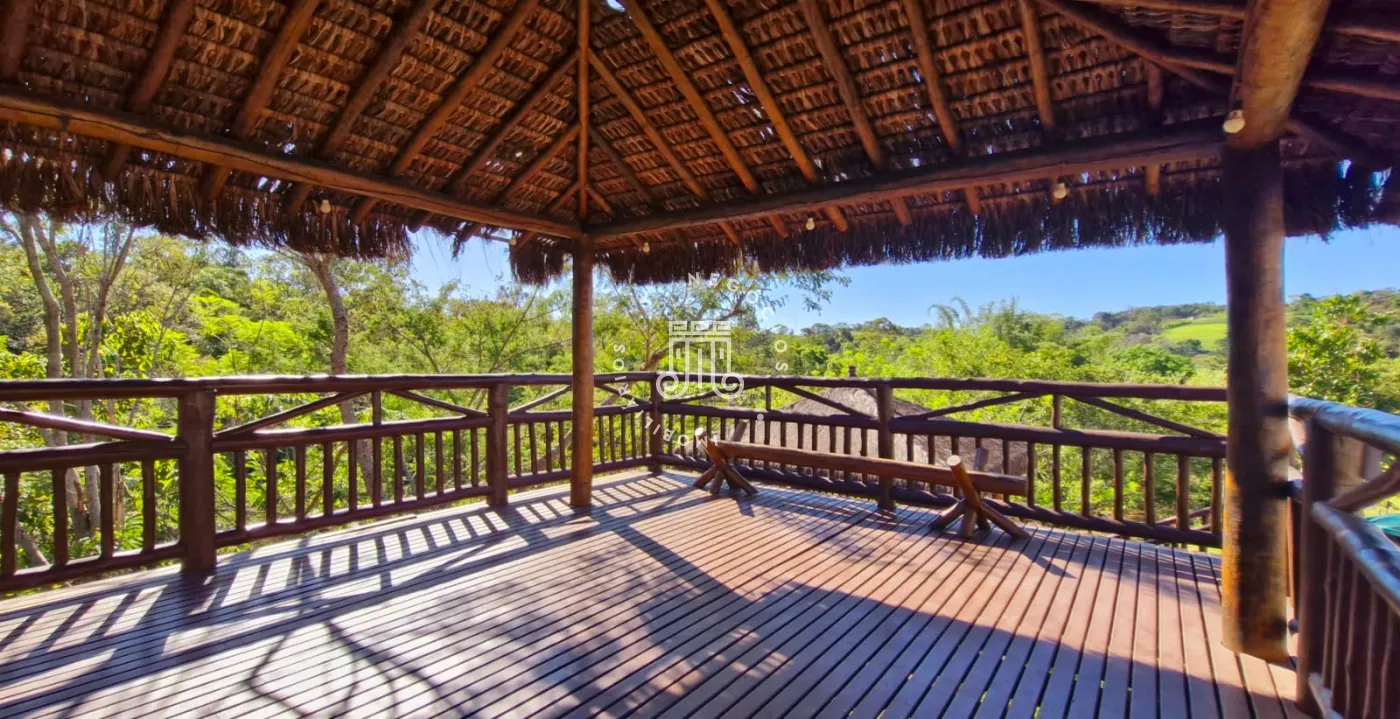 O condomínio oferece salão de festas e jogos, três lagos para pesca esportiva, trilha, mirante, quadra, espaço pet, playground e mercado interno.