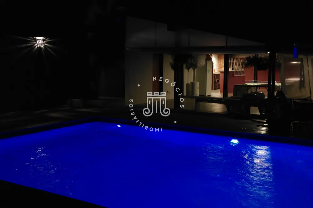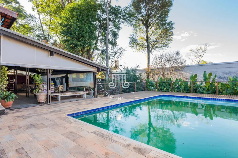 Além disso, a casa está equipada com sistema de aquecimento a gás, piscina aquecida e iluminada, churrasqueira, forno de pizza, paisagismo e salão de festas de 100 m². E, possui árvores da mata Atlântica, piscina com total privacidade.