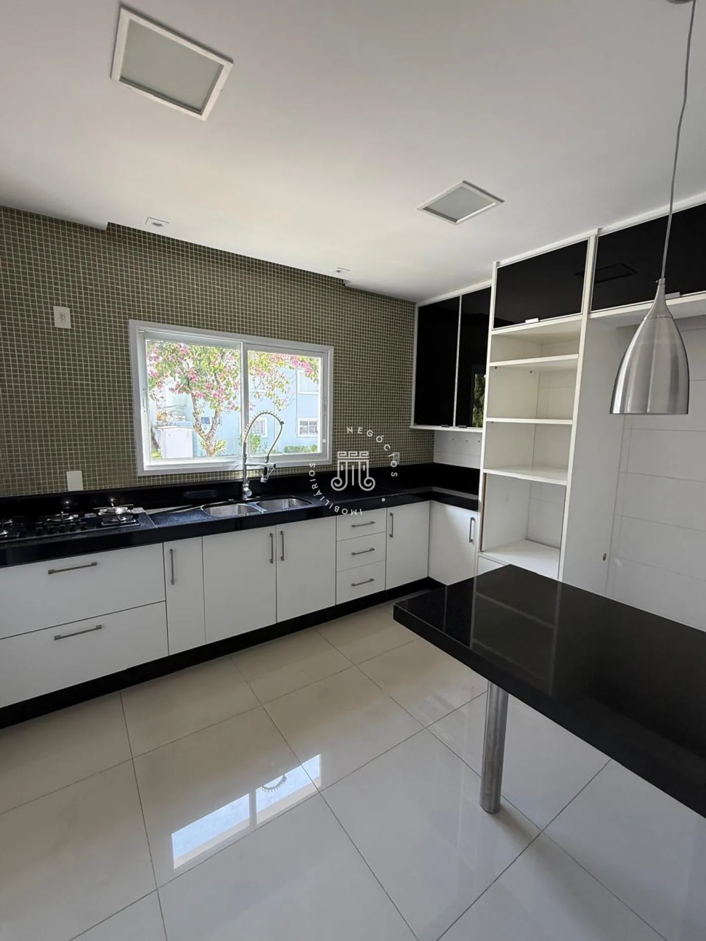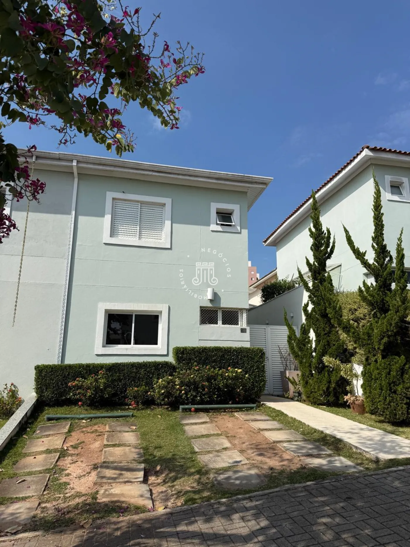 A casa é equipada com armários em todos os ambientes e ar condicionado nos dormitórios e na sala de TV, aquecedor a gás nos banheiros, 2 vagas de garagem descobertas e quintal.
