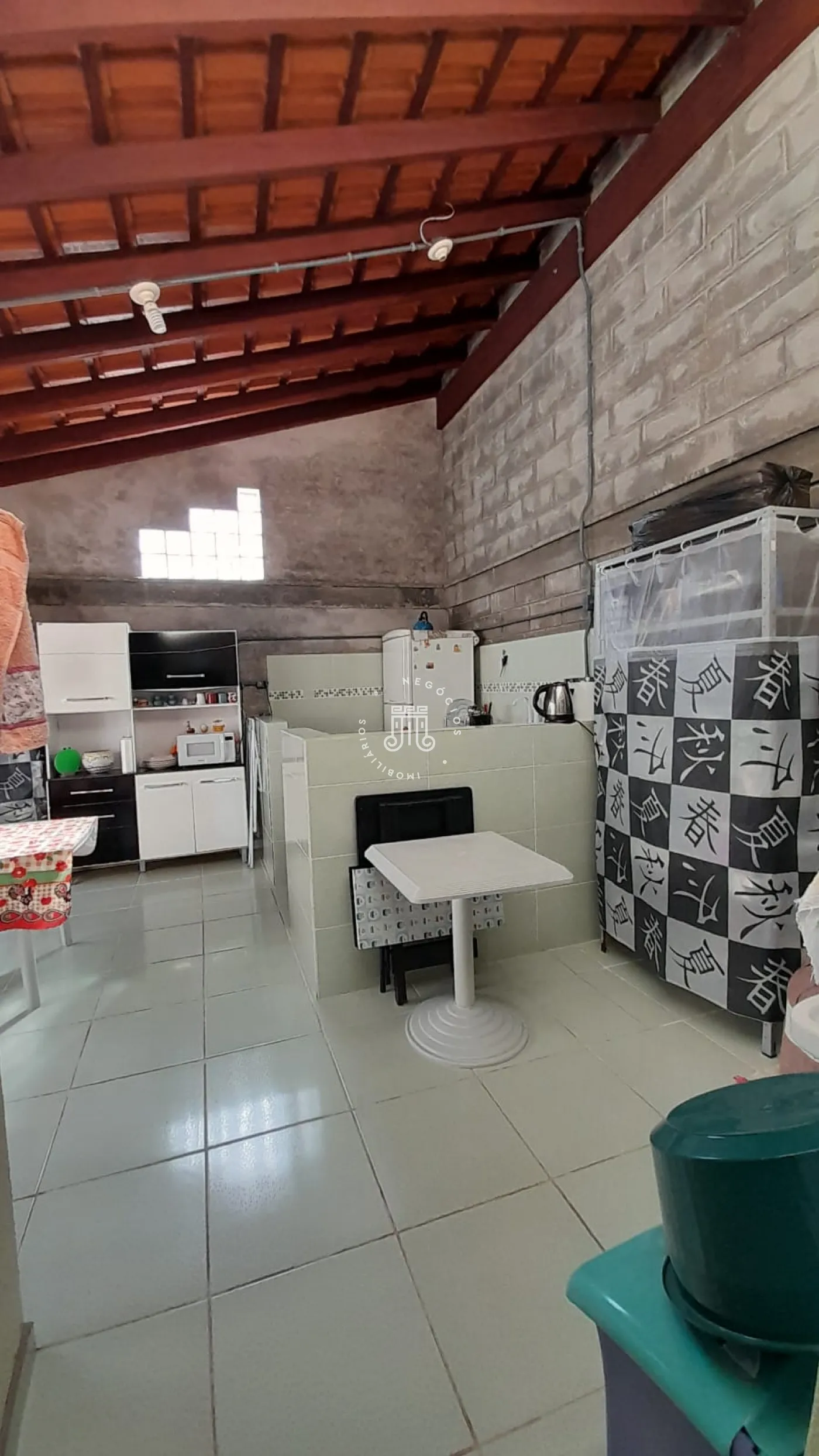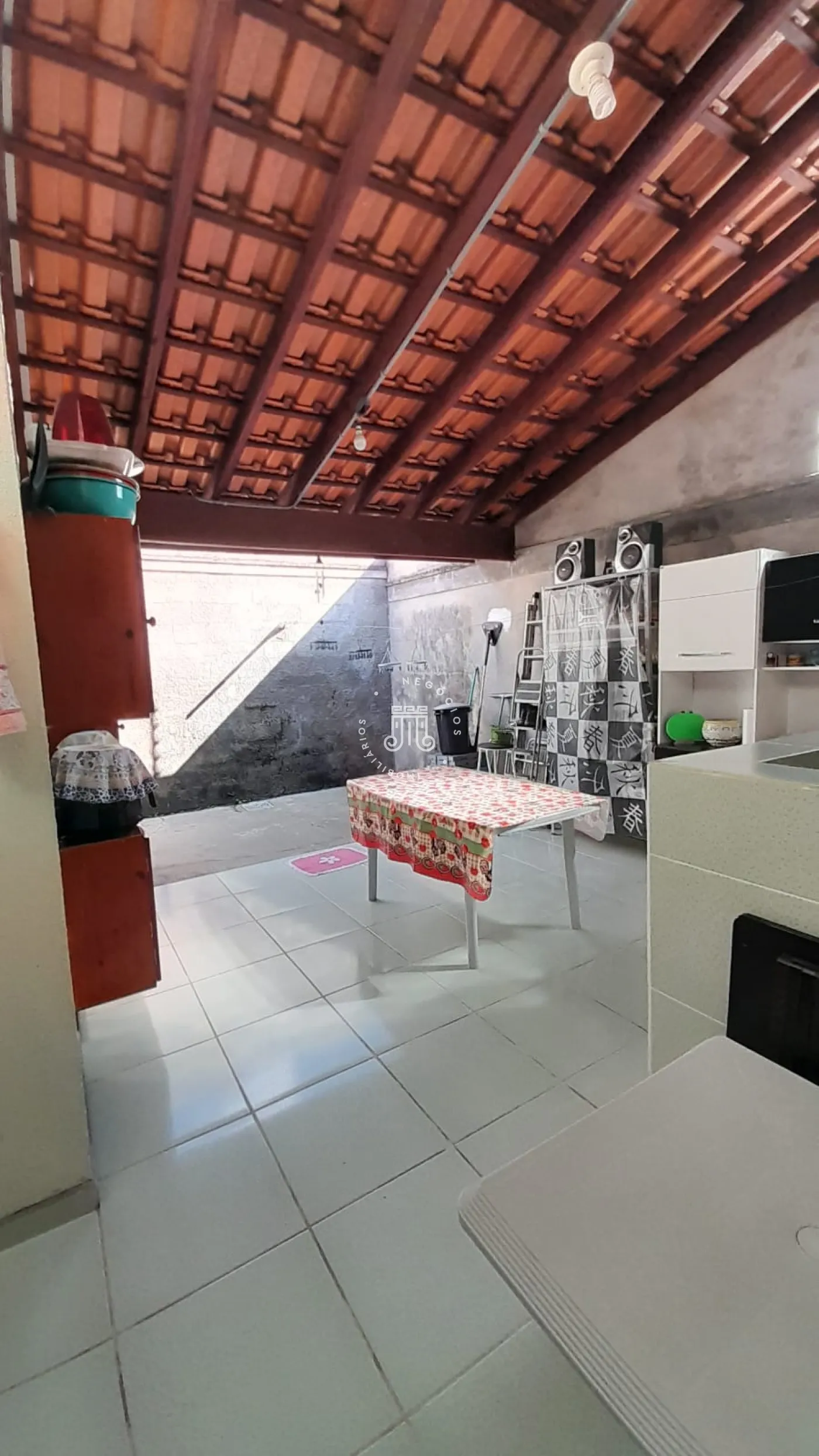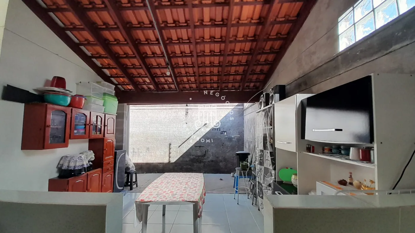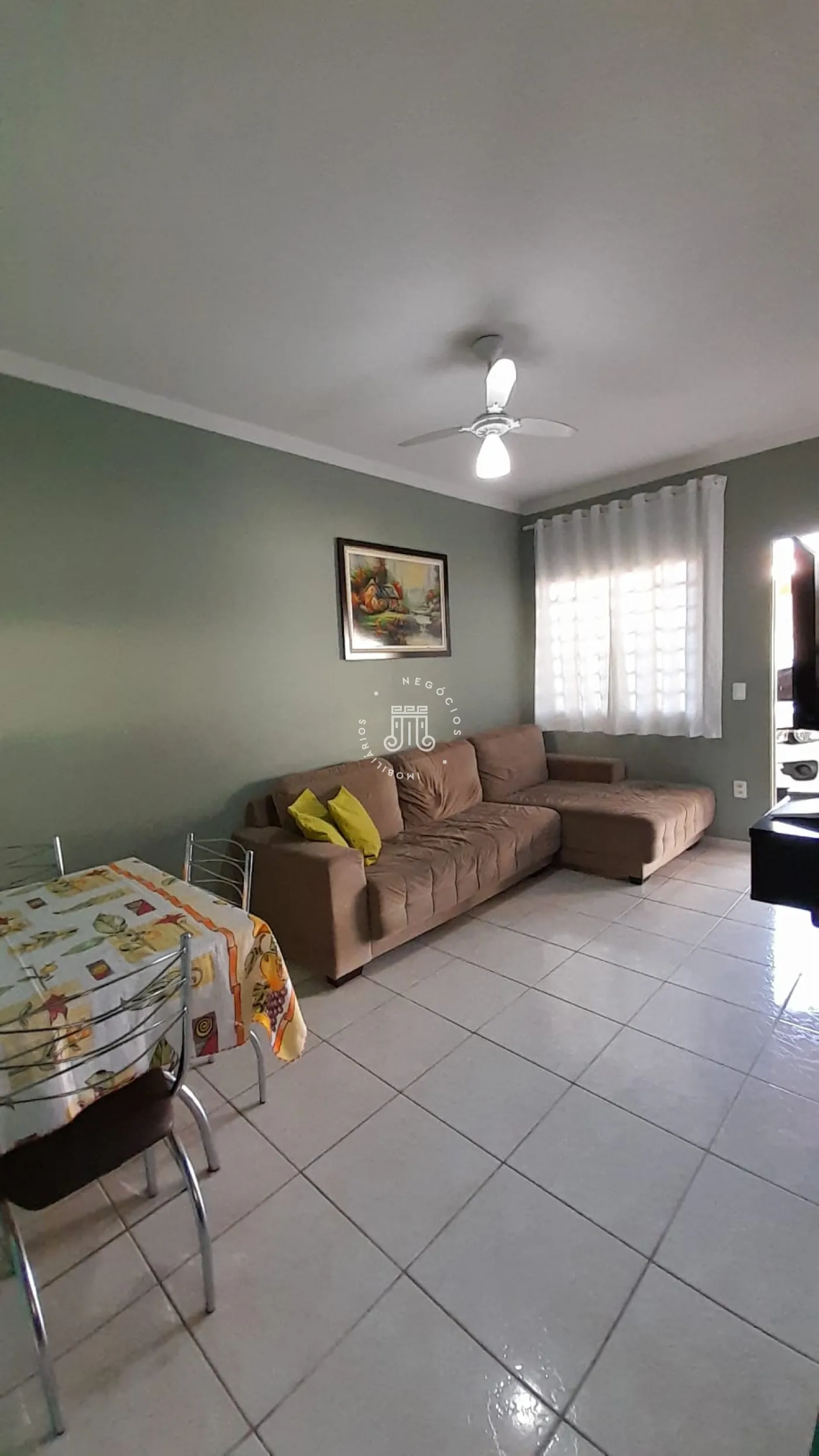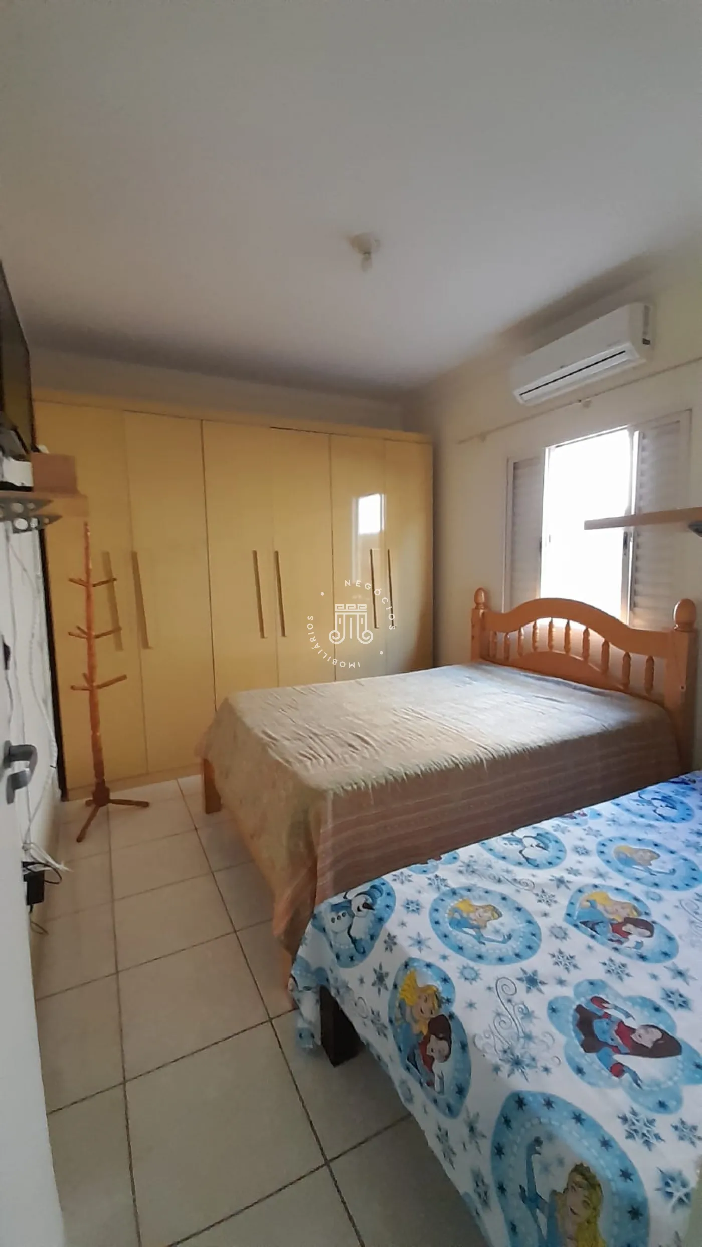 Com 2 dormitórios, sendo 1 com ar condicionado, sala ampla de estar e de jantar, cozinha integrada à área gourmet, banheiro social, quintal, 2 vagas de garagem cobertas, pequeno jardim lateral.