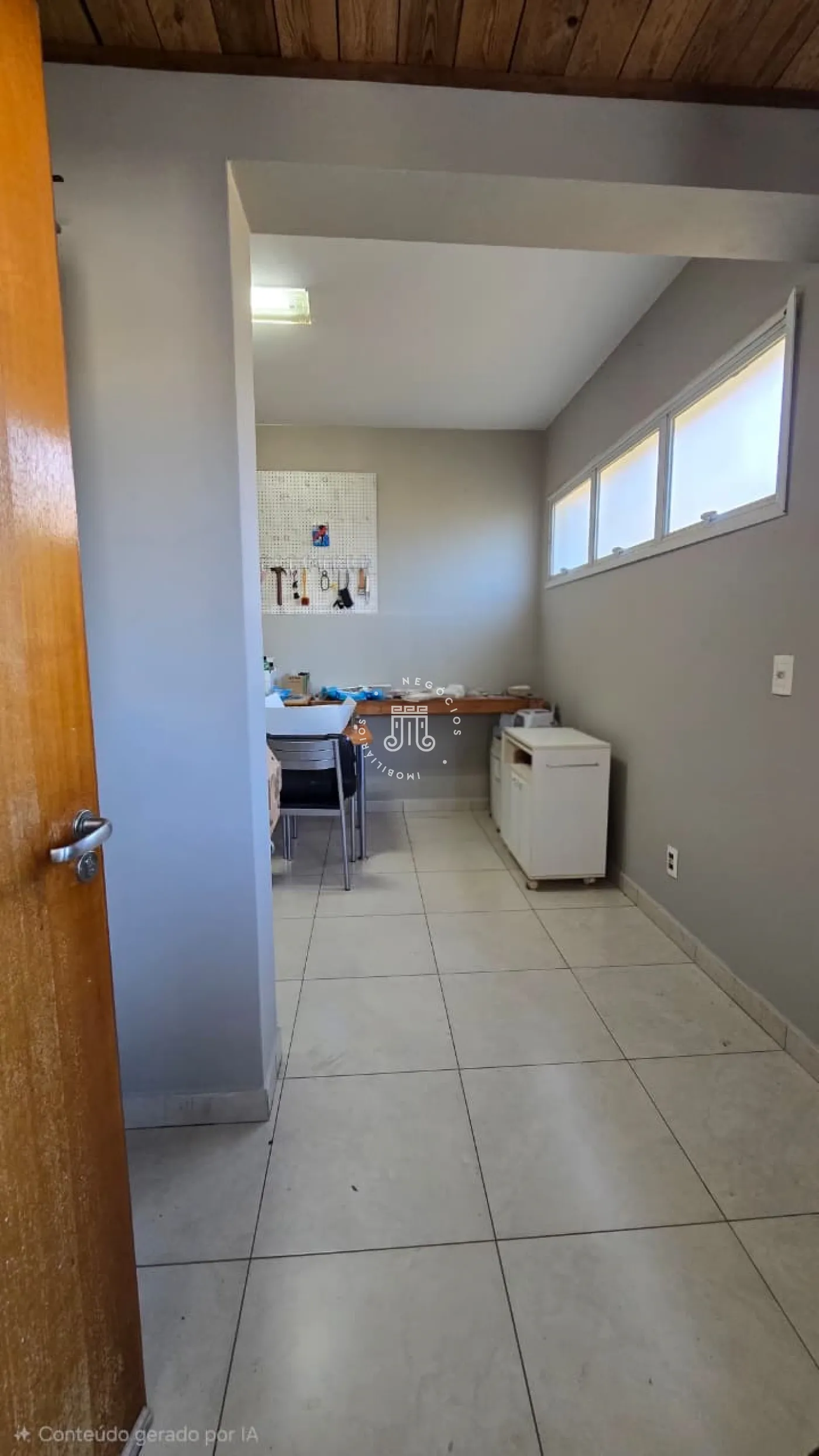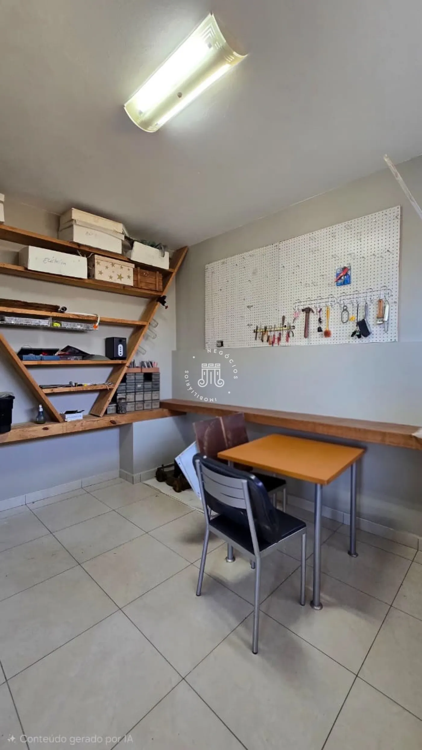 Na parte debaixo: Pequena oficina para hobbistas, 1 suíte que pode ser usado como Escritório ou quarto de hóspedes e 4 vagas de garagem (2 cobertas e 2 descobertas).