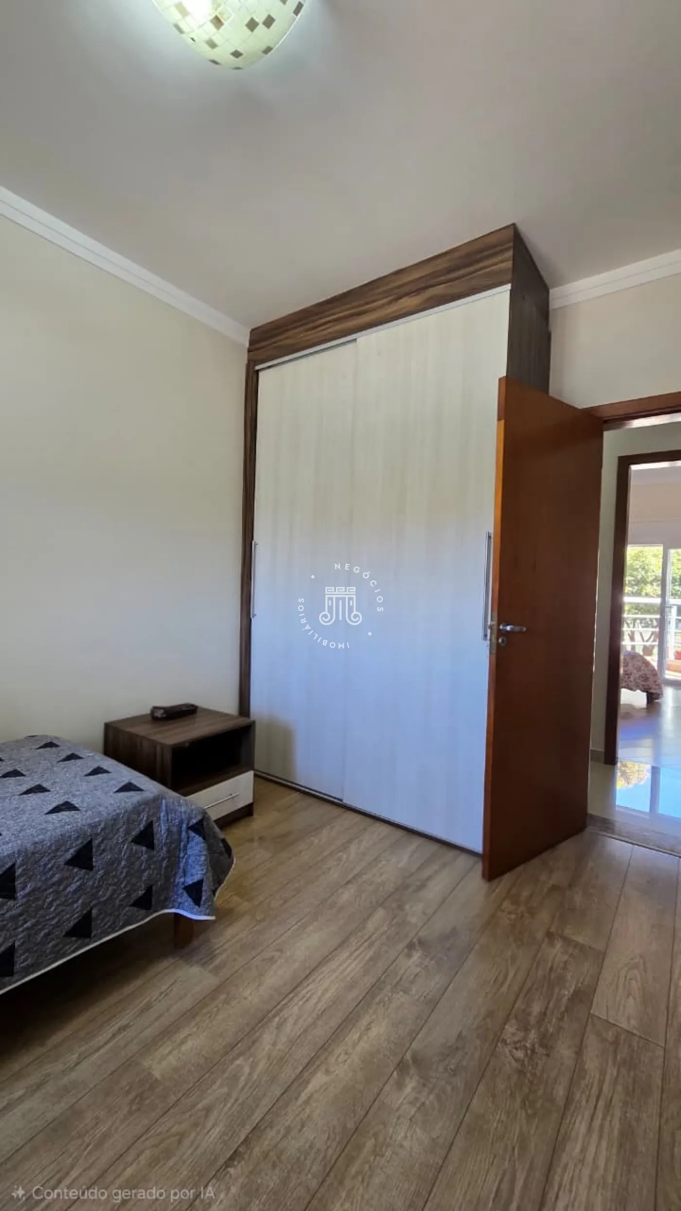 4 Dormitórios na área intima: Sendo 1 suítes com sacada e vista para a Serra do Japi e 2 quartos com Demi suíte. Todos com armários.