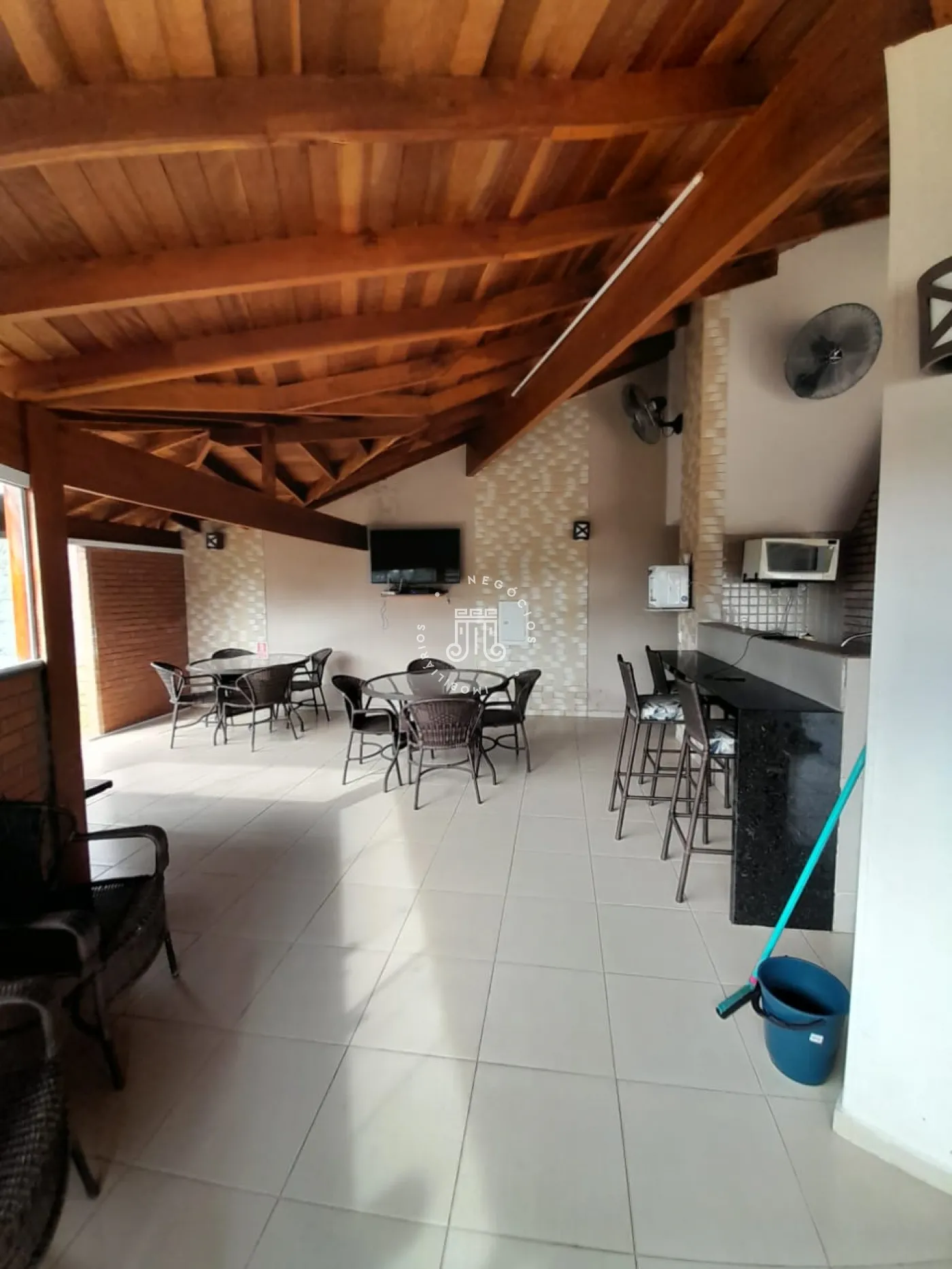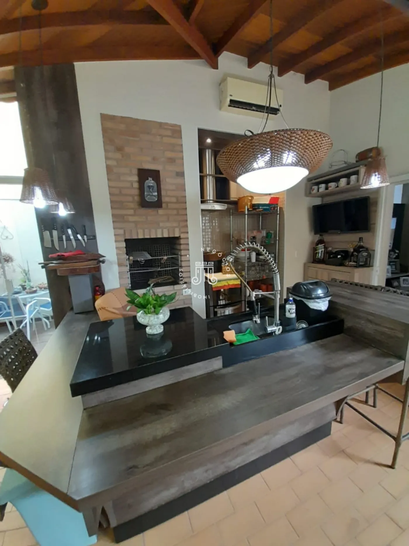 Com 120m² de área útil, distribuído em 3 dormitórios, sendo 1 suíte com closet e 2 planejados com sacada, sala de estar e jantar, sala de TV, cozinha planejada, banheiro, lavabo, aconchegante e espaçosa área gourmet com churrasqueira, balcão de pedra e bar, 3 vagas de garagem cobertas.