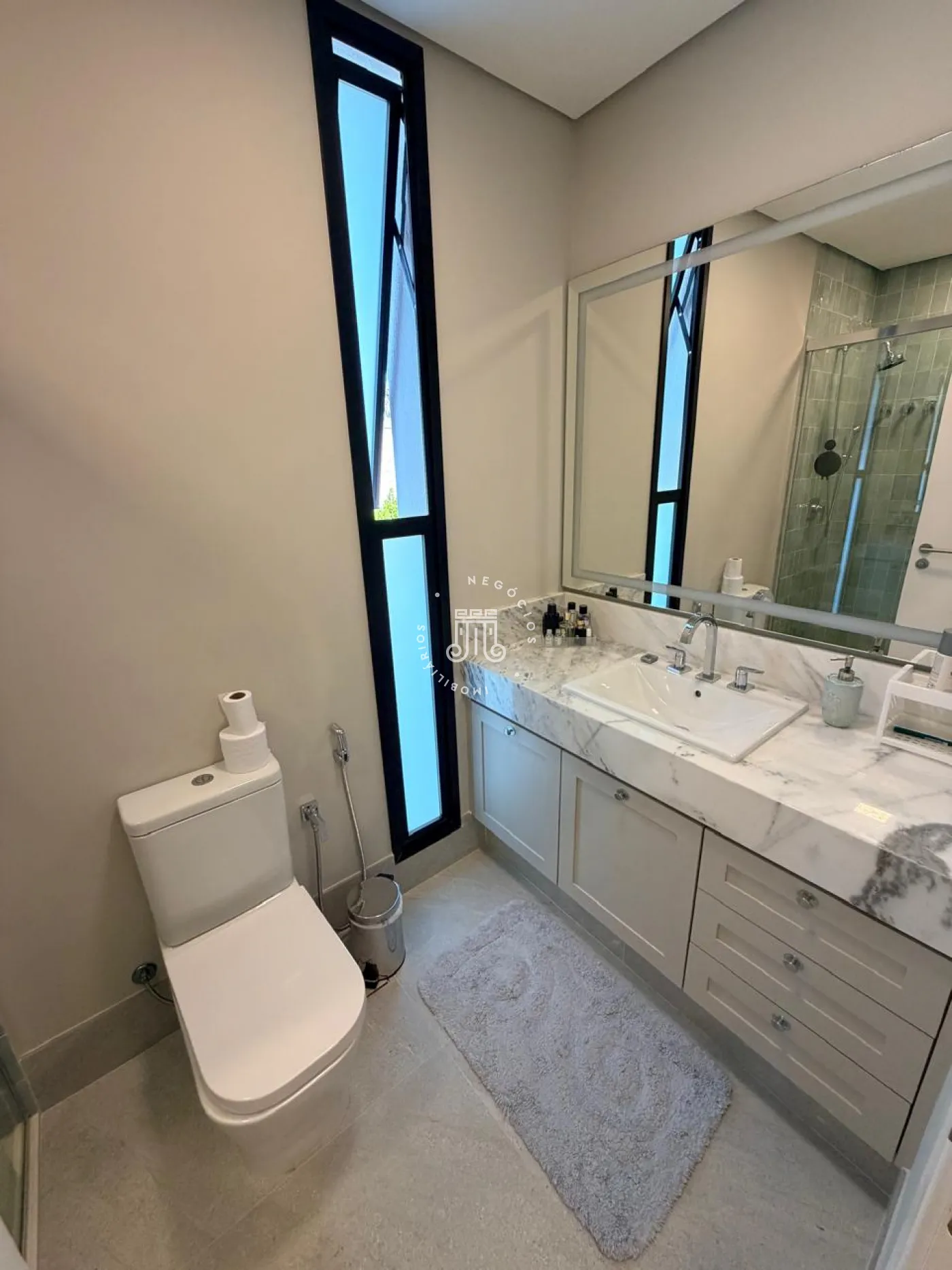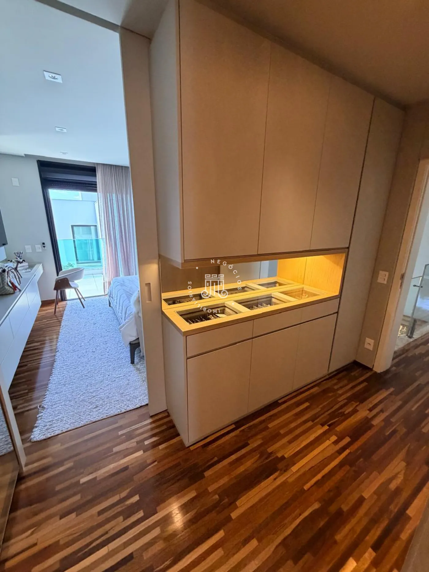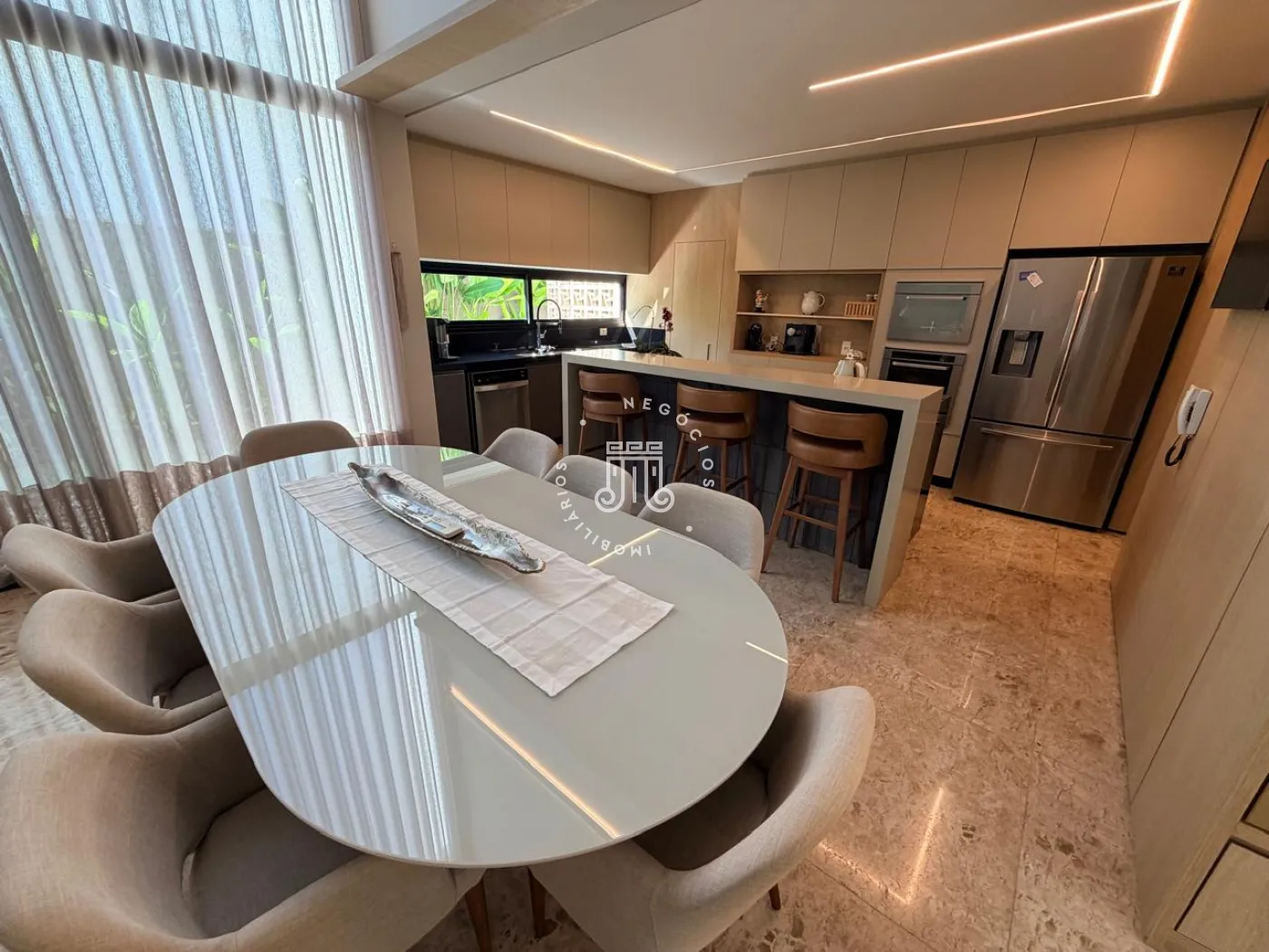 Logo na entrada, o lavabo acolhe com elegância e discrição. O living integra sala de estar e jantar à cozinha de forma fluida, criando um ambiente social amplo, funcional e convidativo ? ideal tanto para receber convidados quanto para o dia a dia com conforto e leveza. A lavanderia, reservada, garante praticidade sem interferir na área social. Ainda no térreo, um espaço versátil amplia as possibilidades de uso, podendo ser adaptado como escritório, brinquedoteca, ateliê ou até mesmo um dormitório de apoio.