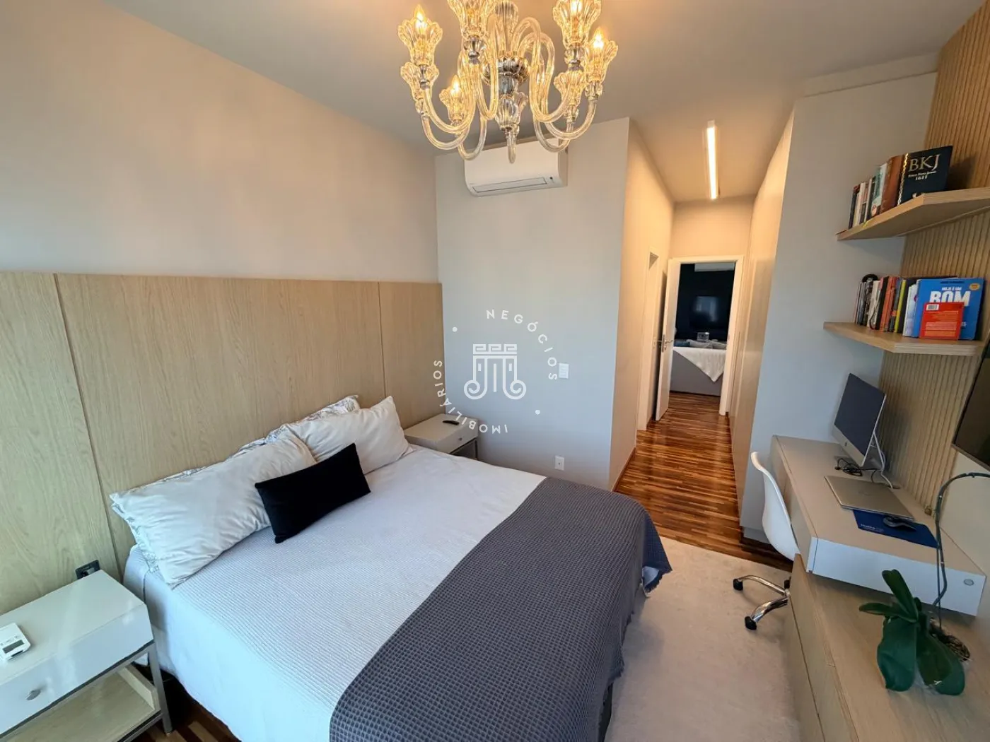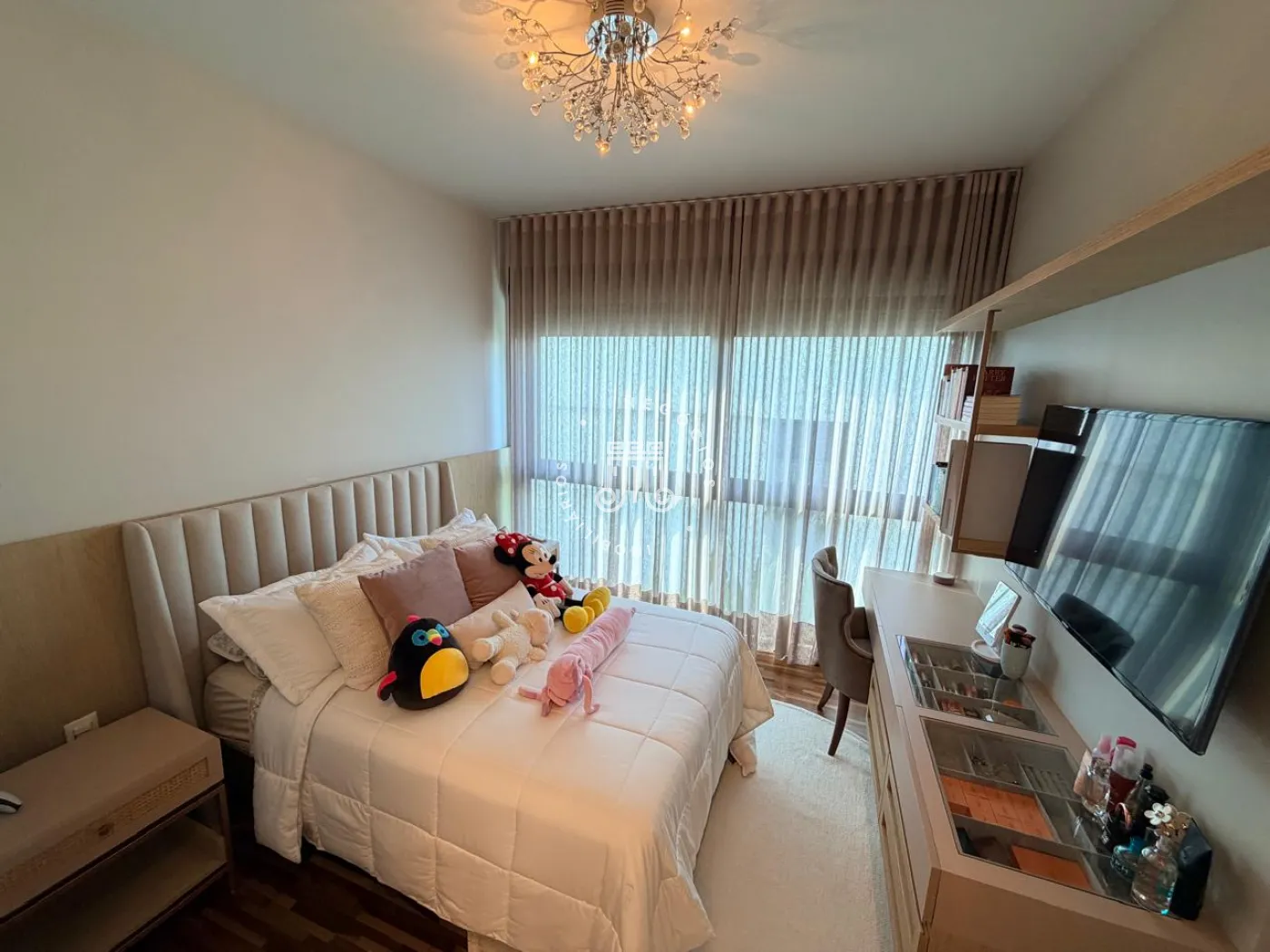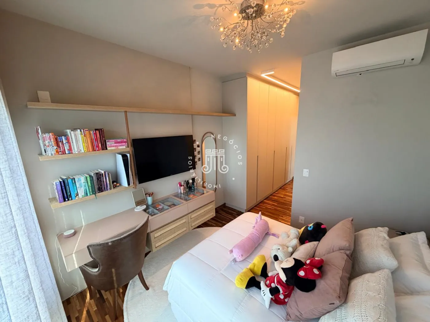 Na área íntima, três suítes proporcionam conforto e independência aos moradores. No pavimento superior, a sala de TV oferece um ambiente acolhedor e pode ser facilmente convertida em uma quarta suíte, atendendo com flexibilidade famílias em expansão ou a necessidade de um espaço adicional para hóspedes.