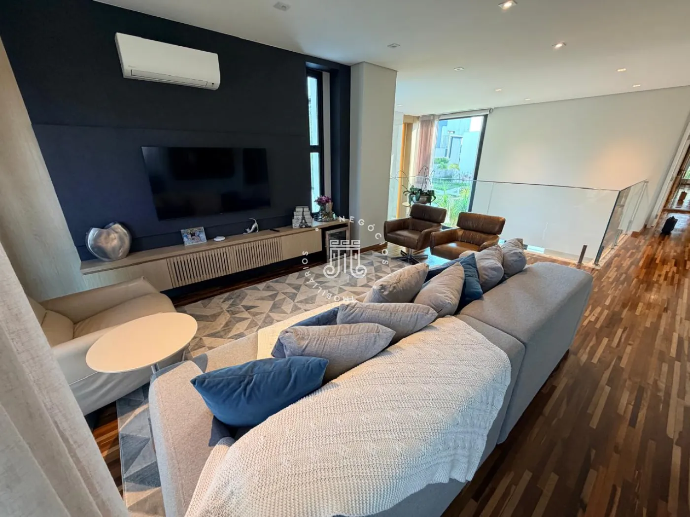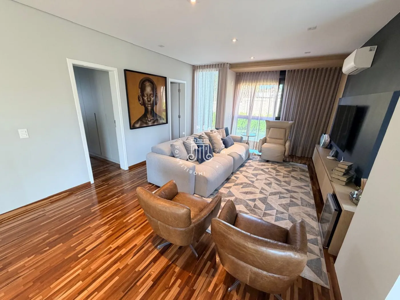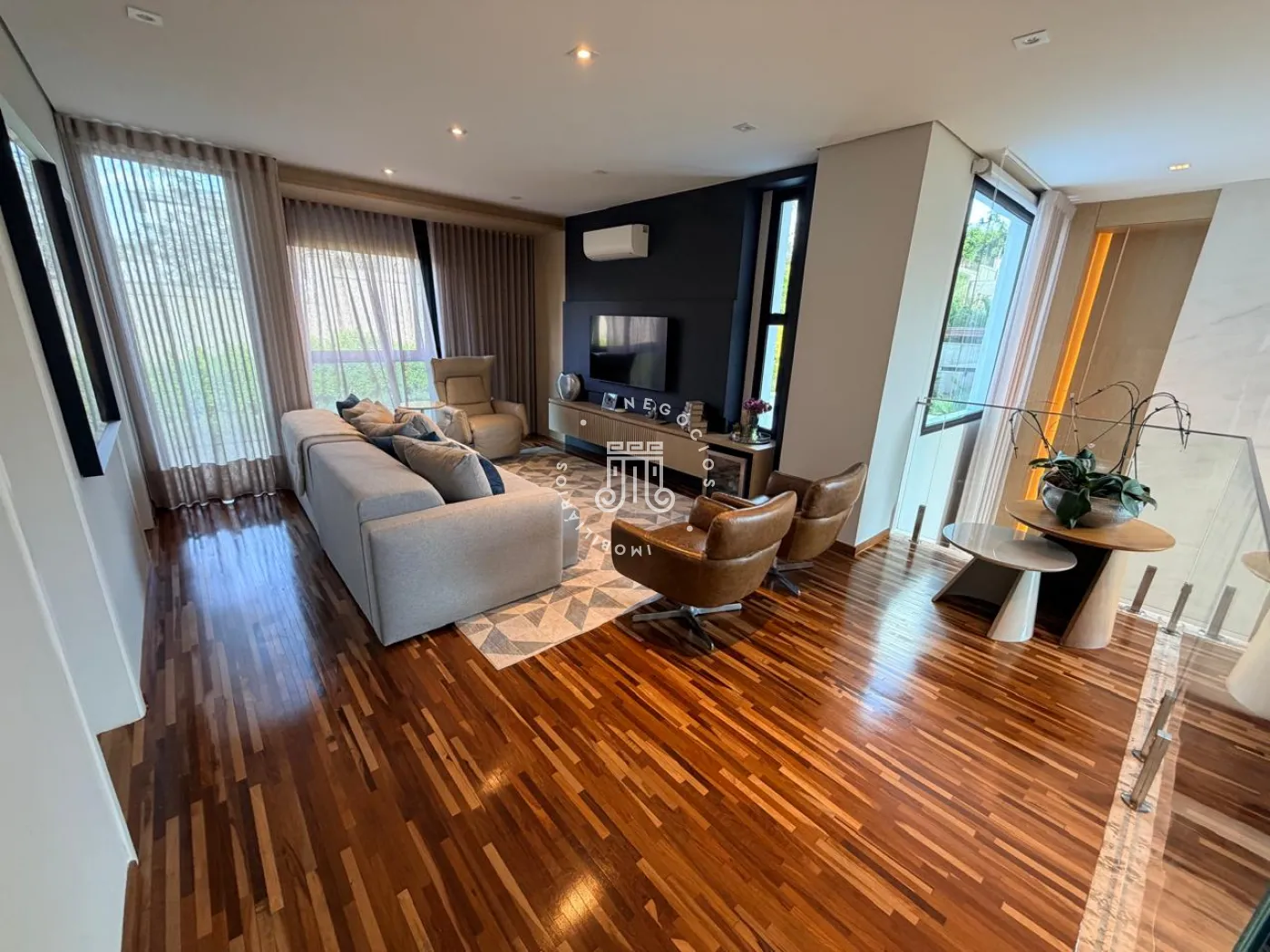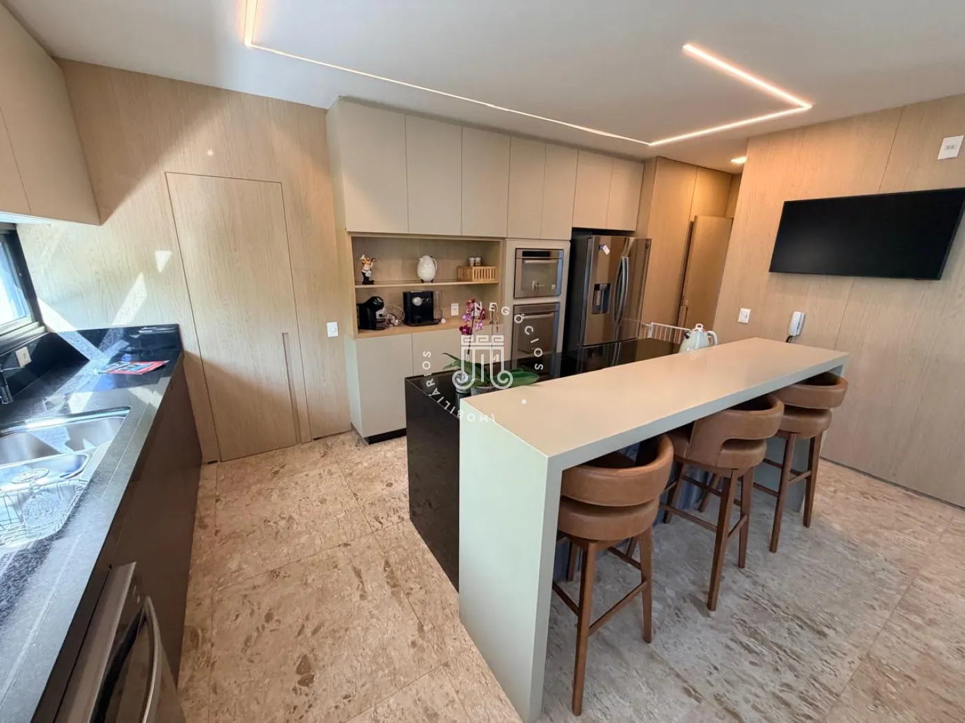 Na área íntima, três suítes proporcionam conforto e independência aos moradores. No pavimento superior, a sala de TV oferece um ambiente acolhedor e pode ser facilmente convertida em uma quarta suíte, atendendo com flexibilidade famílias em expansão ou a necessidade de um espaço adicional para hóspedes.