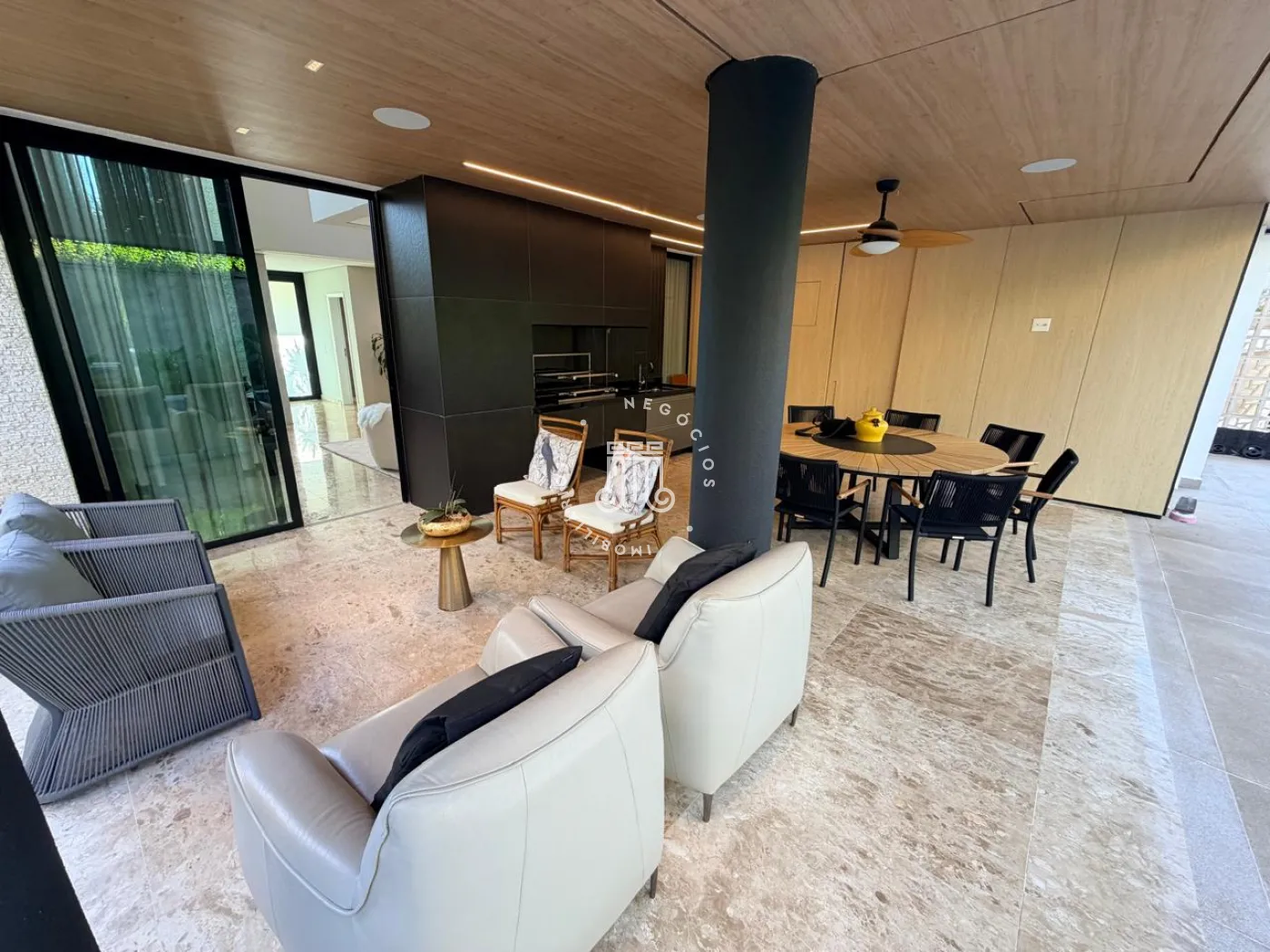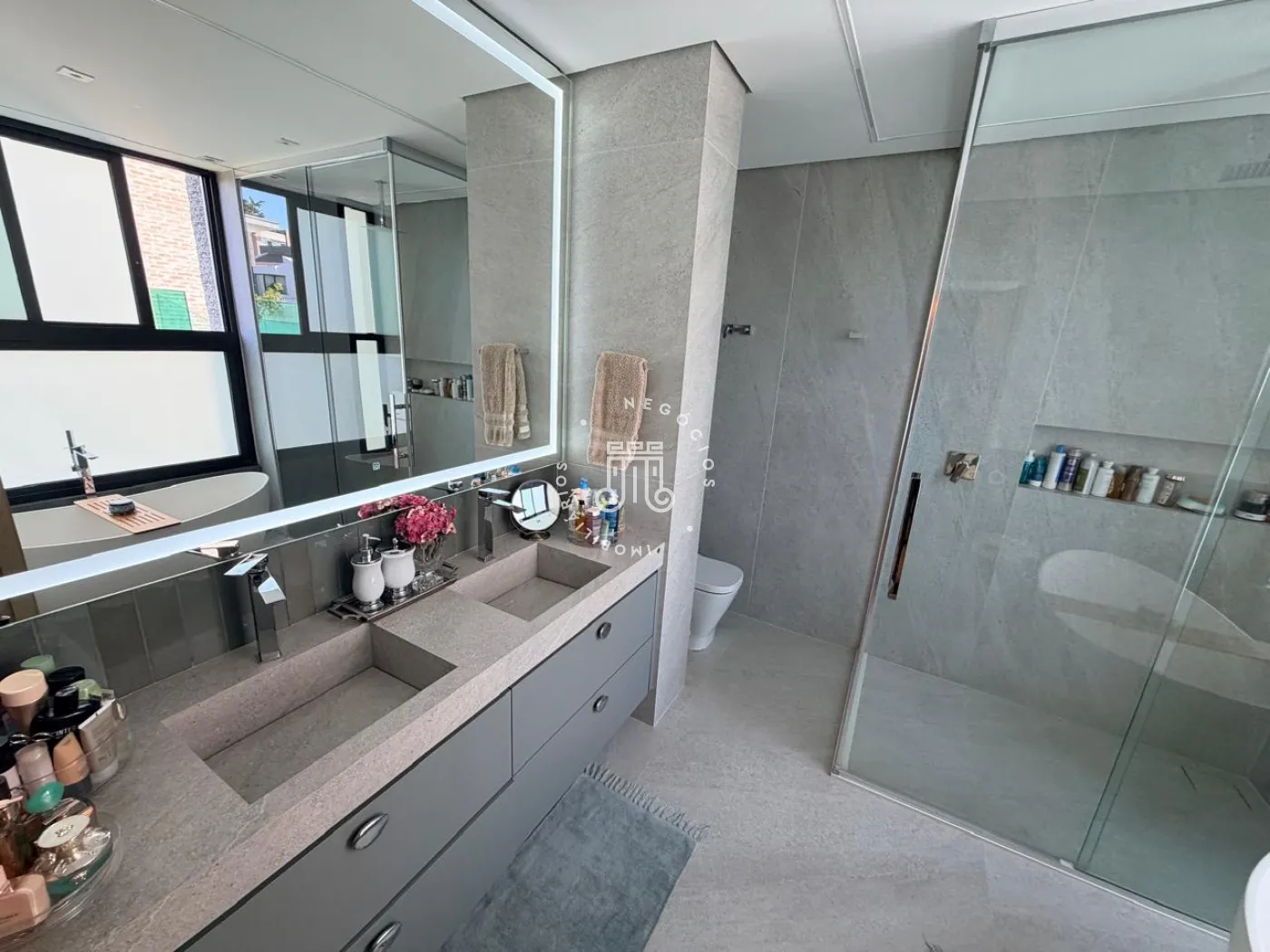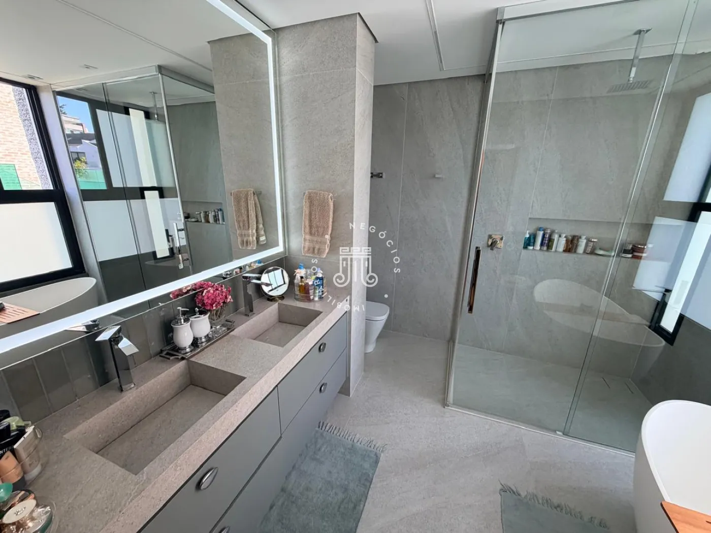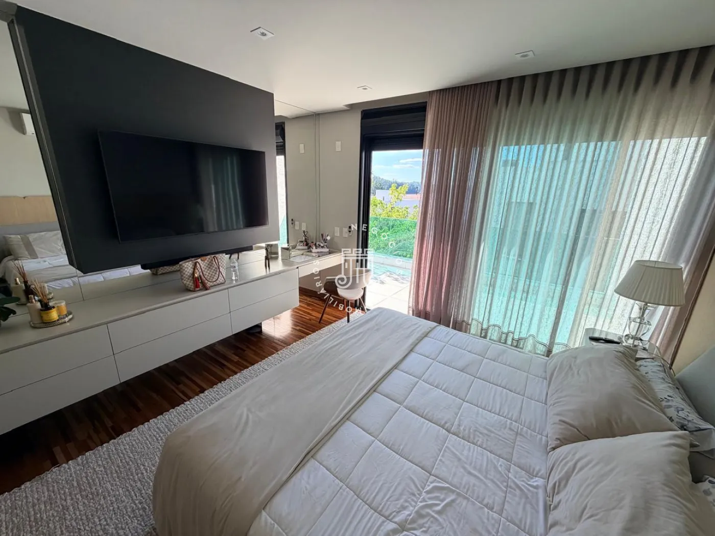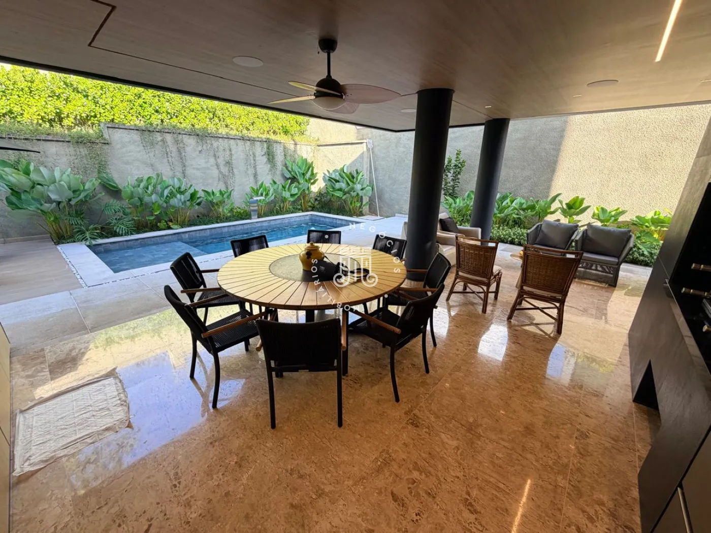 A área externa é um verdadeiro convite ao convívio. Com churrasqueira, piscina e um amplo quintal, o espaço foi pensado para momentos de lazer, encontros e experiências memoráveis. O paisagismo, cuidadosamente elaborado, reforça a sensação de bem-estar, enquanto a ausência de vizinhos nos fundos garante um diferencial cada vez mais raro: privacidade.