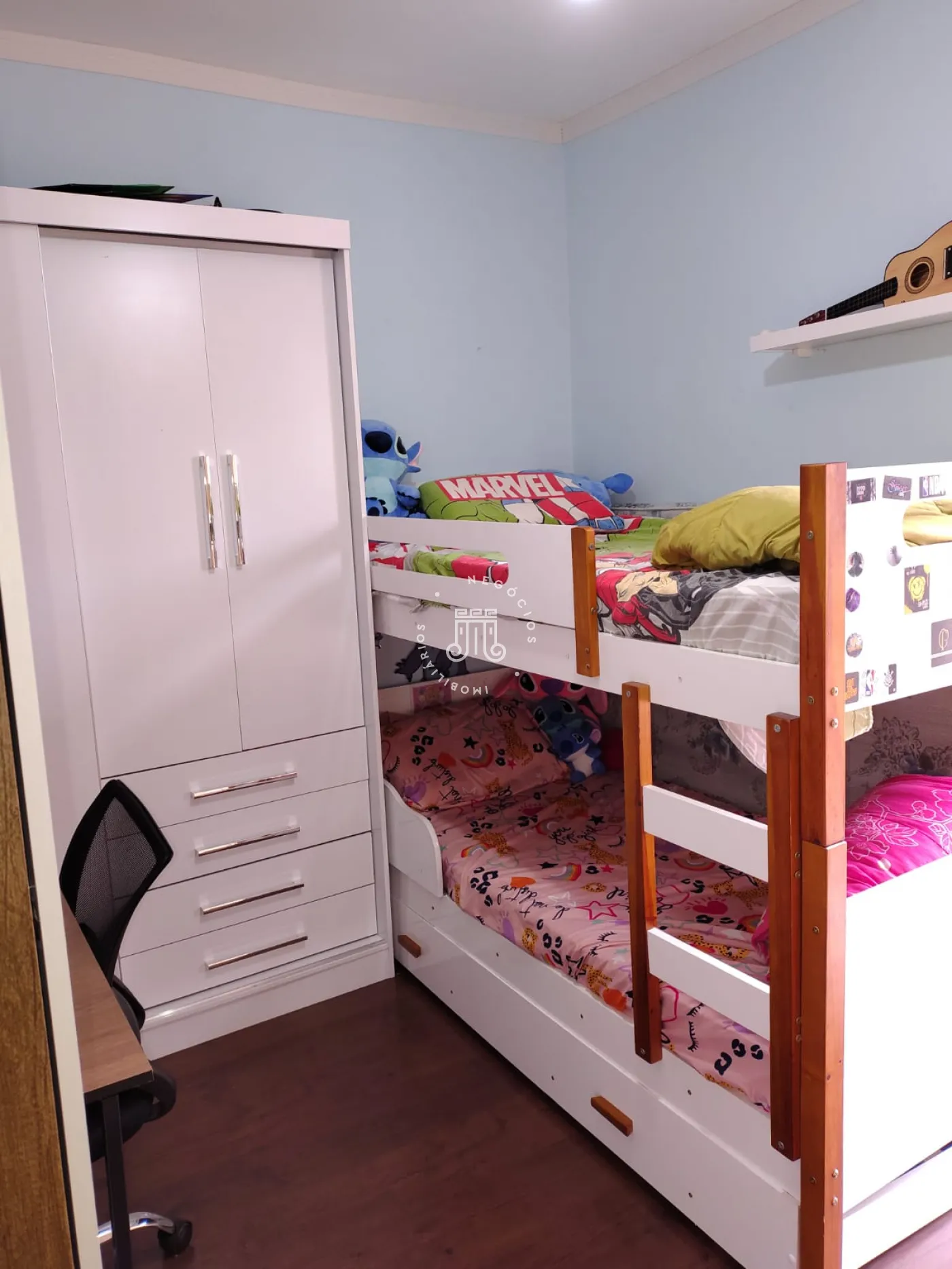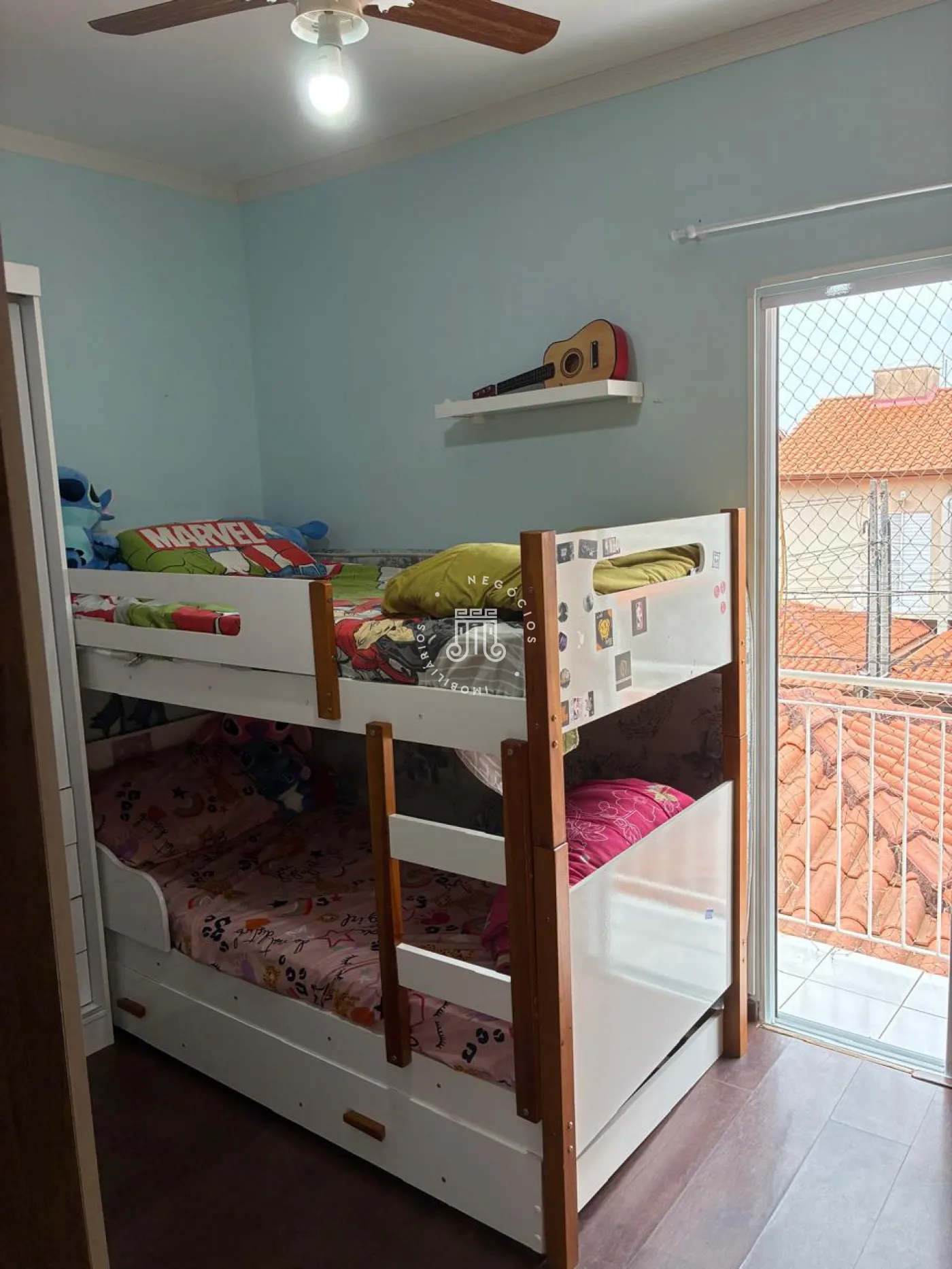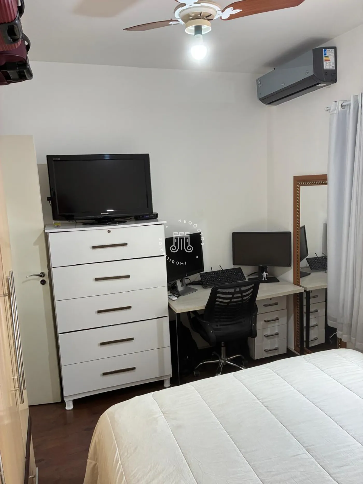 Com 2 quartos um com ar condicionado, banheiro social com box vidro e gabinete, sala 2 ambientes, lavabo, copa cozinha pia e gabinete, área de serviço com armários, uma vaga coberta, o condomínio te piscina e um salão de festa.