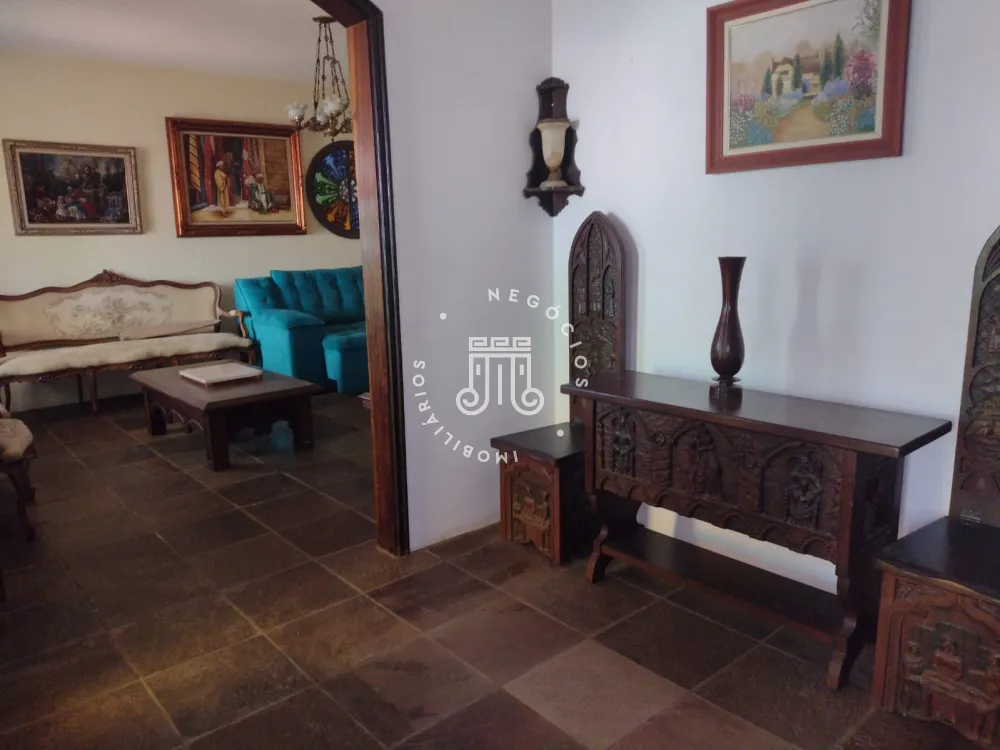 Composta por 3 dormitórios sendo 1 suíte, todos com armários, banheiro social, lavabo, sala de jantar, sala de estar, cozinha com armários, espaço gourmet com salão e churrasqueira, piscina com cascata, canil, pomar e 6 vagas de garagem cobertas com portão automatizado. Imóvel não vai ficar mobiliado