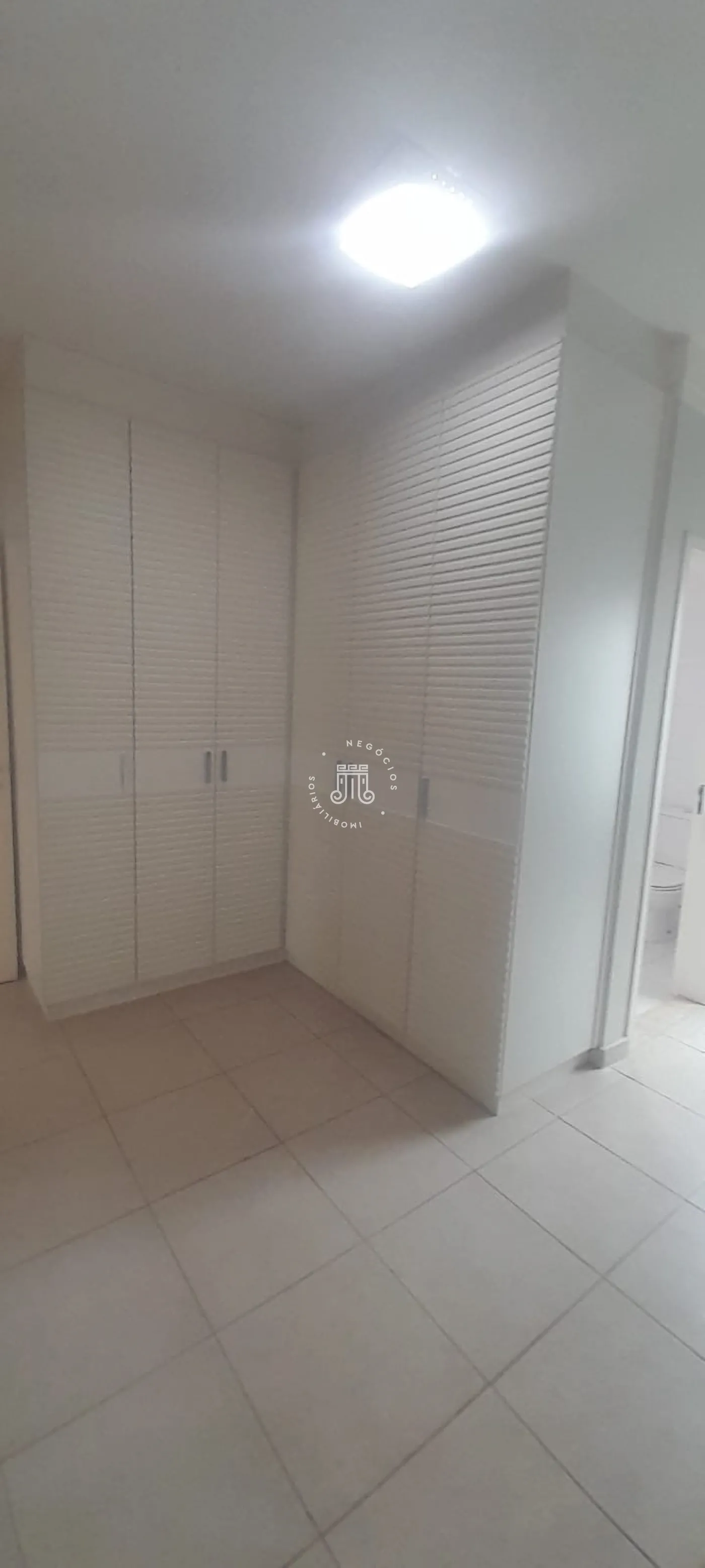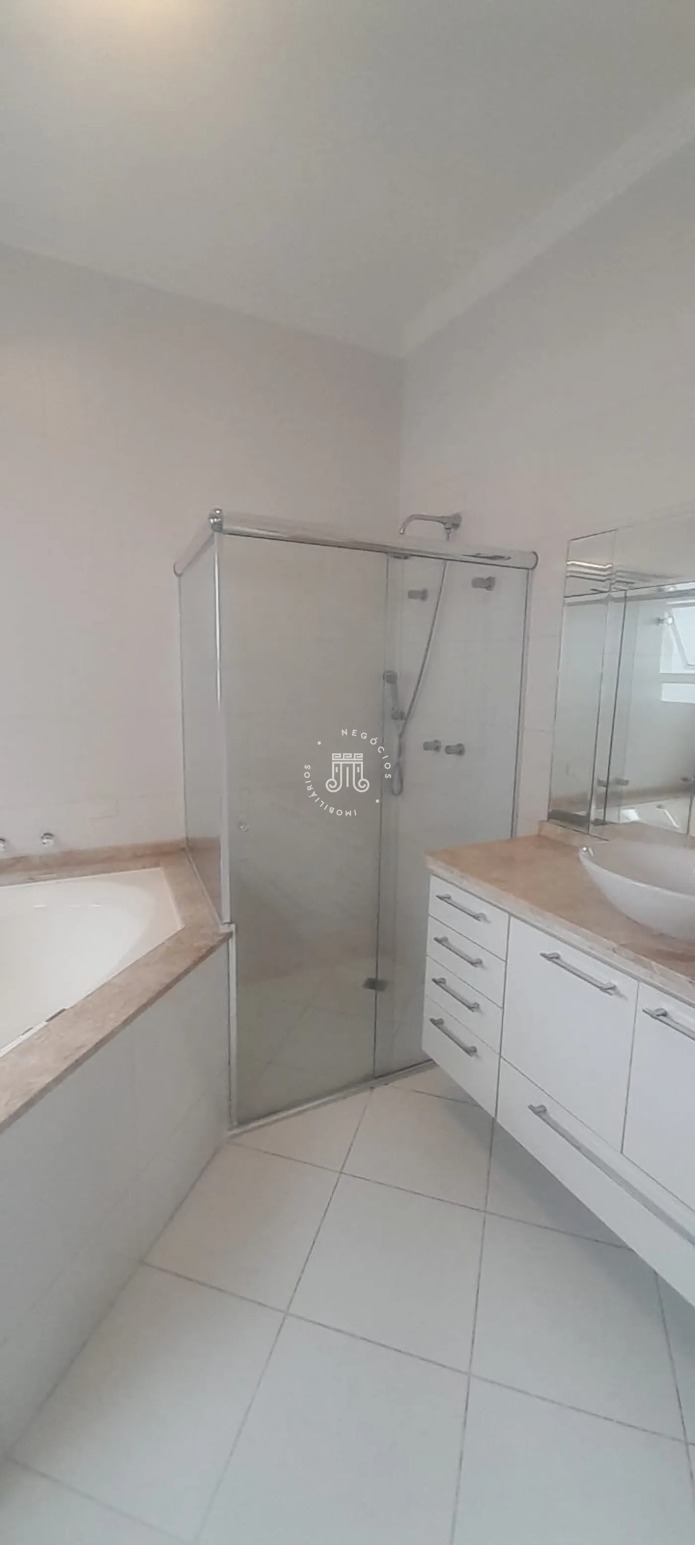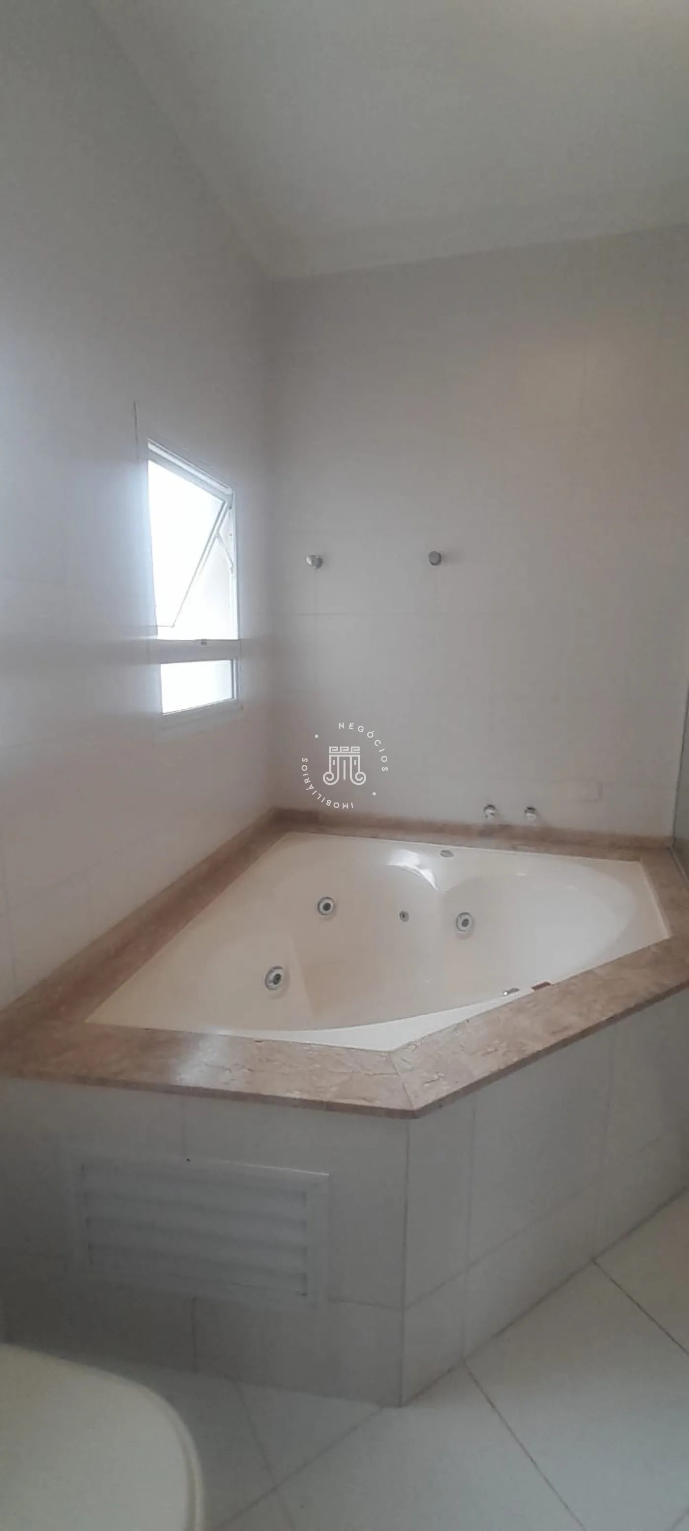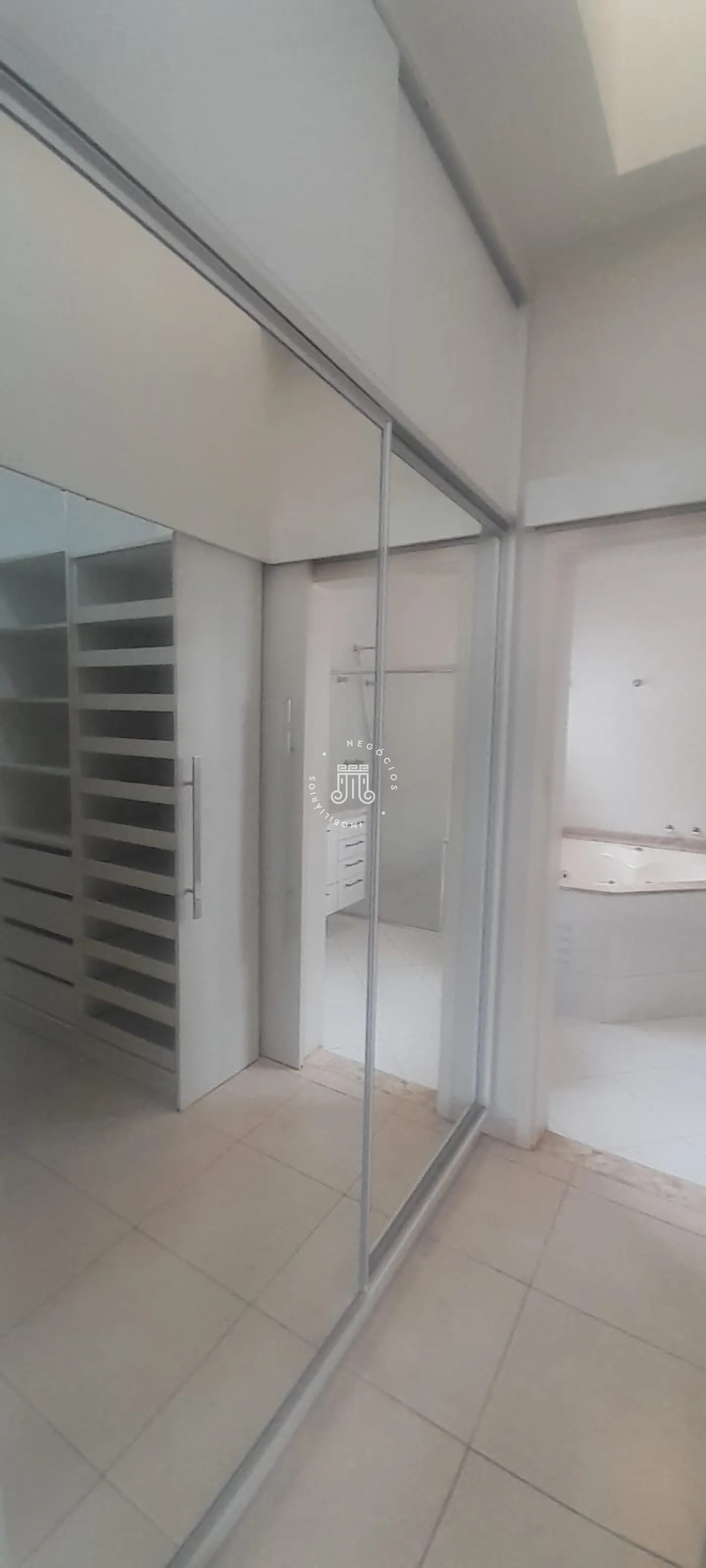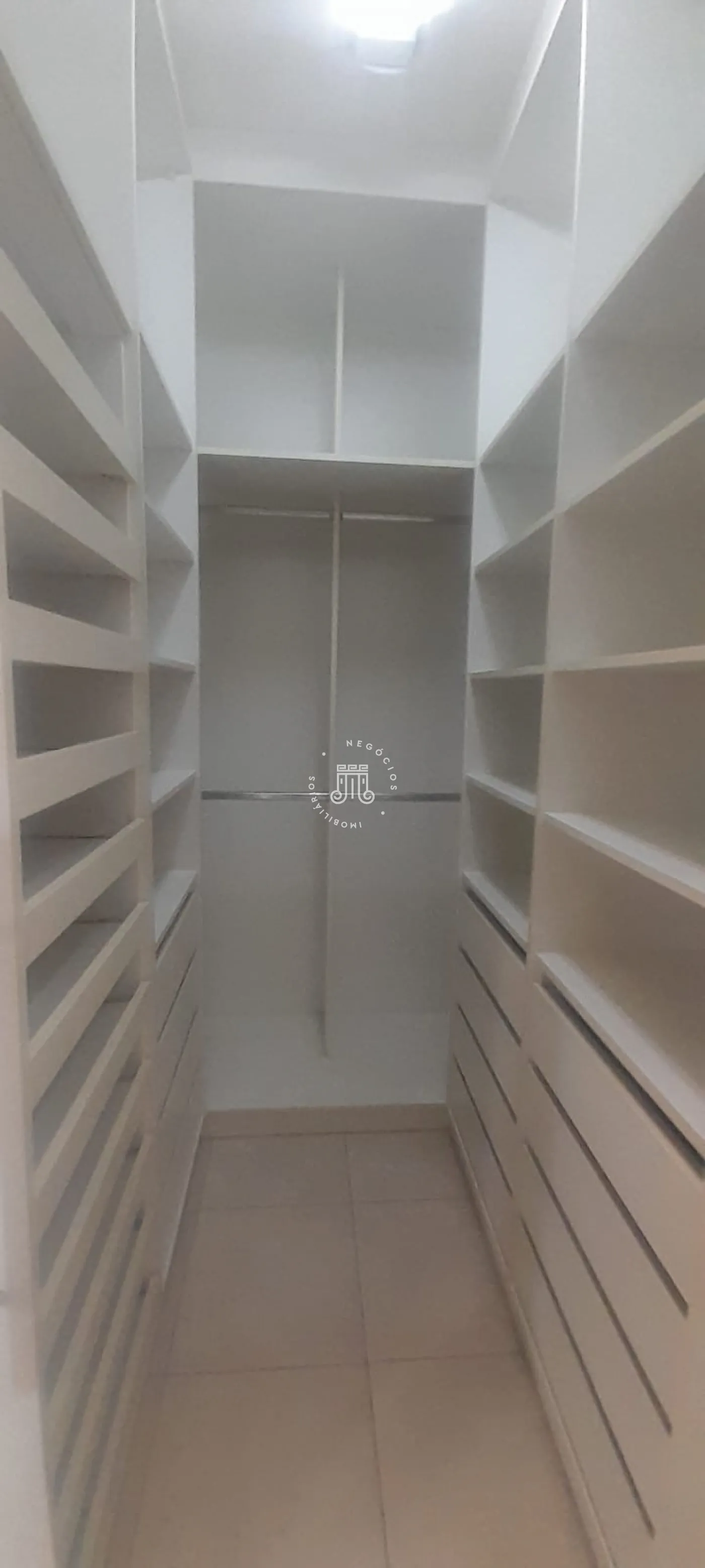 O imóvel conta com três suítes com sacada, sendo uma delas com banheira e closet, além de escritório. Possui cozinha e lavanderia com móveis planejados, sala de estar com painel e lareira, sala de jantar, quintal com churrasqueira e armários, dois lavabos e quatro vagas de garagem.