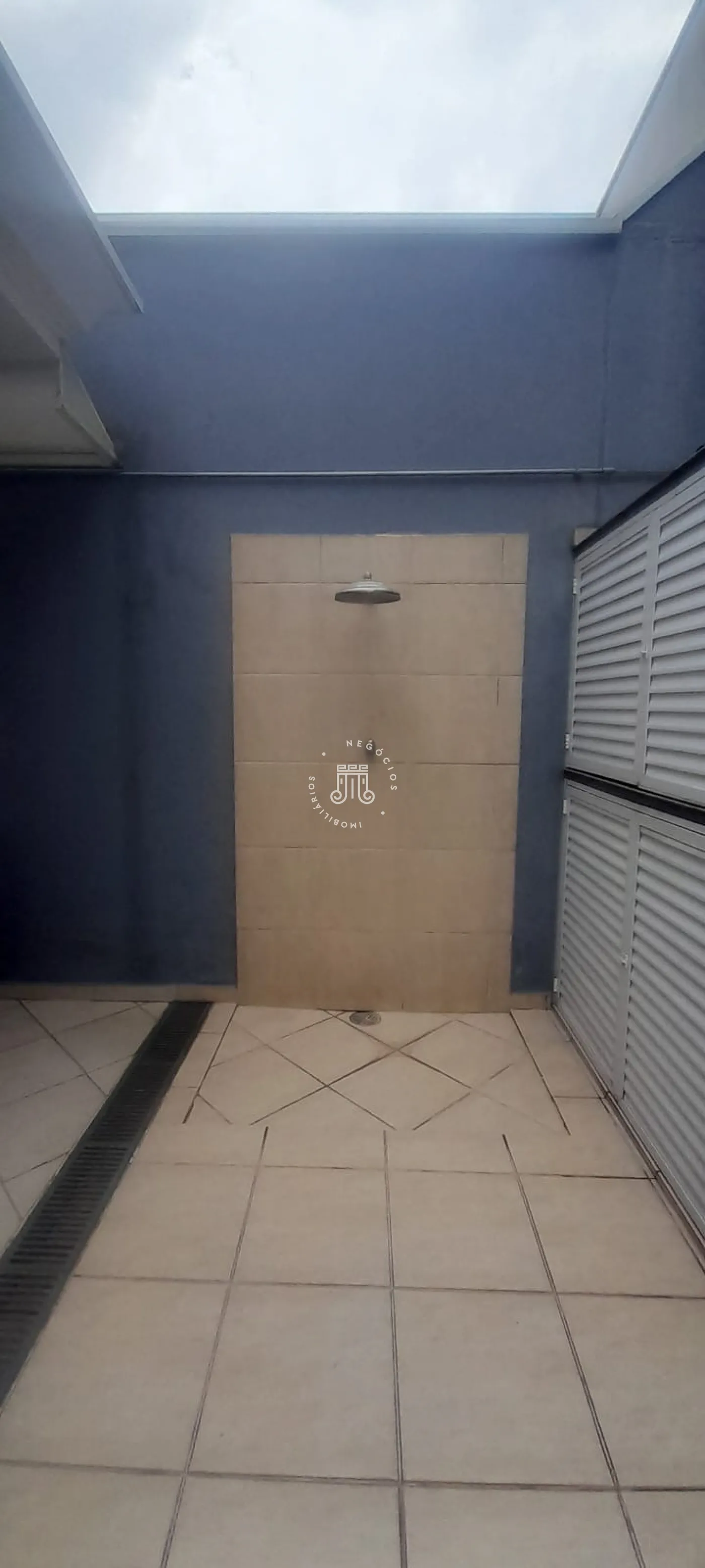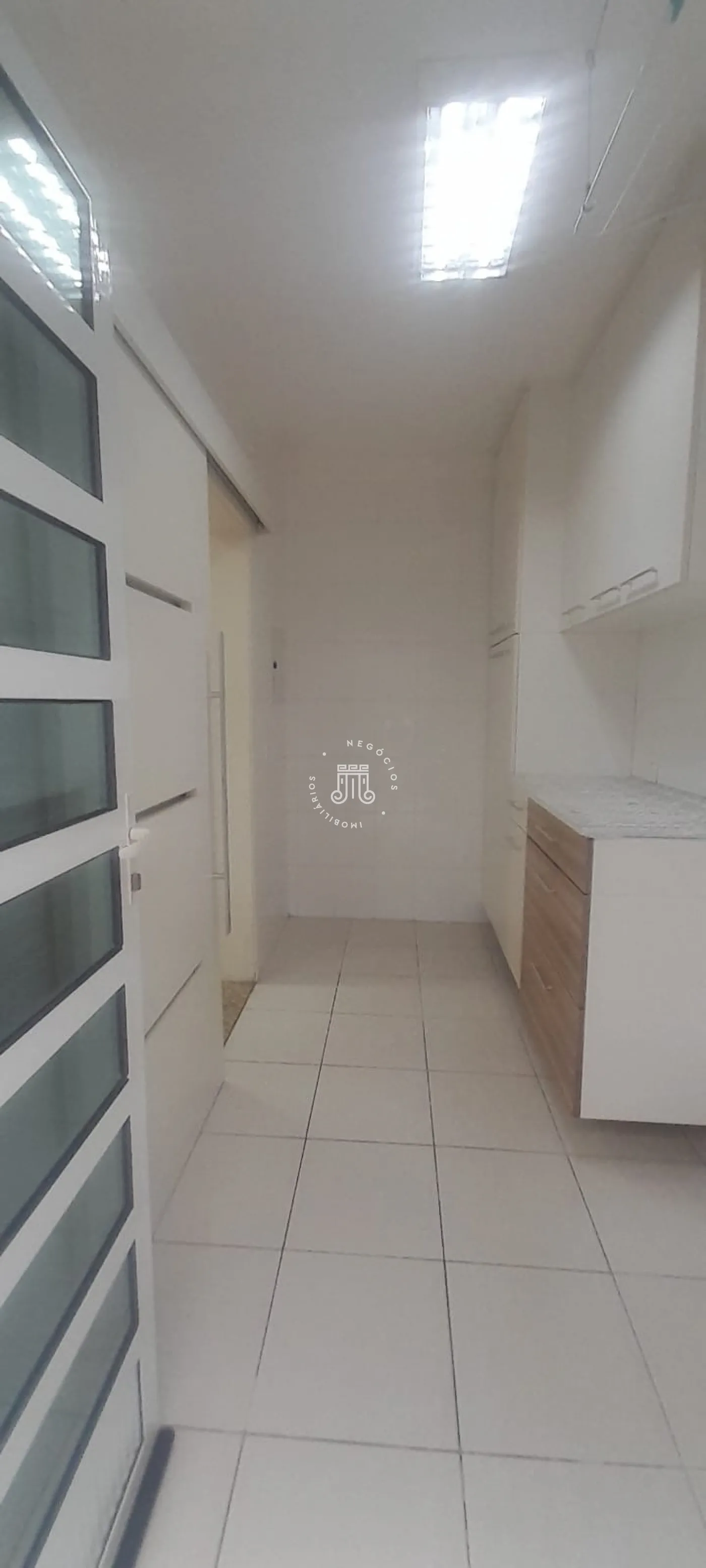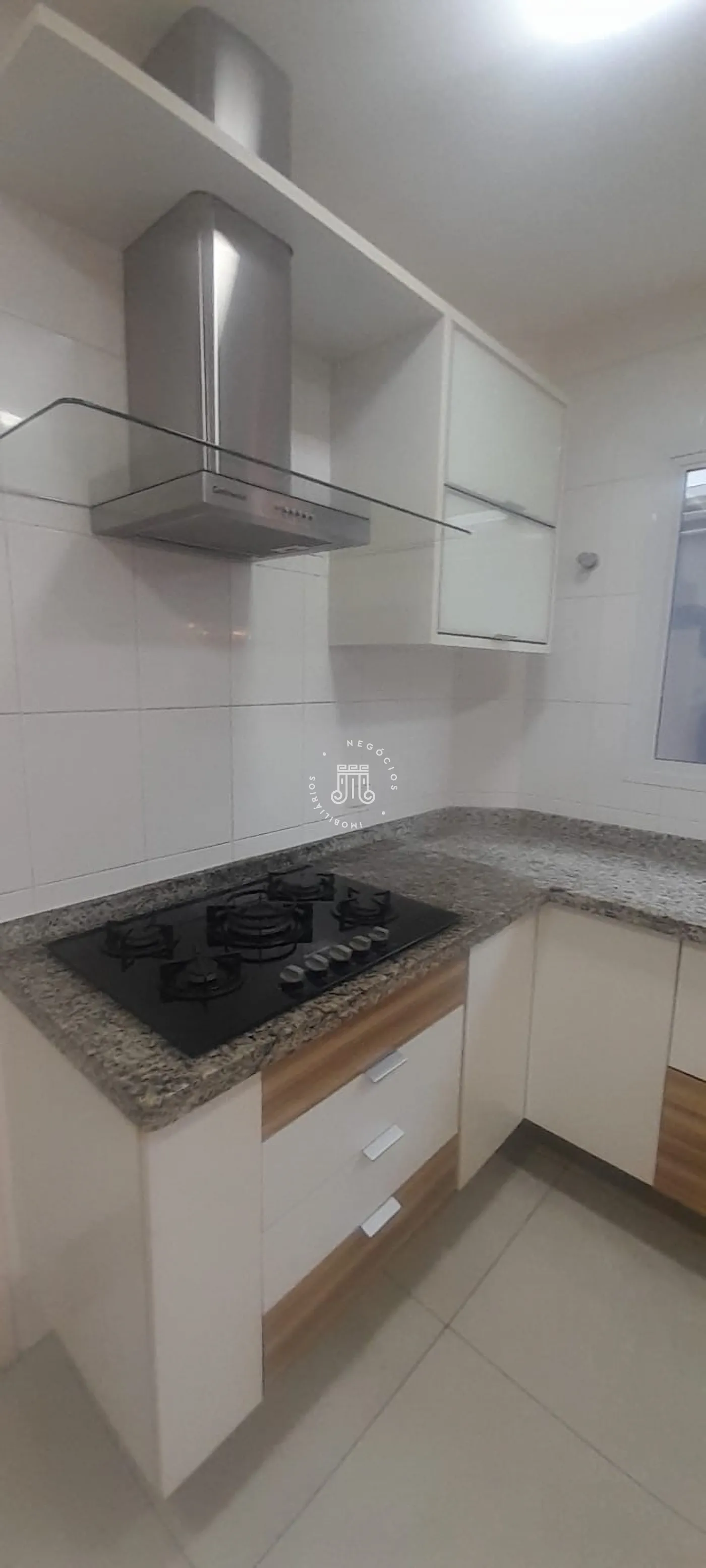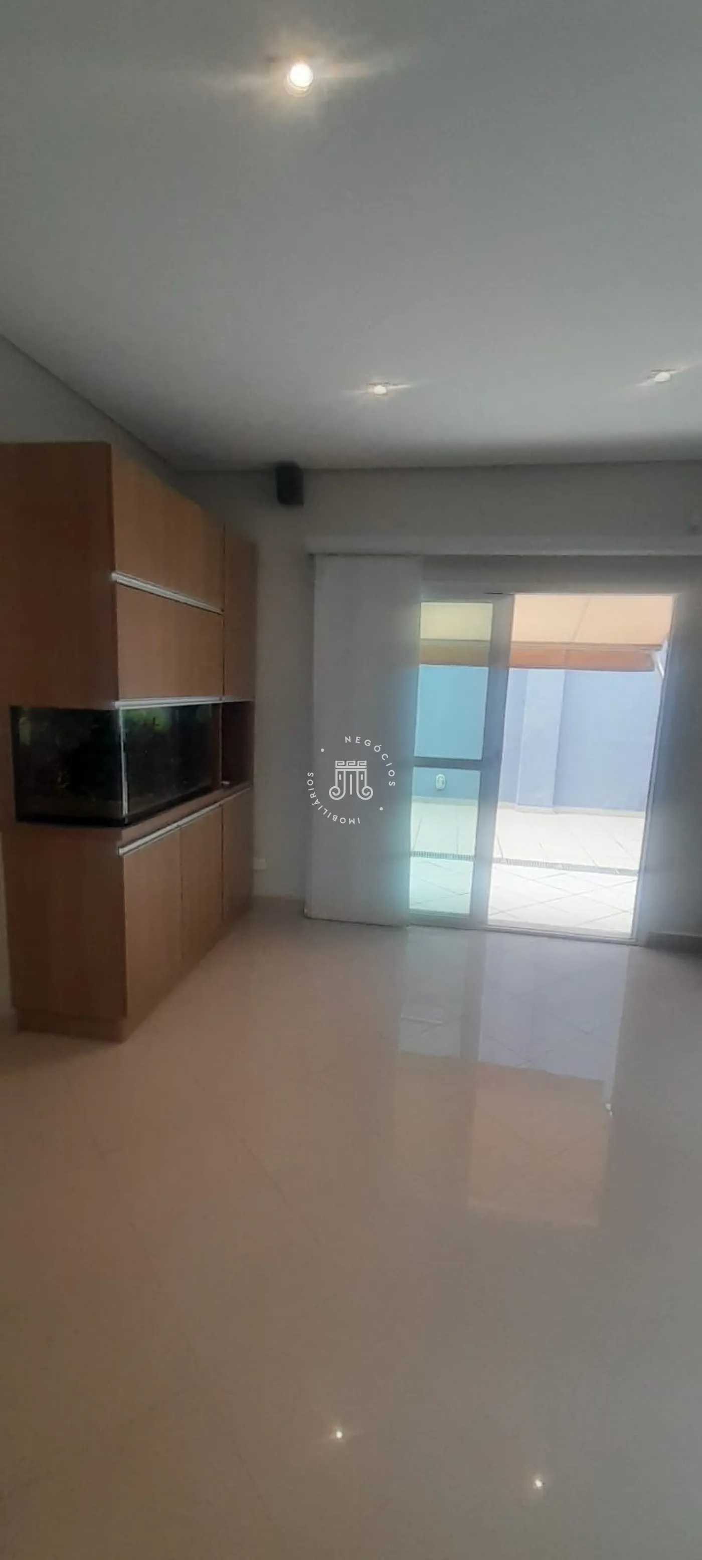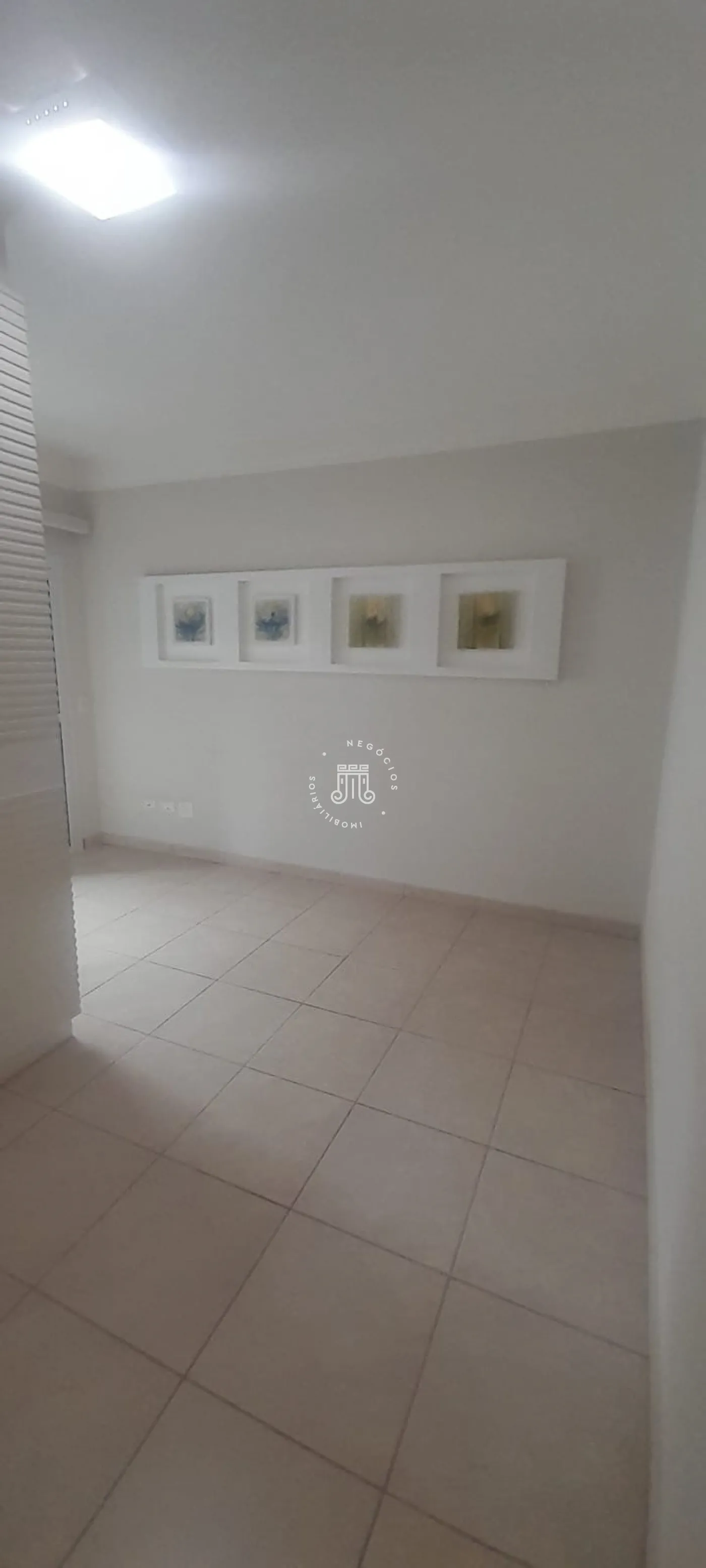 O imóvel conta com três suítes com sacada, sendo uma delas com banheira e closet, além de escritório. Possui cozinha e lavanderia com móveis planejados, sala de estar com painel e lareira, sala de jantar, quintal com churrasqueira e armários, dois lavabos e quatro vagas de garagem.
