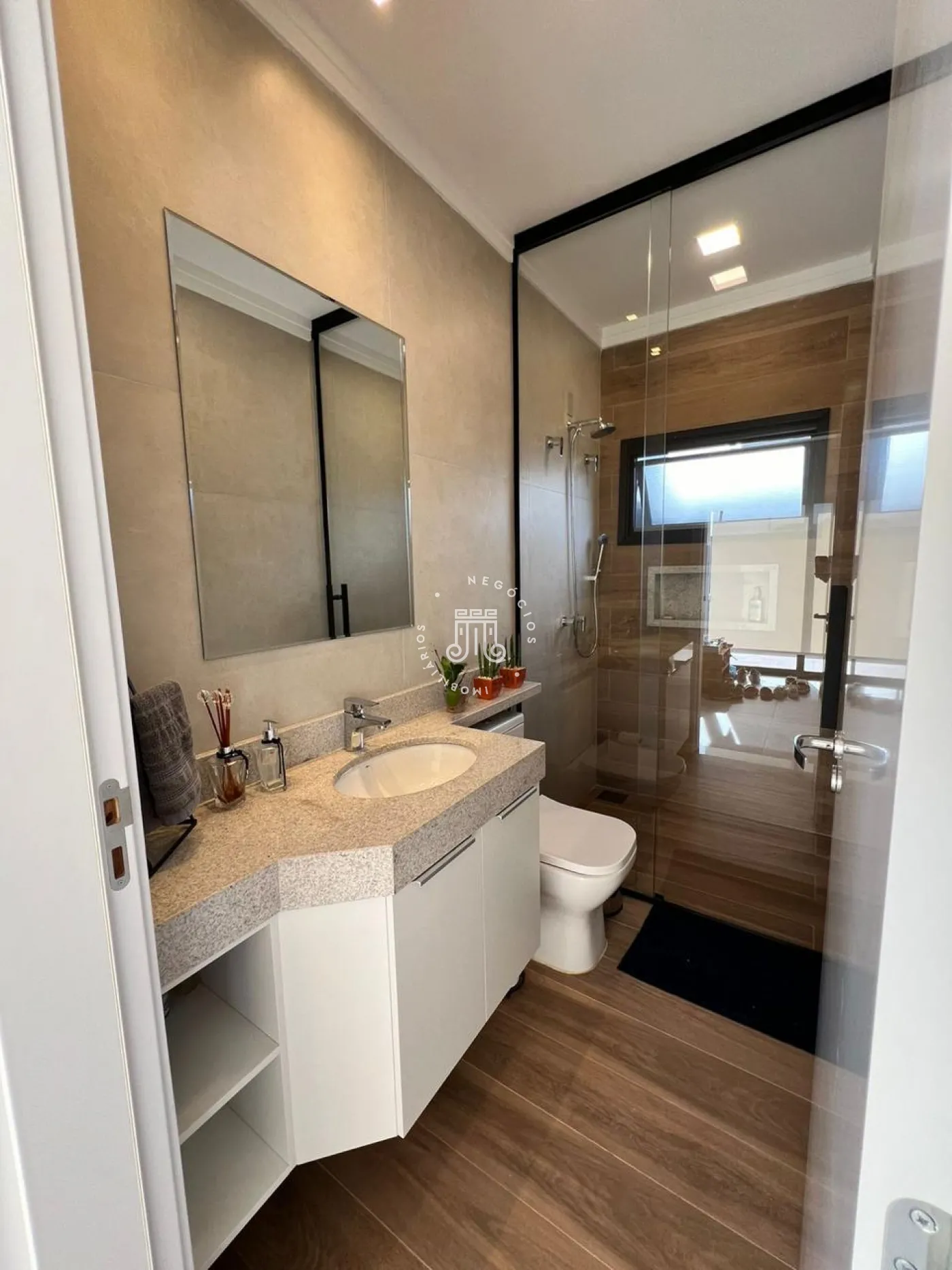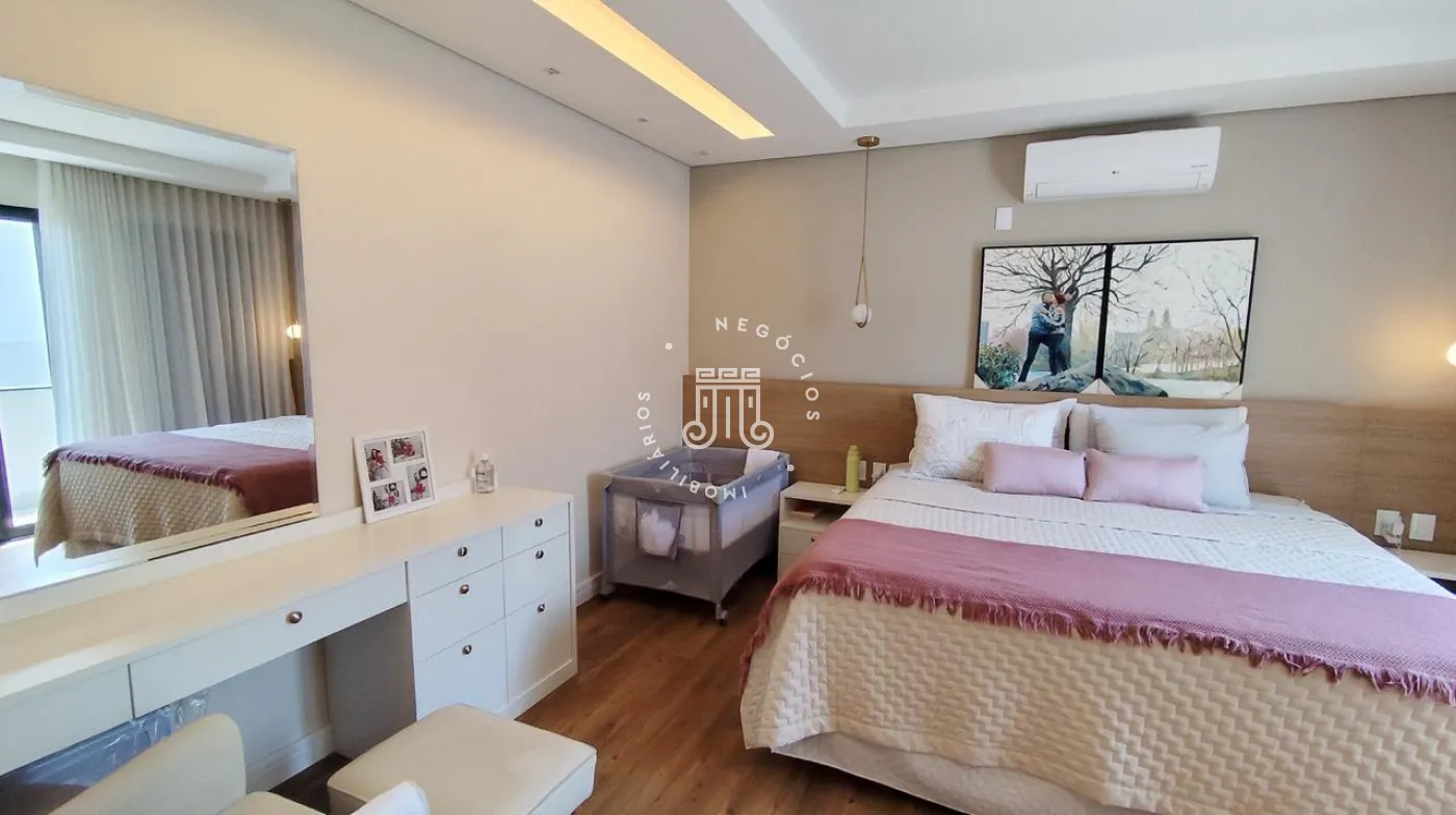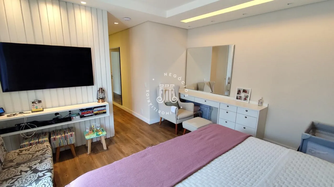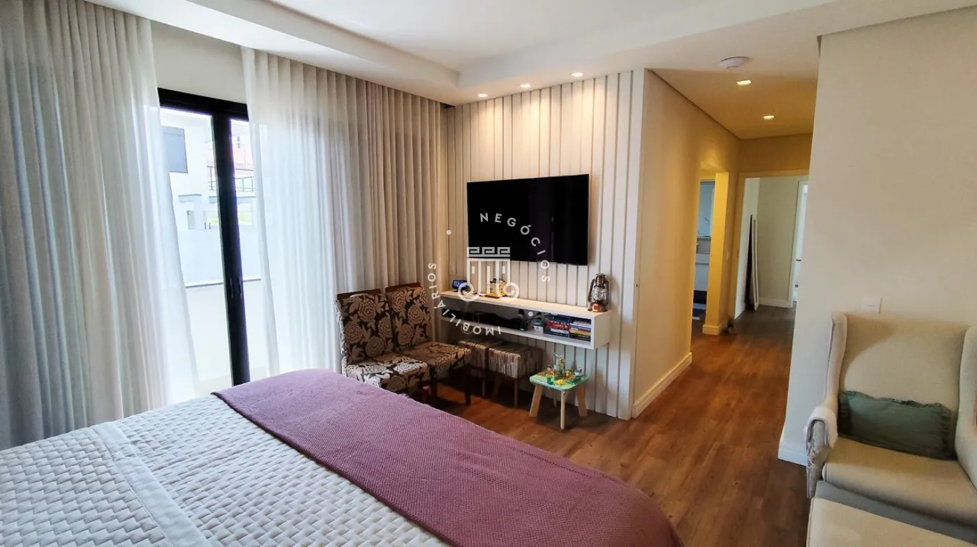 Sobrado com área construída de 289 m², distribuídos em 4 dormitórios, sendo 3 suítes com closet. No piso térreo, há um dormitório/escritório com possibilidade de conversão em suíte. A casa conta com móveis planejados em todos os ambientes, exceto nos closets, sendo o da suíte máster já finalizado.