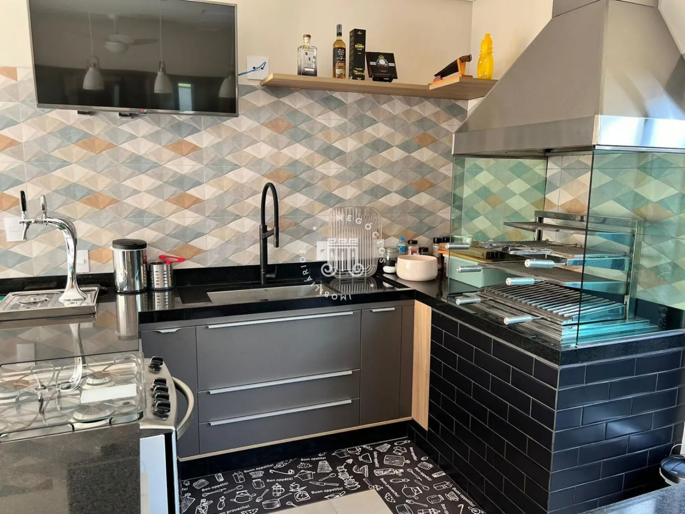Aquecimento de água por boiler Rinnai de 550 litros com controle digital. Acabamentos em porcelanato Portinari e piso Durafloor, metais Deca com filtros nas torneiras da cozinha, espaço gourmet e copa. Inclui chopeira elétrica, móveis planejados Simonetto e janelas com telas mosqueteiras.