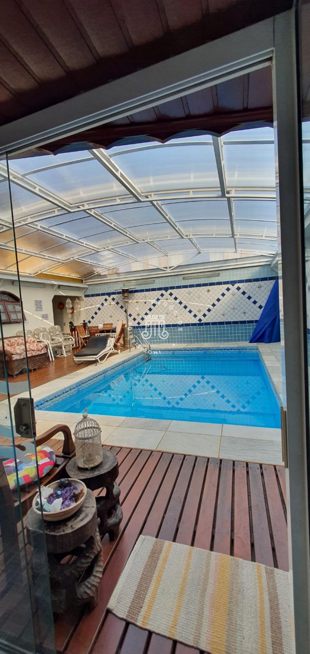 Imóvel possui 243m² de área construída, sendo três dormitórios, 2 suítes com armários feitos por marceneiro artesão, uma suíte máster com banheira de hidromassagem, um dormitório mobiliado como home office, sala de estar com painel em madeira e Home Theater, sala de jantar, cozinha planejada, quatro banheiros sociais, área de serviço com armários planejados, espaço gourmet com churrasqueira, pequeno vestiário e piscina aquecida com cobertura retrátil de policarbonato em um aconchegante ambiente, pequeno jardim com um gostoso quintal lateral bem ensolarado com vasos de plantas frutíferas, além de um sótão com armários bem grandes e duas vagas cobertas.