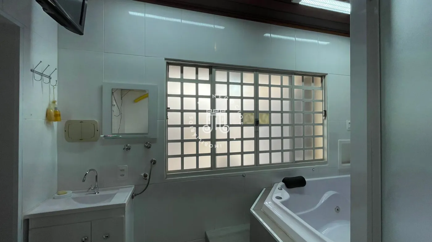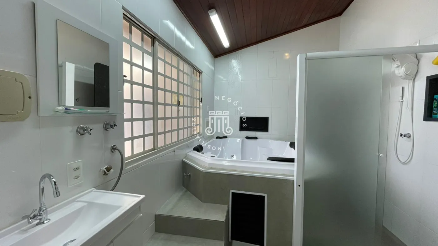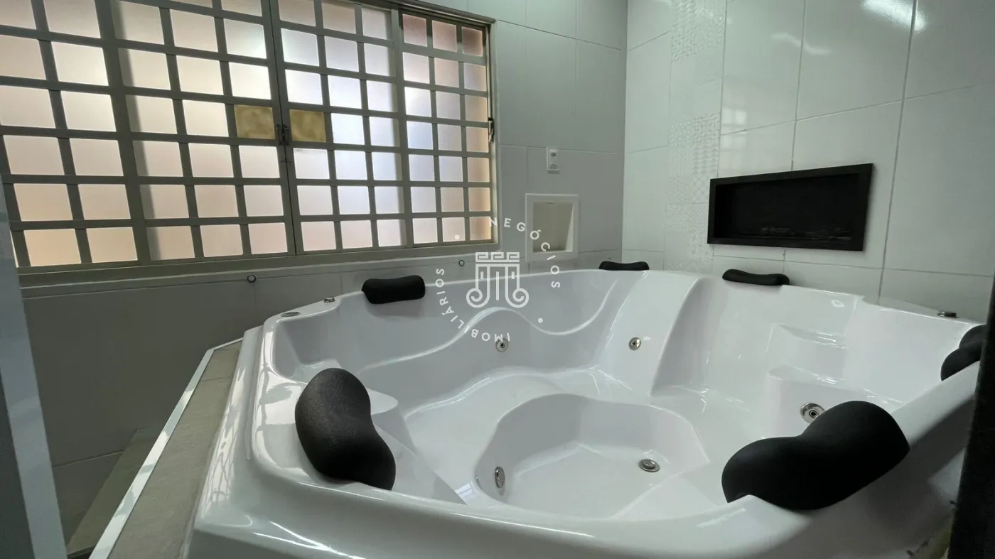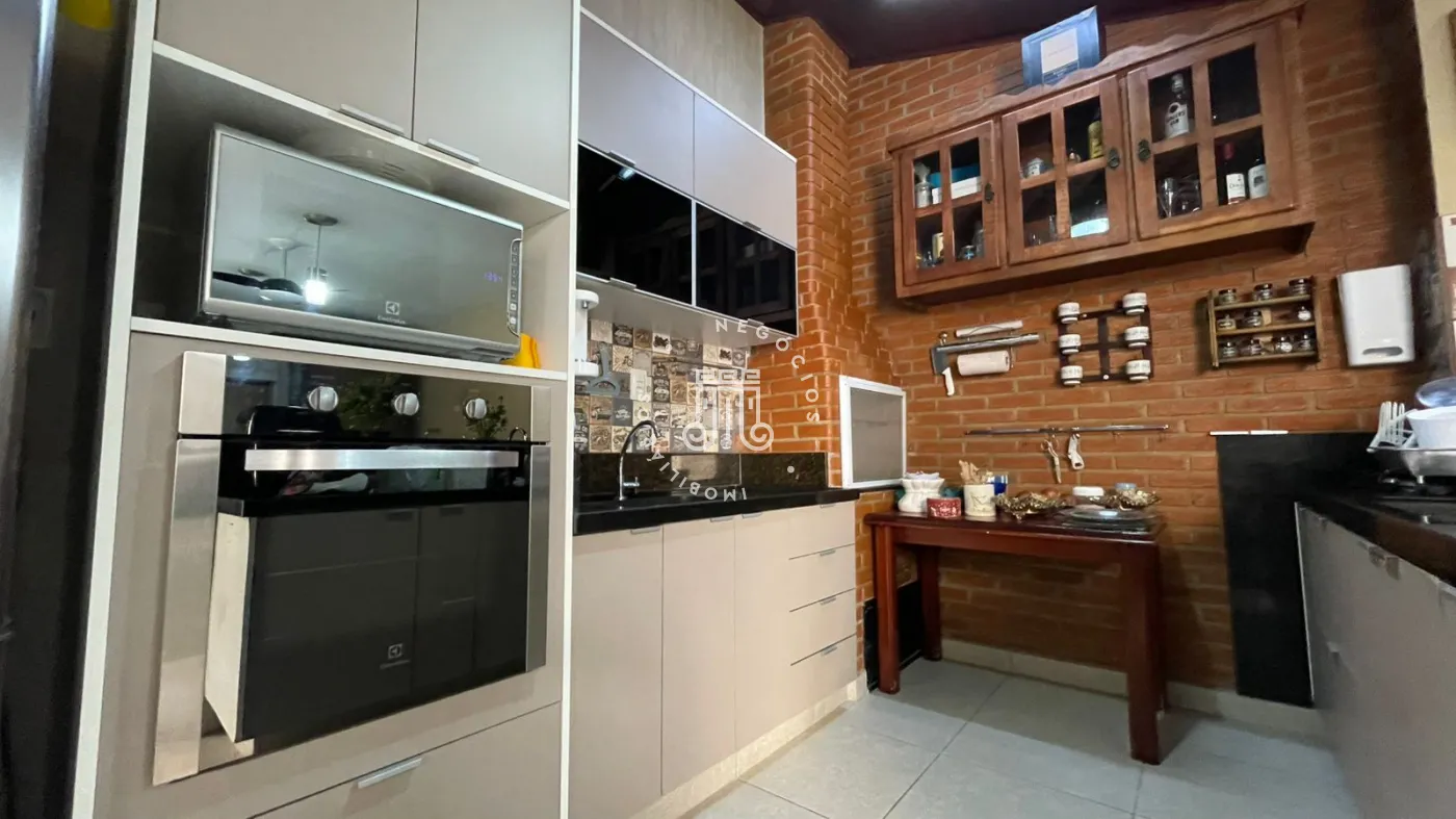 Casa com 3 dormitórios, sendo 2 suítes com closet e armários embutidos, uma delas com Jacuzzi, ar-condicionado, cozinha com armários, área de serviço, sala de jantar, sala de estar, sala de televisão, lavabo, 4 banheiros, área gourmet, churrasqueira, quintal, spa e 3 vagas de garagem.