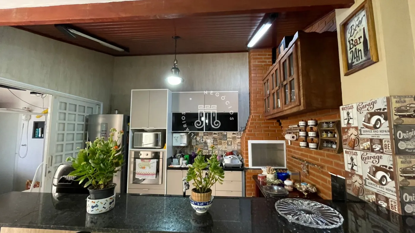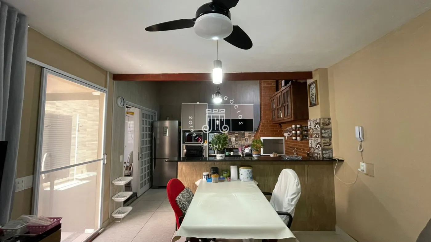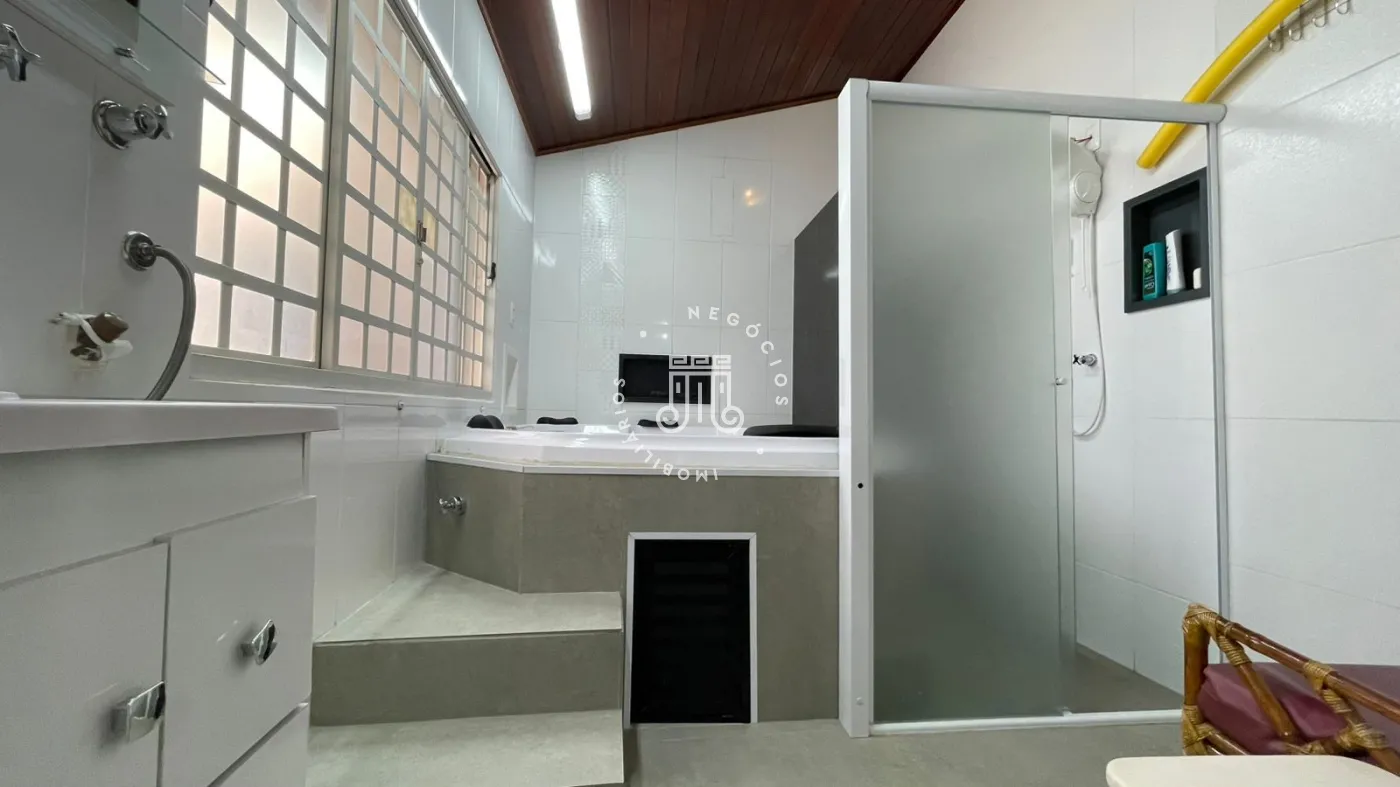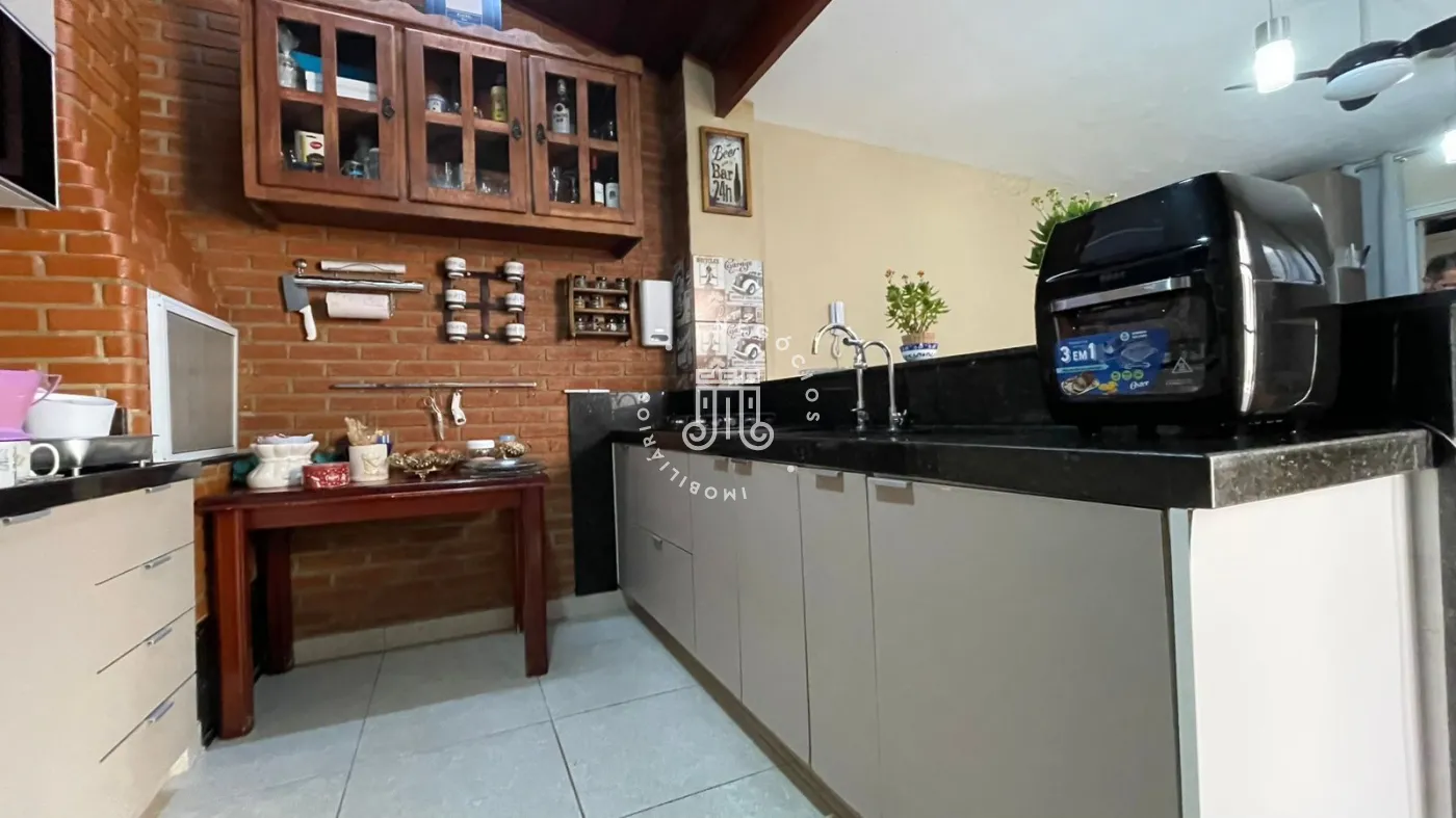 Casa com 3 dormitórios, sendo 2 suítes com closet e armários embutidos, uma delas com Jacuzzi, ar-condicionado, cozinha com armários, área de serviço, sala de jantar, sala de estar, sala de televisão, lavabo, 4 banheiros, área gourmet, churrasqueira, quintal, spa e 3 vagas de garagem.
