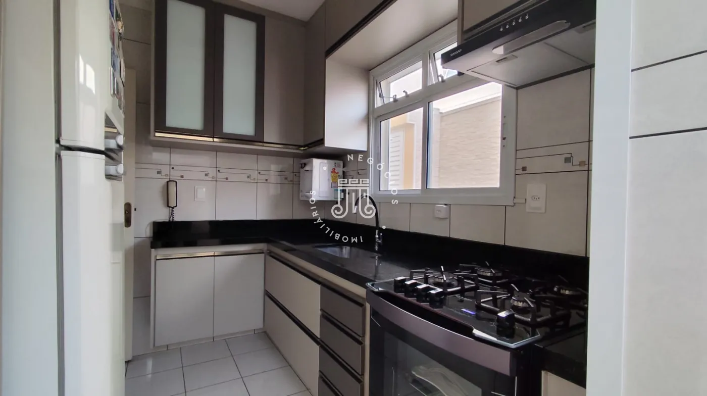 Corredor lateral, cozinha com armários planejados, Cooktop, forno, 2 vagas de garagem.