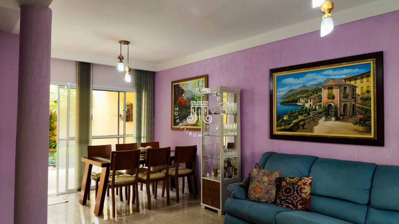 Casa tipo sobrado com 3 dormitórios sendo uma suíte , banheiro social, lavabo, sala de estar conjugada com sala de jantar, área gourmet com churrasqueira e pia.