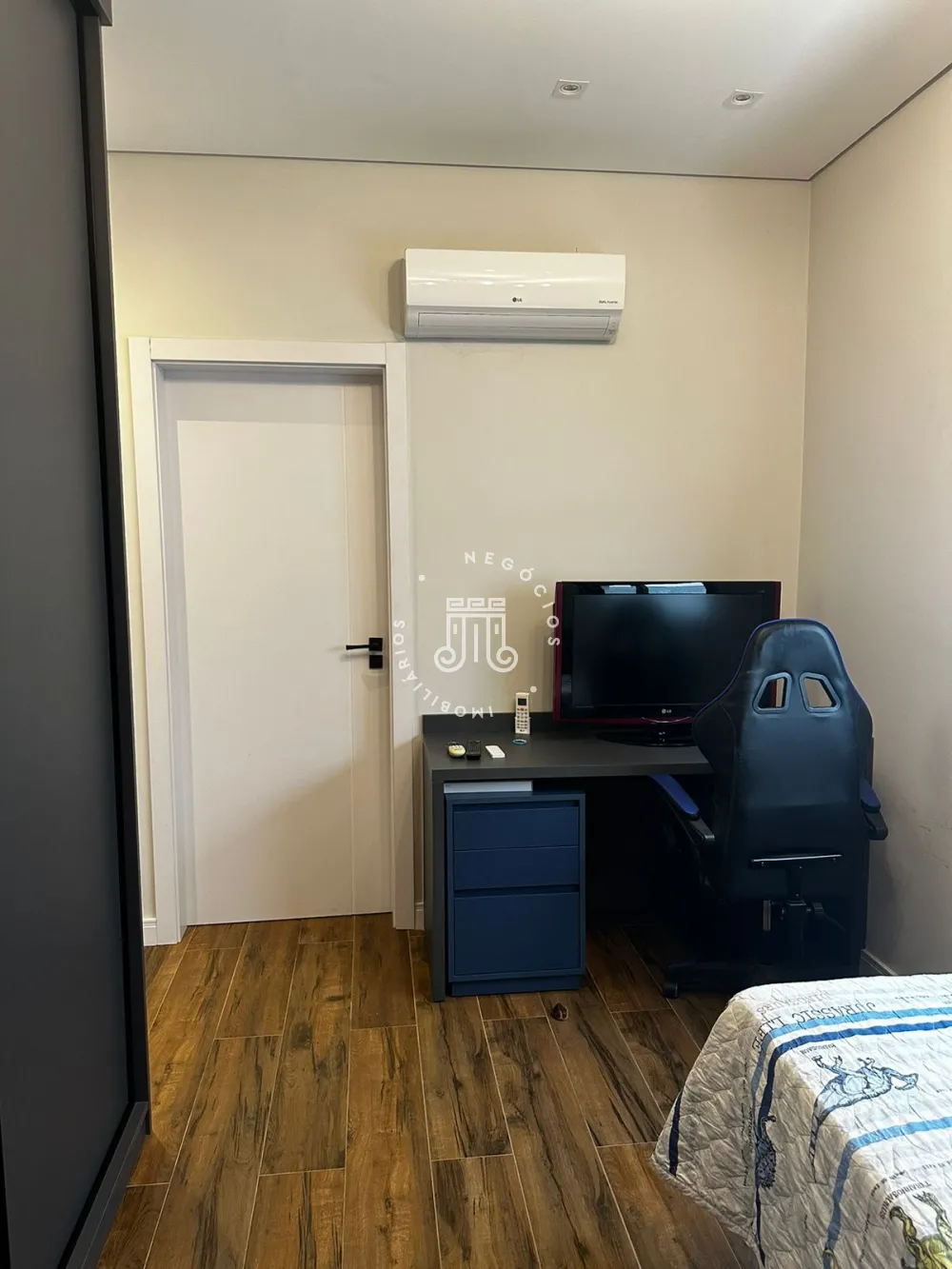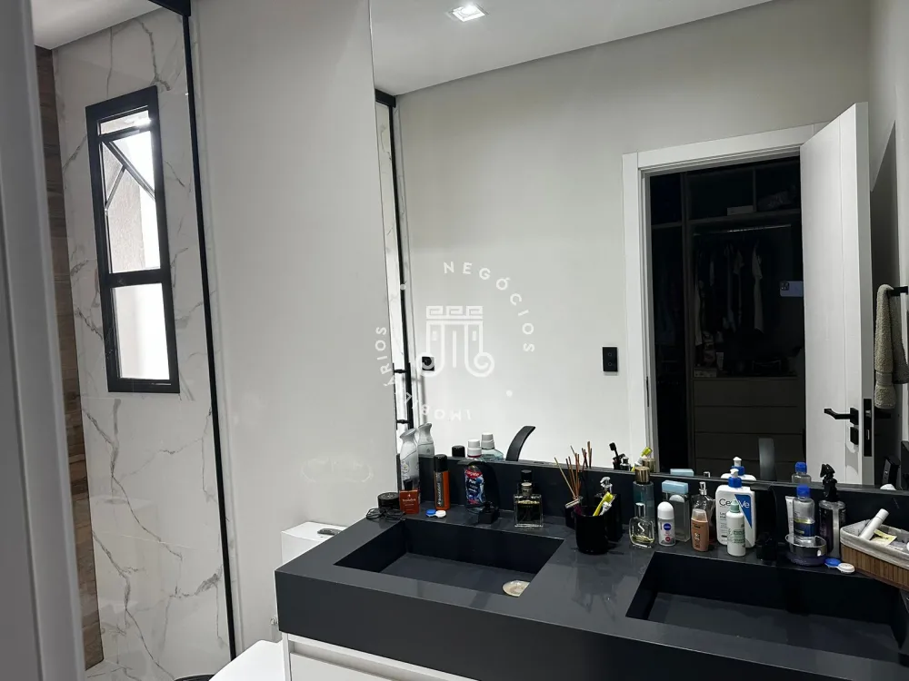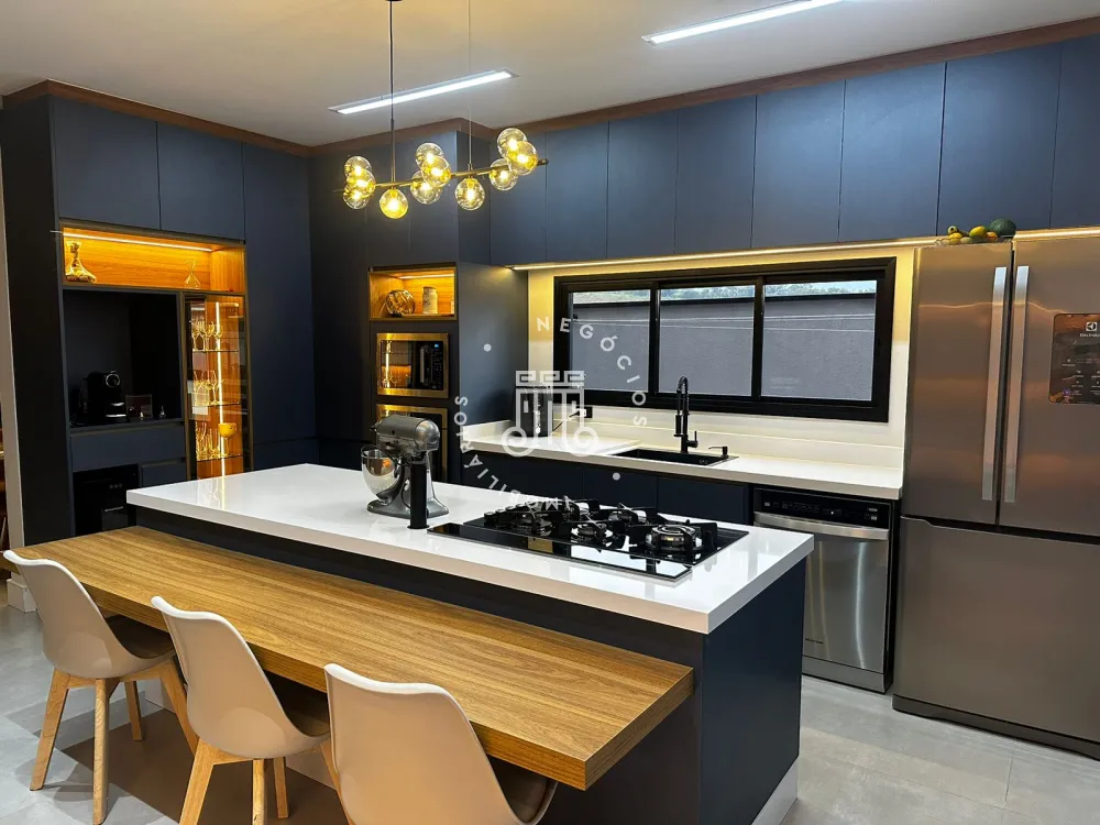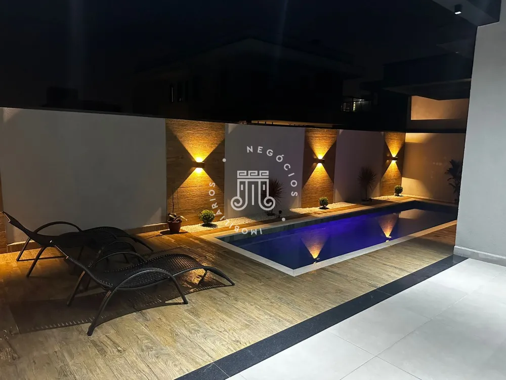 Composto por 3 suítes amplas sendo 1 com closet, escritório pronto para home office, casa toda integrada sendo a cozinha com sala de estar/jantar, lavabo e espaço Gourmet. Repleta de planejados e ar condicionado em todos os ambientes, sistema de iluminação, janelas e eletrônicos todos automatizados com comado de voz e aplicativo. Piscina aquecida e automatizada. Jardinagem pronta. Aquecimento solar pressurizado.