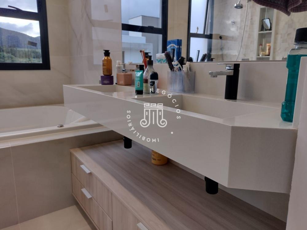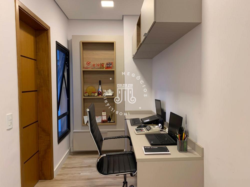 Com 345m² de área terreno e 270m² de área construída, composto por 3 suítes com varanda, sendo 2 com closet e uma delas máster com hidromassagem. No pavimento térreo há possibilidade de ser outro dormitório/escritório com banheiro social, sala 2 ambientes com pé direito duplo, cozinha integrada à área gourmet com ilha e coifa, despensa, área de serviço, vestiário, piscina aquecida e SPA, quintal com paisagismo, depósito e 4 vagas de garagem, sendo 2 cobertas. Imóvel com acabamento de alto padrão e água com aquecimento solar.