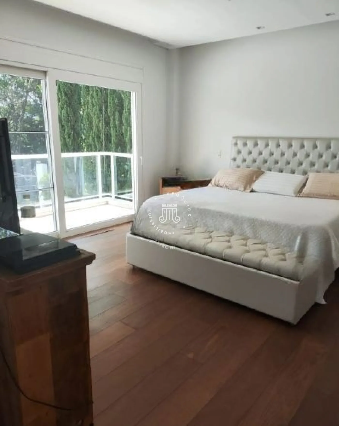 - Na parte térrea, composto por 1 suíte com ar-condicionado, sala de lareira, sala de estar, sala de TV, sala de jantar, sala de almoço, cozinha, despensa e lavanderia, dependências de empregada, área gourmet externa com churrasqueira, piscina com aquecimento solar e banheiro e depósito, casa de máquina separado com os botijões de gás e piscina. Fino acabamento, com luz de led em todas as dependências.
