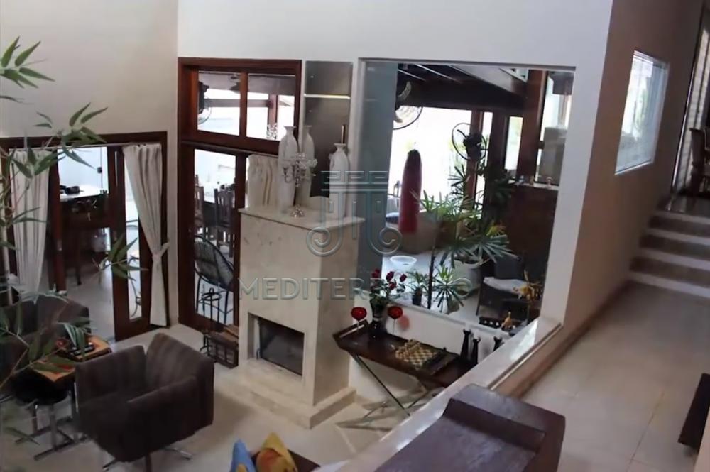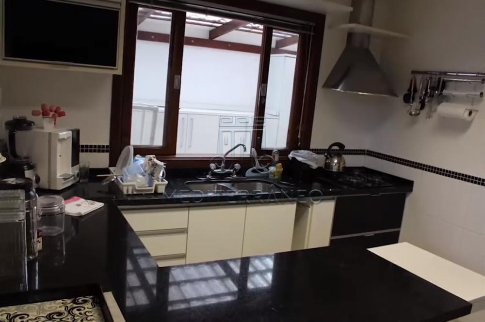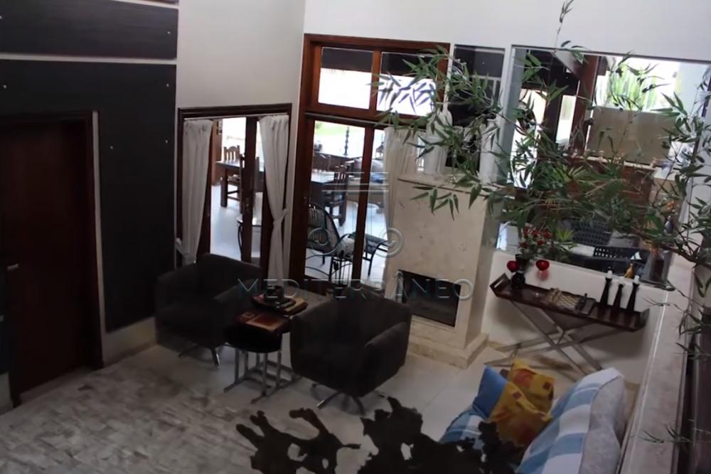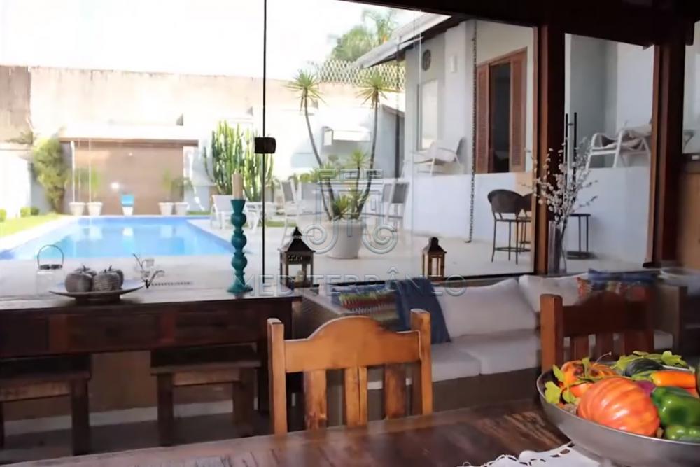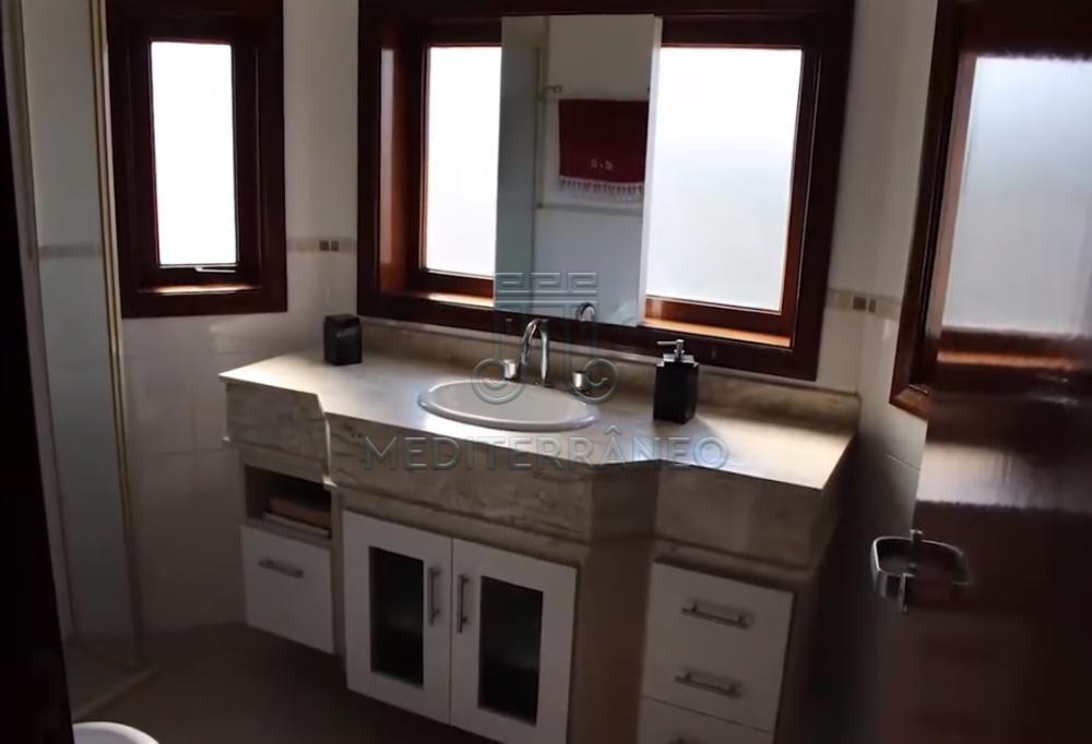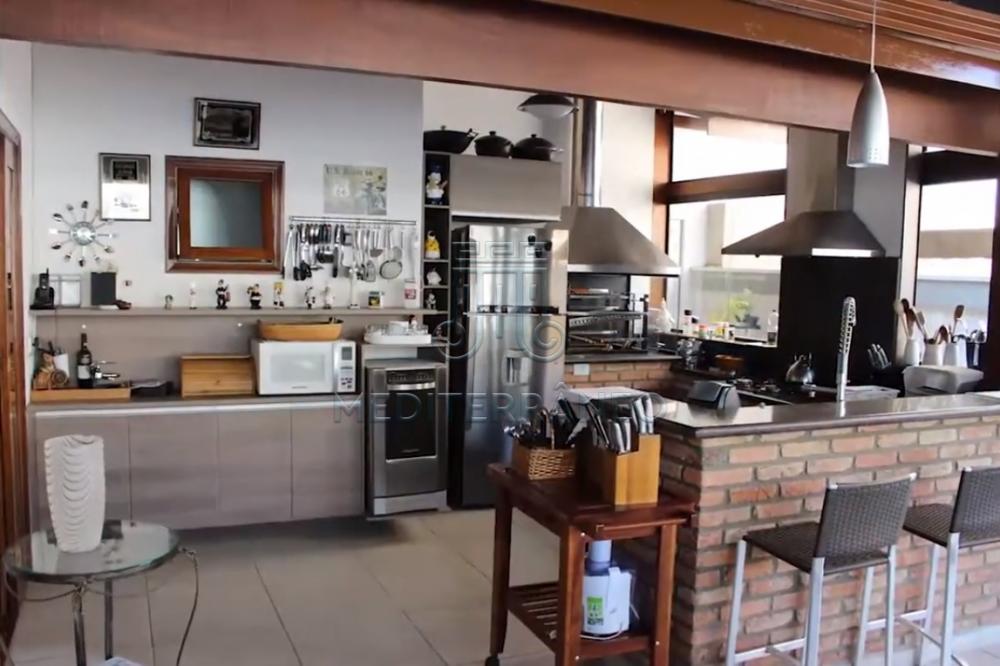 Com 3 suítes todos com armários embutidos, sendo 1 suíte máster com closet, hidro dupla, varanda e saída para piscina, sala de estar com lareira e sala de jantar em piso elevado, 2 cozinhas sendo uma dentro da casa planeada e completa com forno e a outra de frente para a piscina com forno e churrasqueira elétrica, podendo ser usada no dia a dia, área de serviços com armários e amplos banheiro social, todos os banheiros da casa contam com box de vidro e gabinete, lavabo, escritório em andar superior com banheiro social exclusivo, piscina iluminada e lindo paisagismo, 4 vagas de garagem coberta.