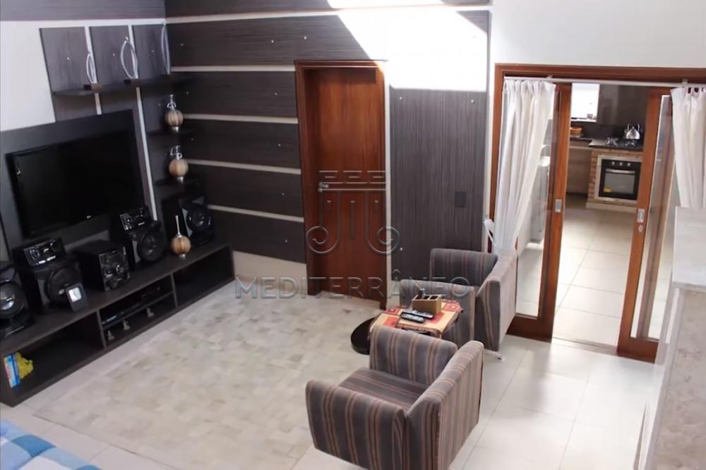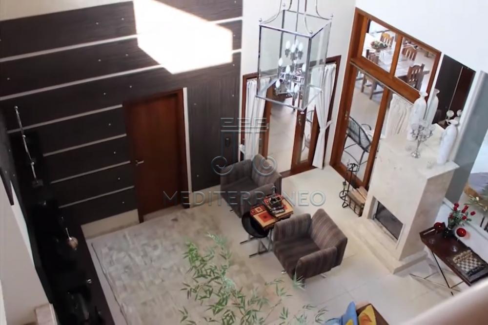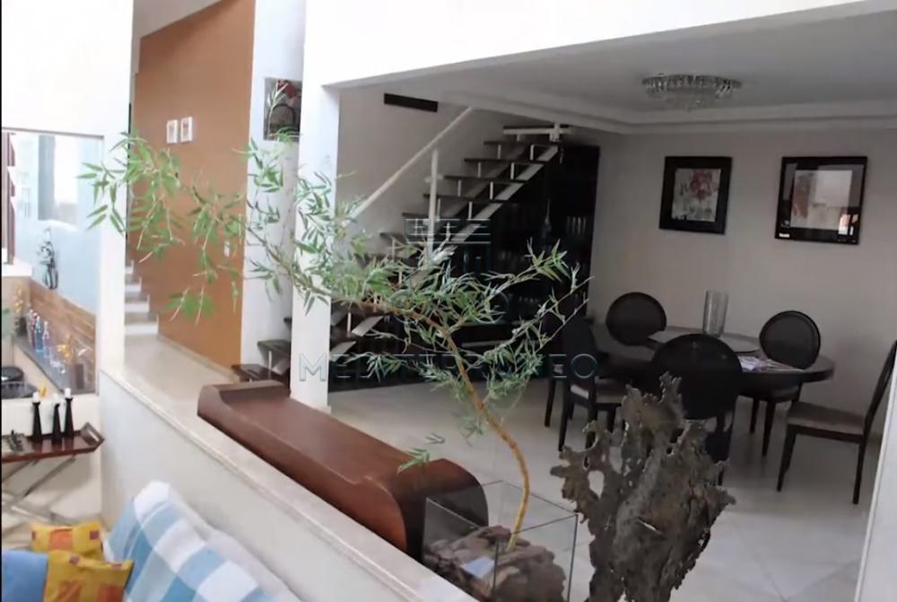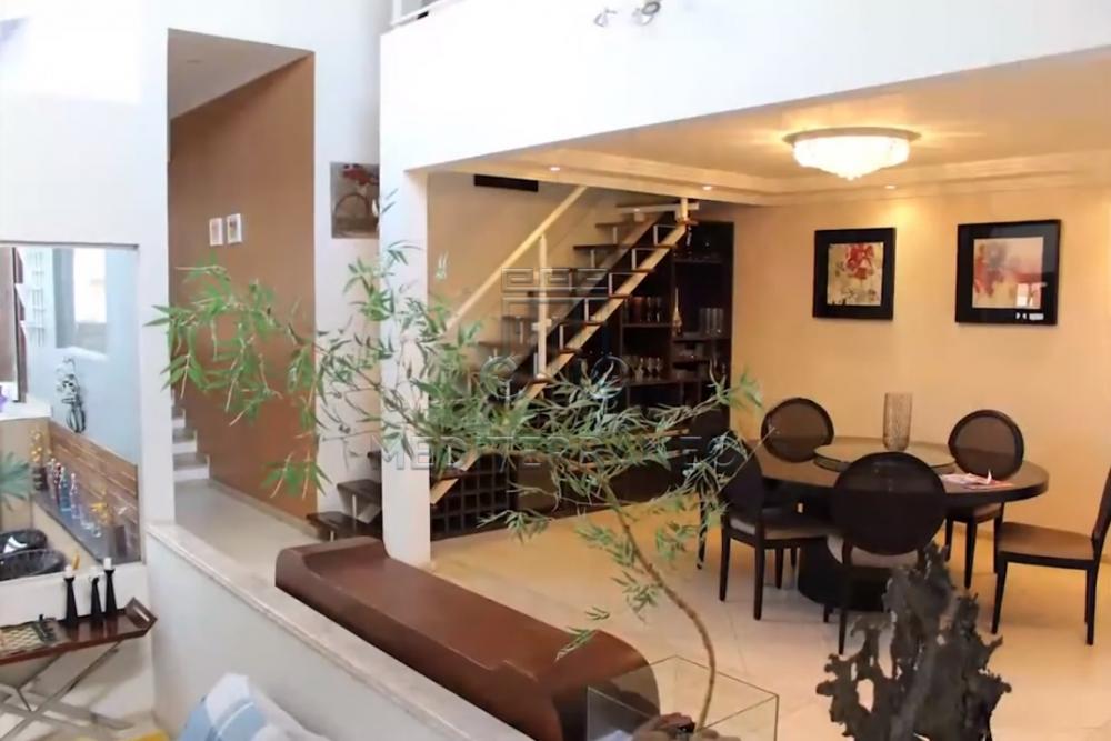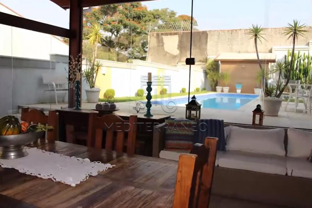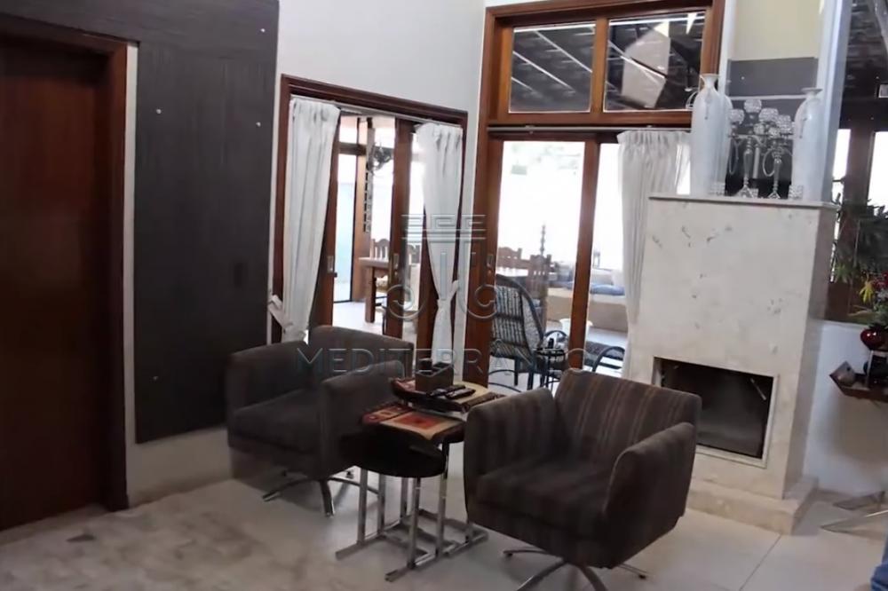 Com 3 suítes todos com armários embutidos, sendo 1 suíte máster com closet, hidro dupla, varanda e saída para piscina, sala de estar com lareira e sala de jantar em piso elevado, 2 cozinhas sendo uma dentro da casa planeada e completa com forno e a outra de frente para a piscina com forno e churrasqueira elétrica, podendo ser usada no dia a dia, área de serviços com armários e amplos banheiro social, todos os banheiros da casa contam com box de vidro e gabinete, lavabo, escritório em andar superior com banheiro social exclusivo, piscina iluminada e lindo paisagismo, 4 vagas de garagem coberta.