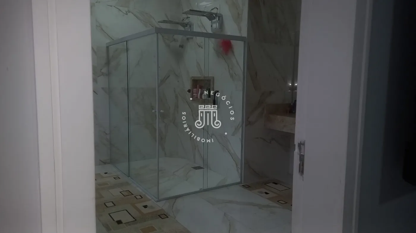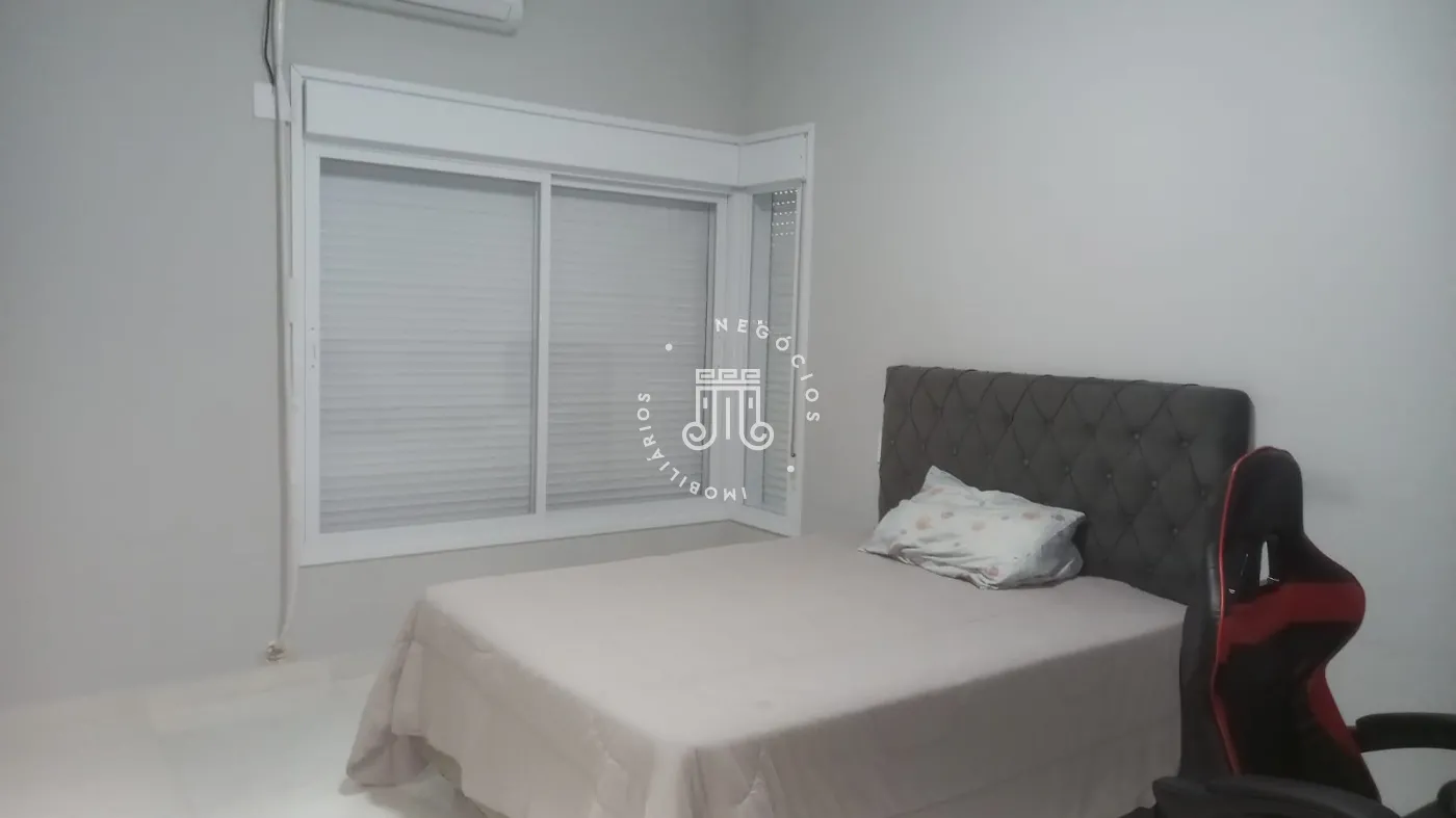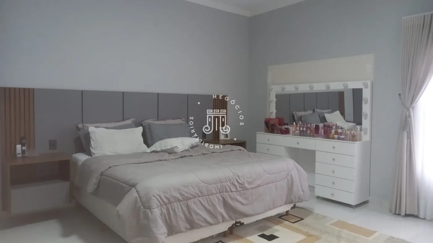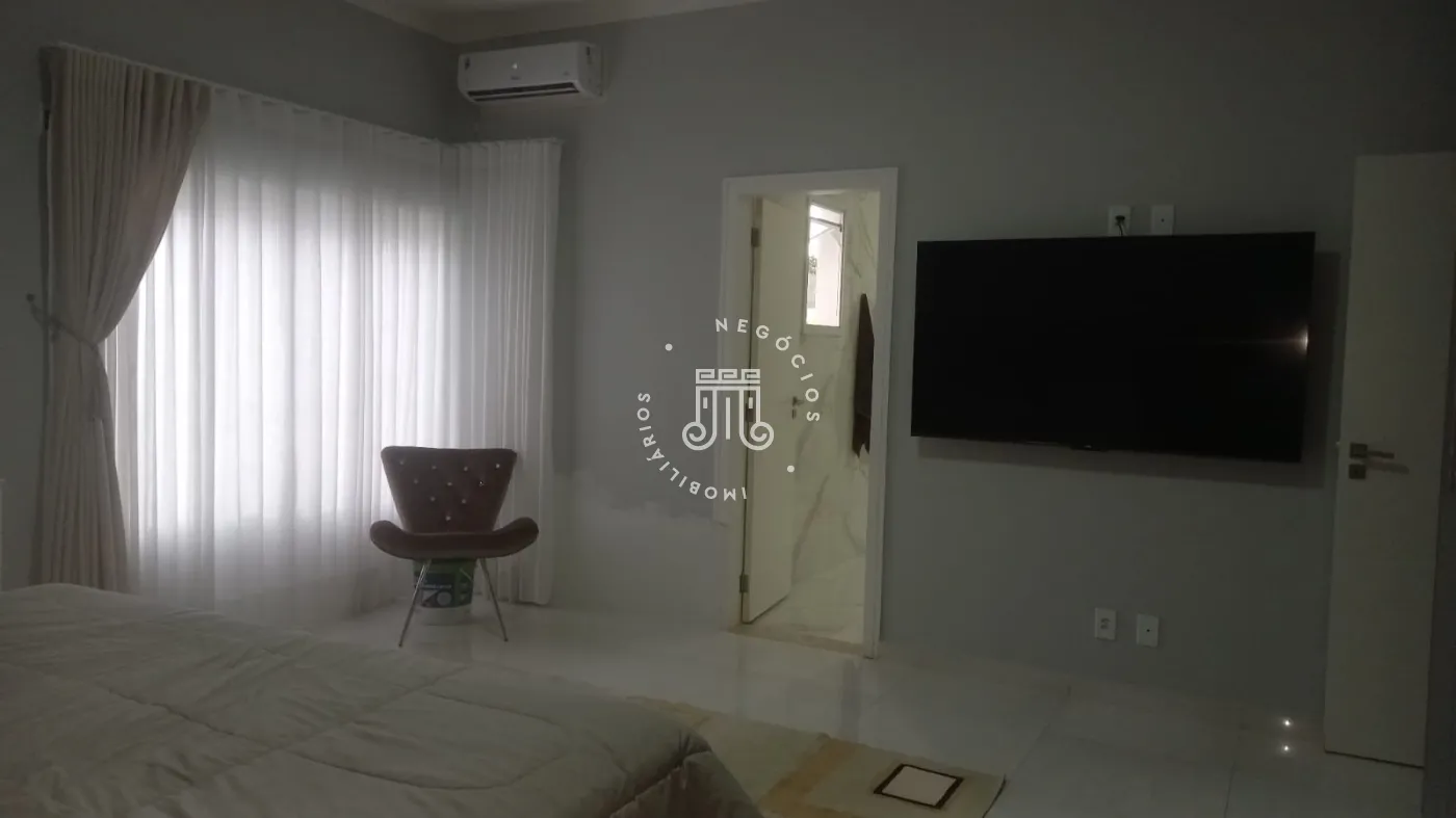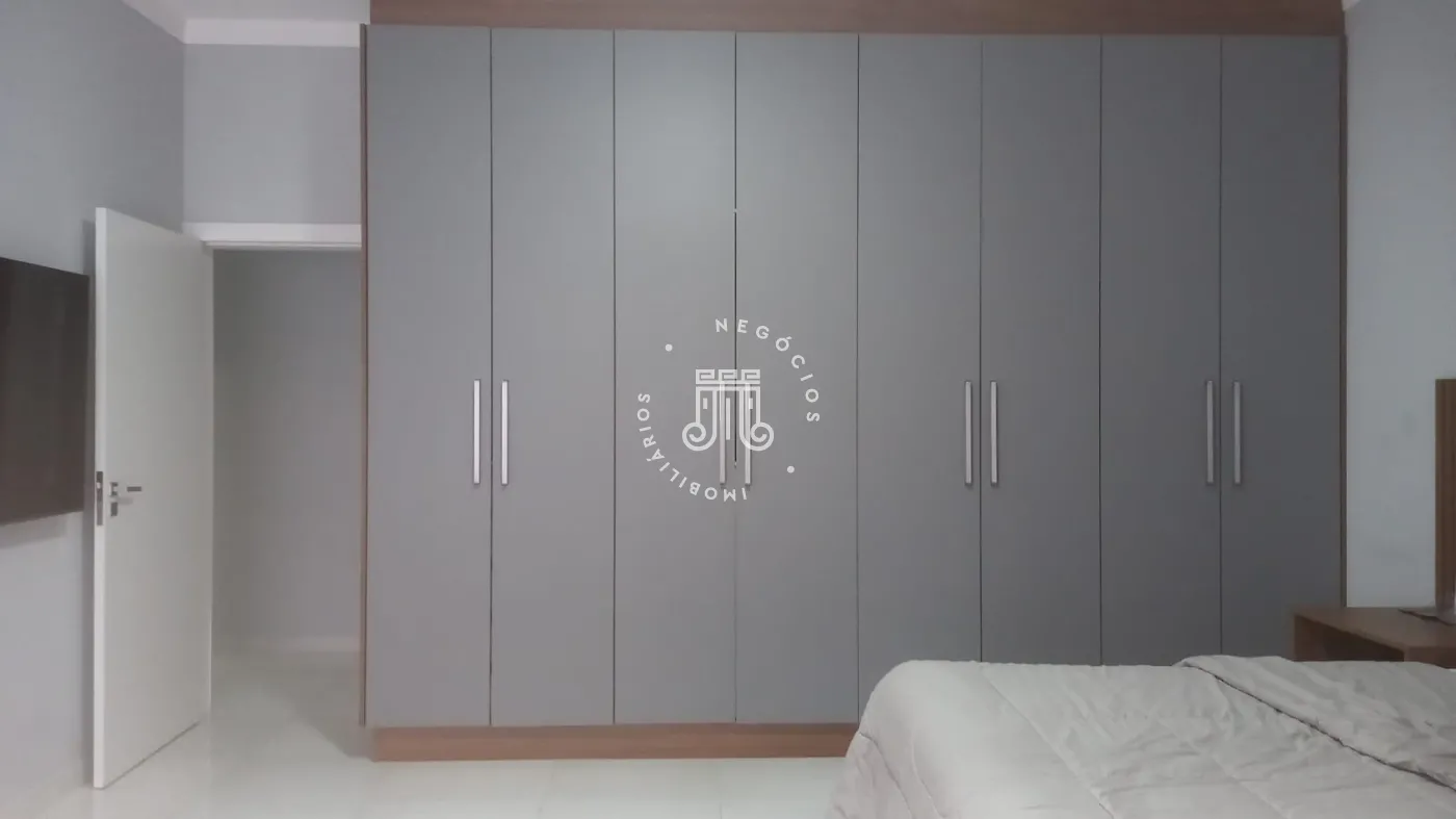 Casa com 4 dormitórios, todos suítes, totalizando 6 banheiros. O imóvel conta com sala, cozinha, despensa e área de serviço. Os dormitórios possuem armários embutidos, sendo um deles com closet, além de instalação de ar-condicionado nos quartos. Na área externa há piscina e espaço com churrasqueira. A casa dispõe ainda de 4 vagas de garagem.