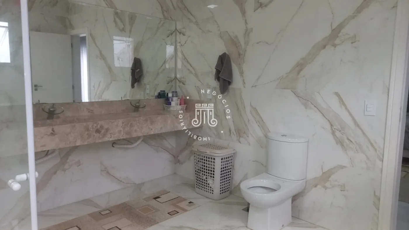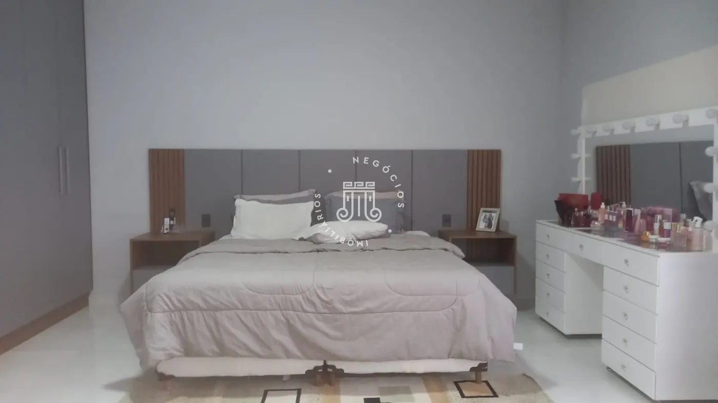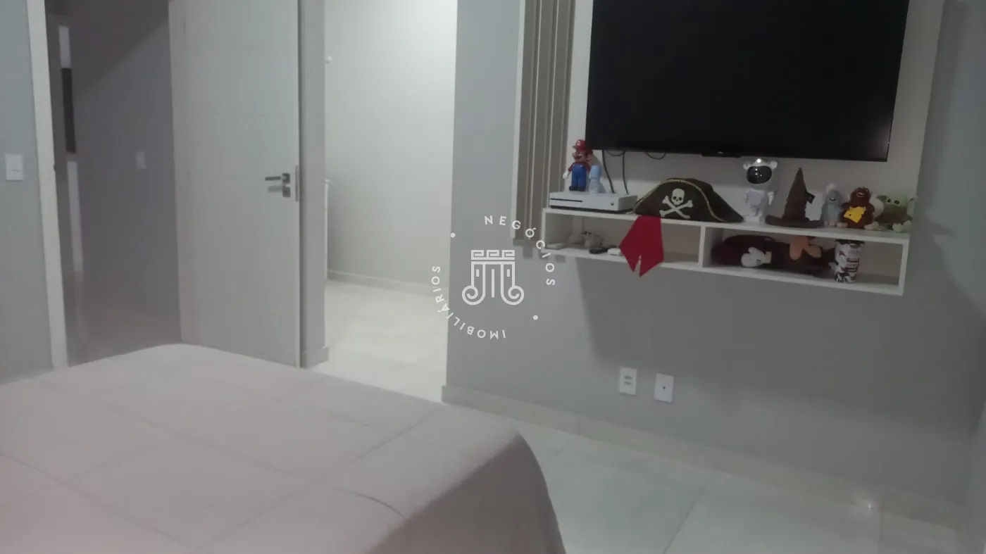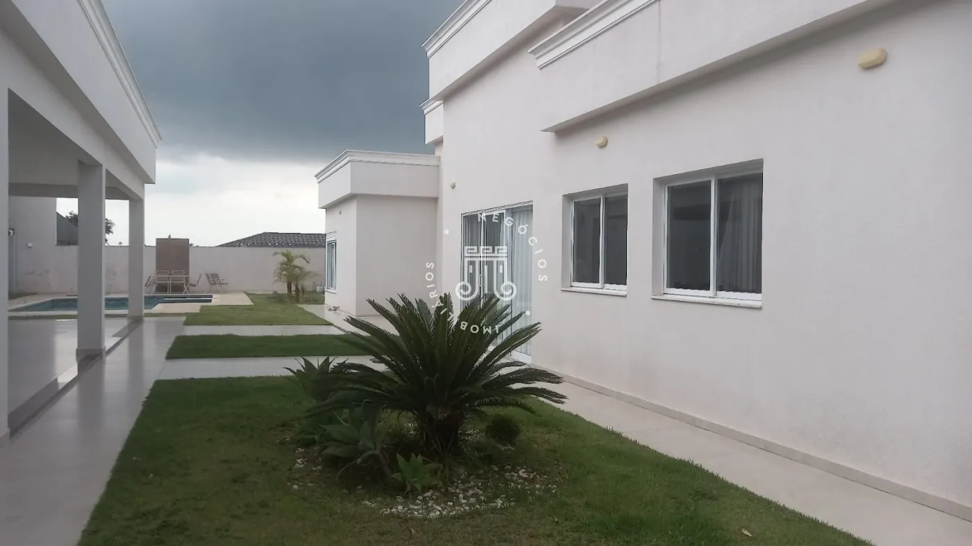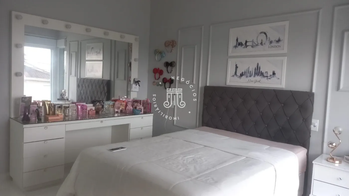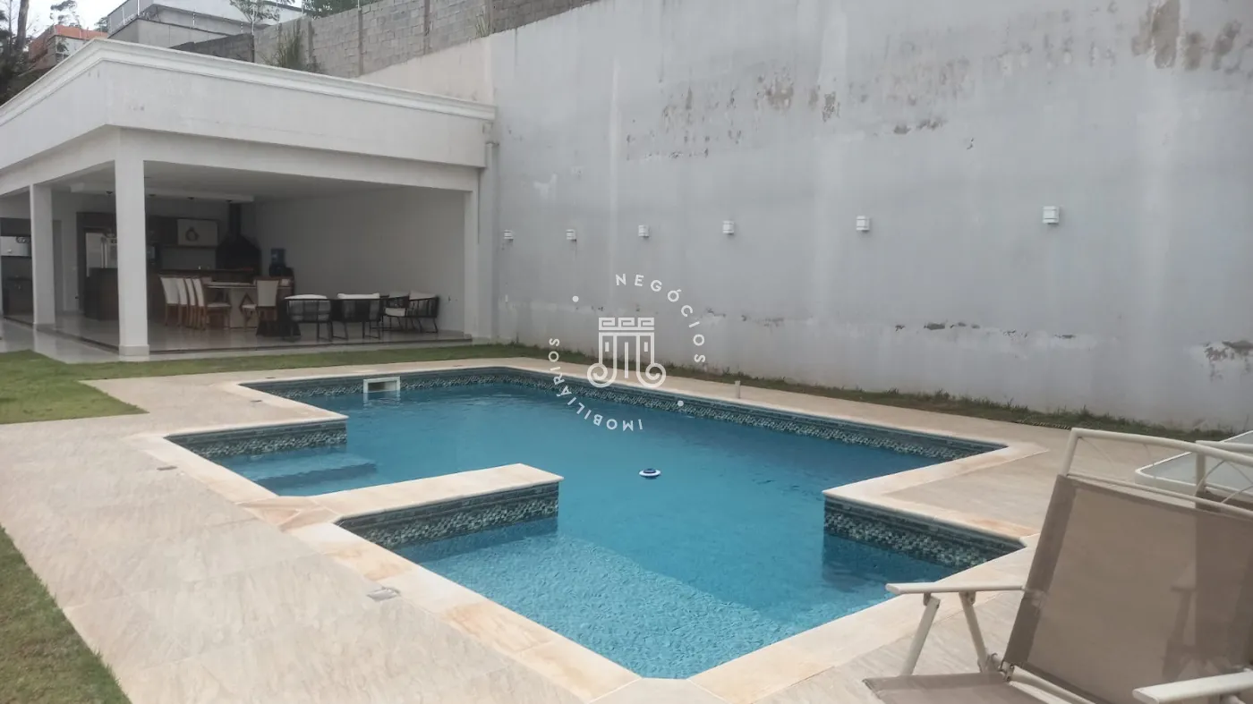 Casa com 4 dormitórios, todos suítes, totalizando 6 banheiros. O imóvel conta com sala, cozinha, despensa e área de serviço. Os dormitórios possuem armários embutidos, sendo um deles com closet, além de instalação de ar-condicionado nos quartos. Na área externa há piscina e espaço com churrasqueira. A casa dispõe ainda de 4 vagas de garagem.