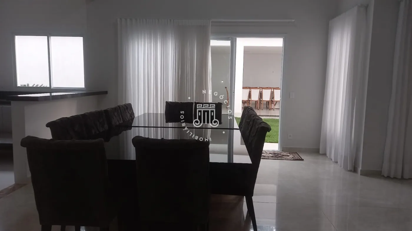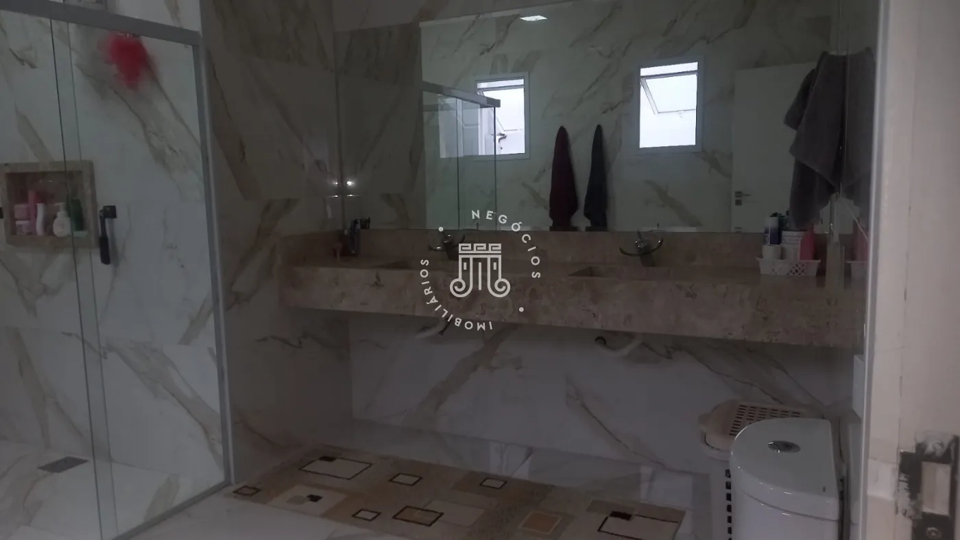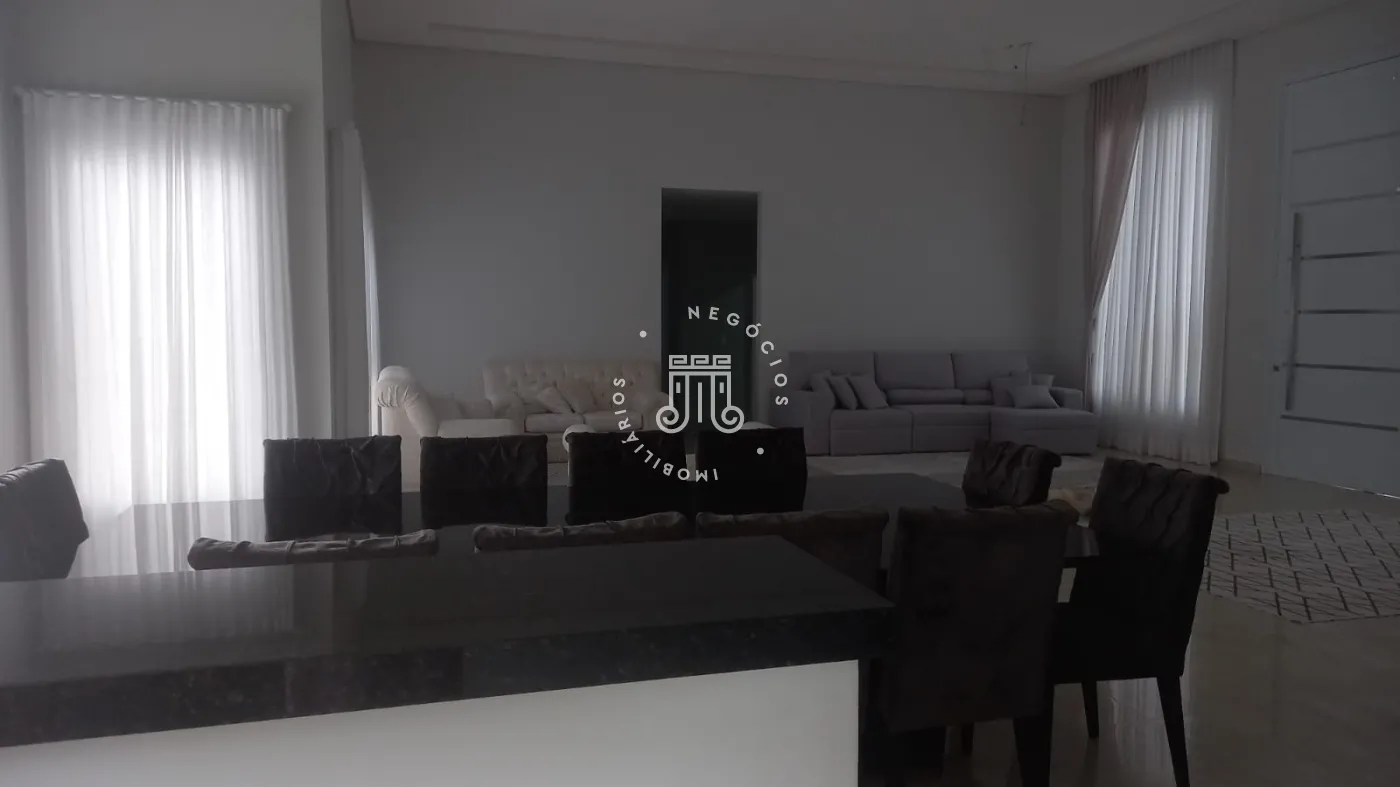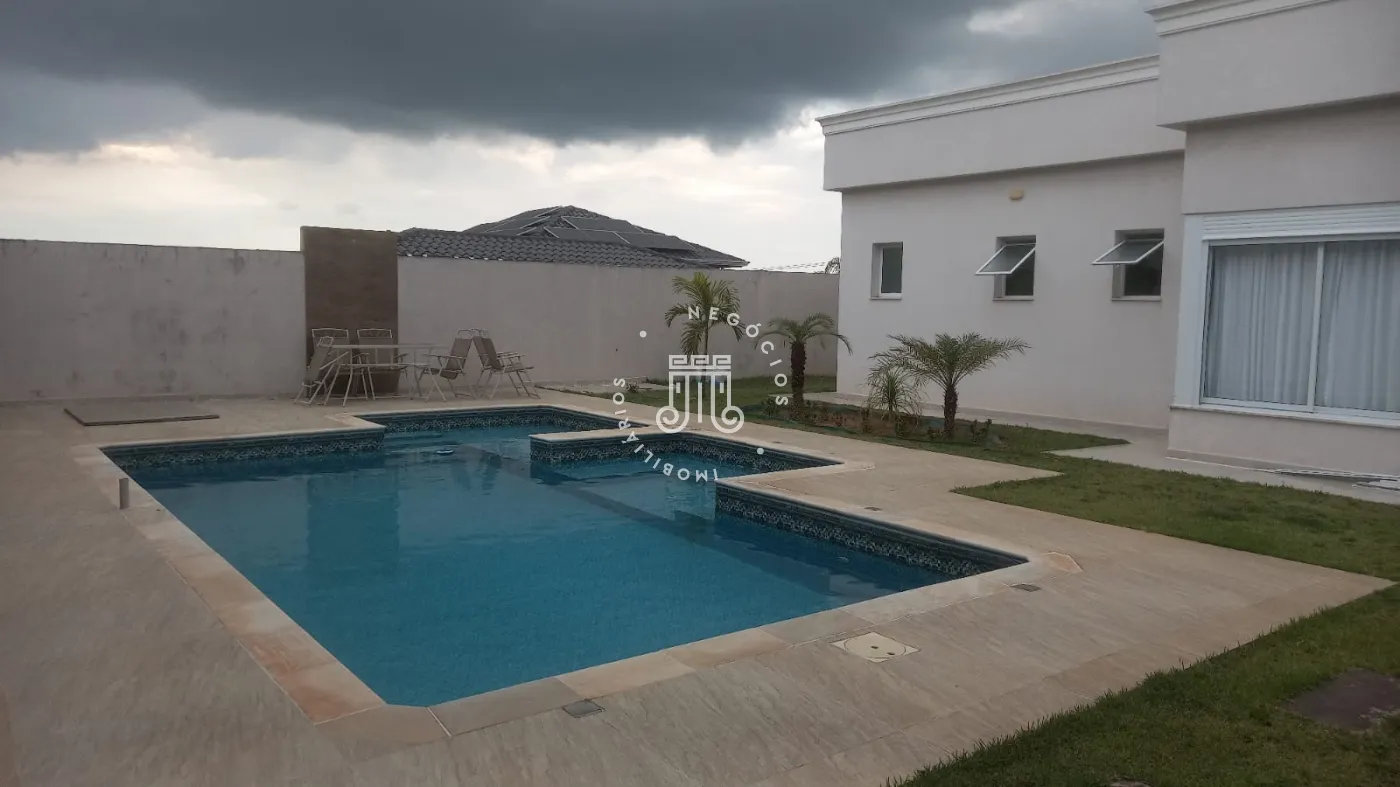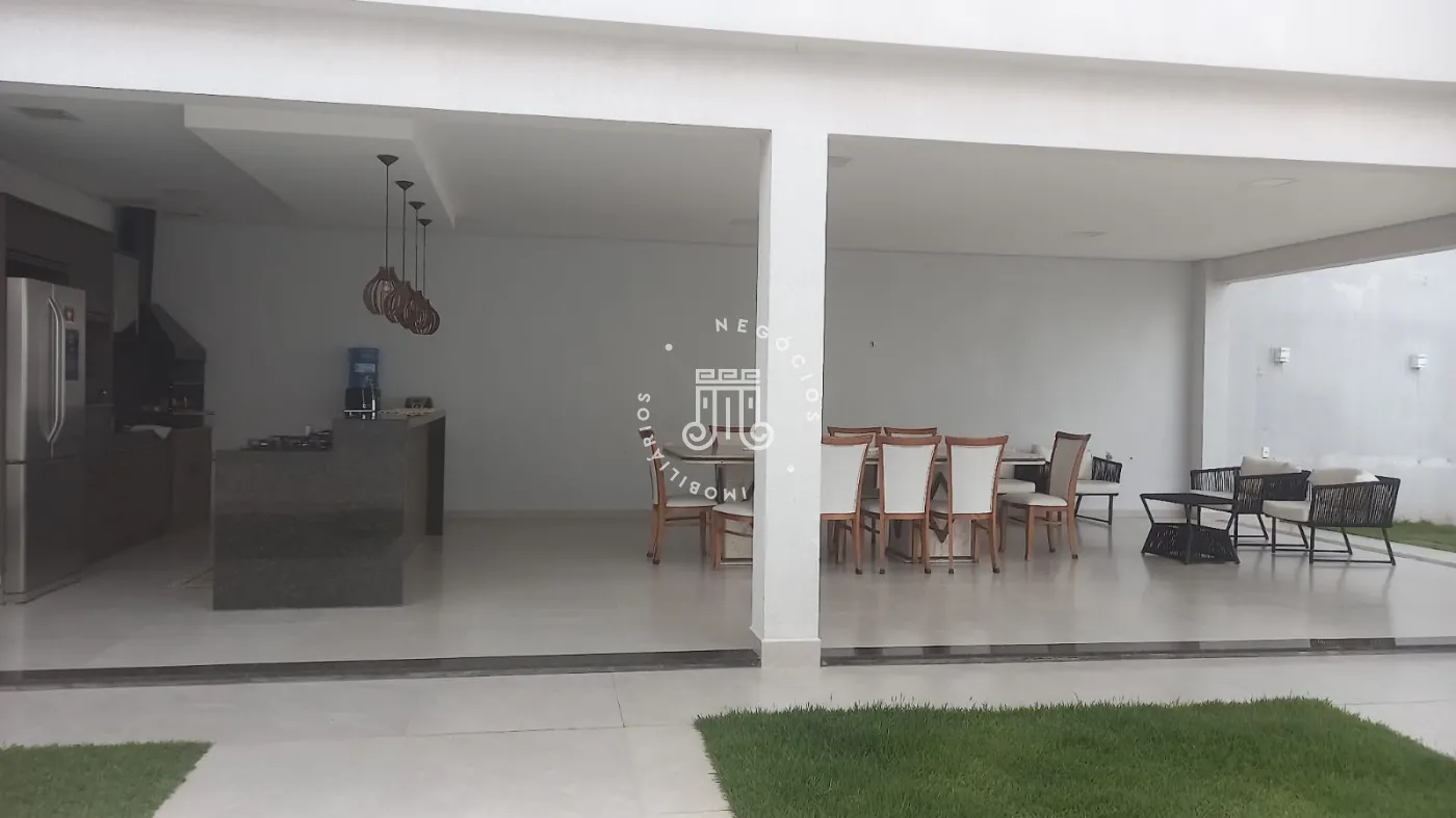Casa com 4 dormitórios, todos suítes, totalizando 6 banheiros. O imóvel conta com sala, cozinha, despensa e área de serviço. Os dormitórios possuem armários embutidos, sendo um deles com closet, além de instalação de ar-condicionado nos quartos. Na área externa há piscina e espaço com churrasqueira. A casa dispõe ainda de 4 vagas de garagem.