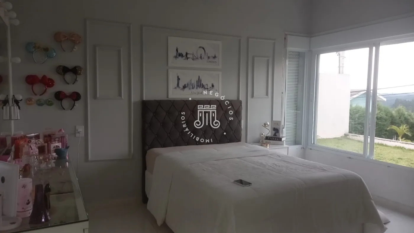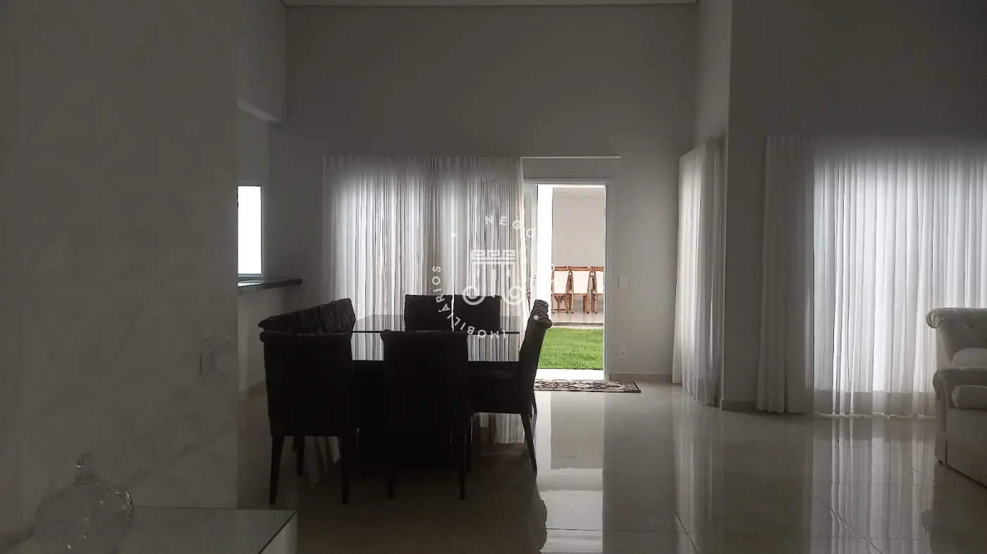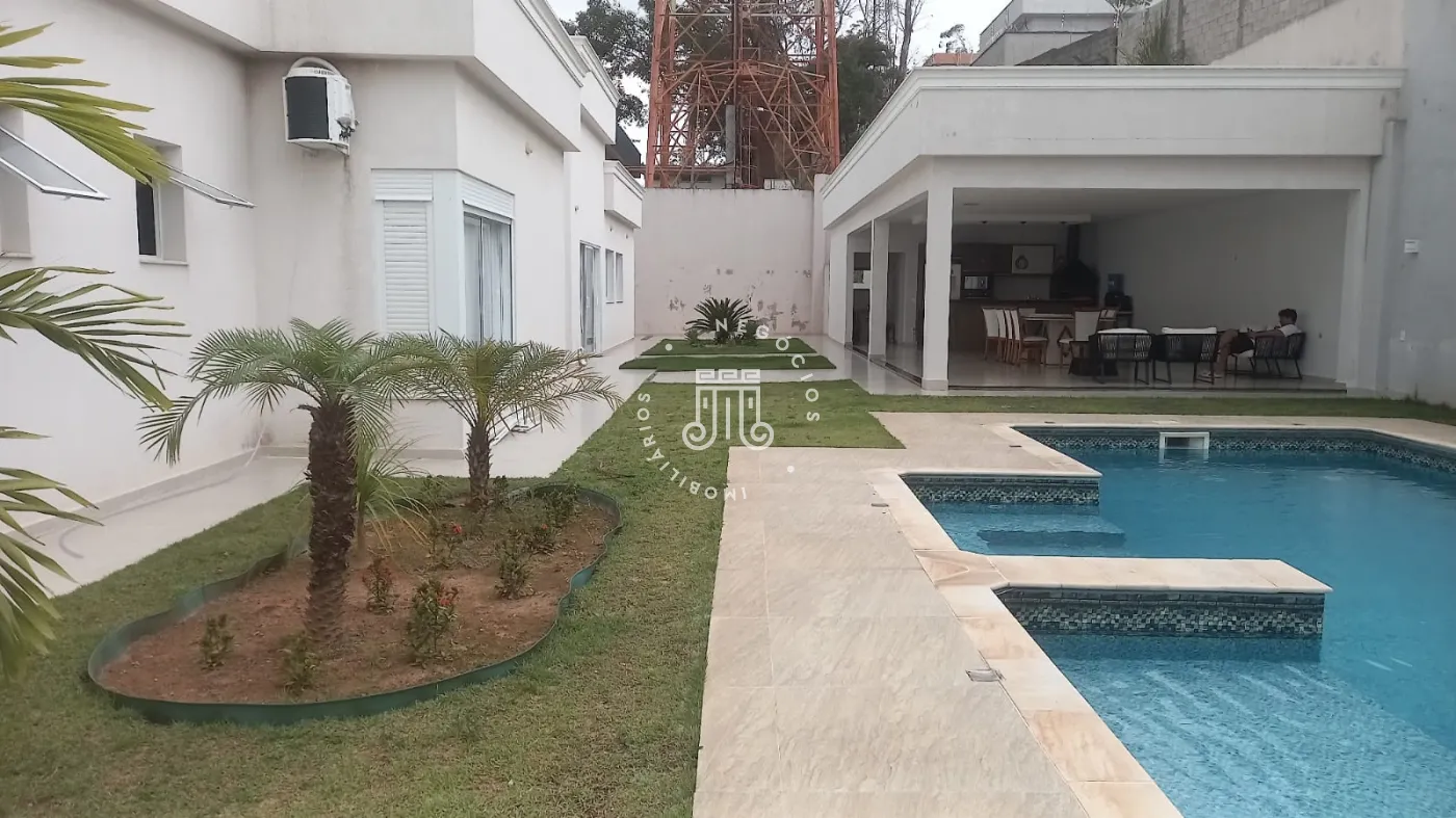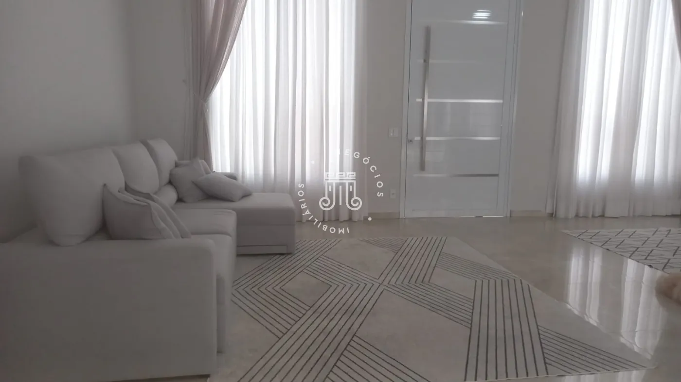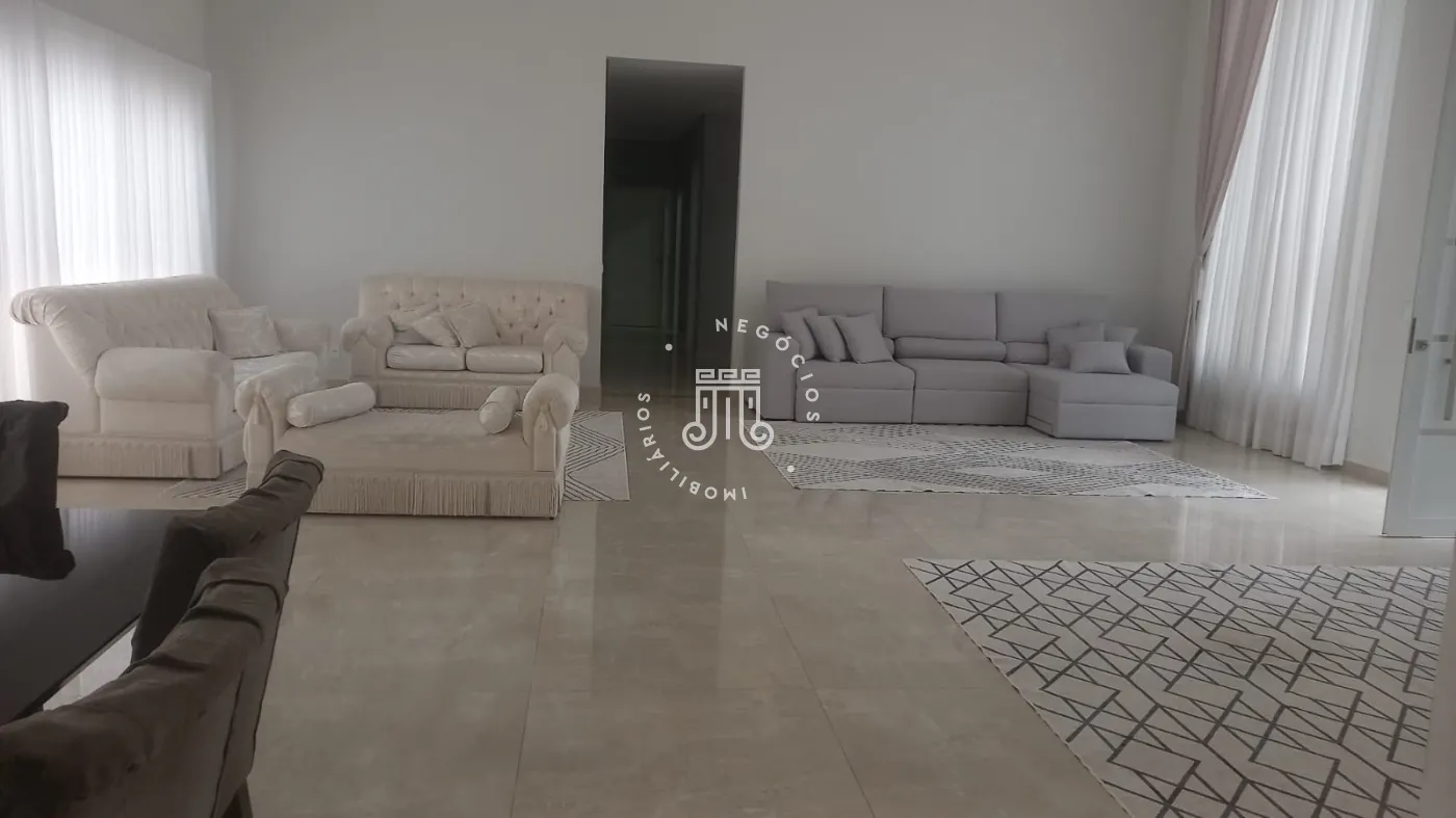 Casa com 4 dormitórios, todos suítes, totalizando 6 banheiros. O imóvel conta com sala, cozinha, despensa e área de serviço. Os dormitórios possuem armários embutidos, sendo um deles com closet, além de instalação de ar-condicionado nos quartos. Na área externa há piscina e espaço com churrasqueira. A casa dispõe ainda de 4 vagas de garagem.