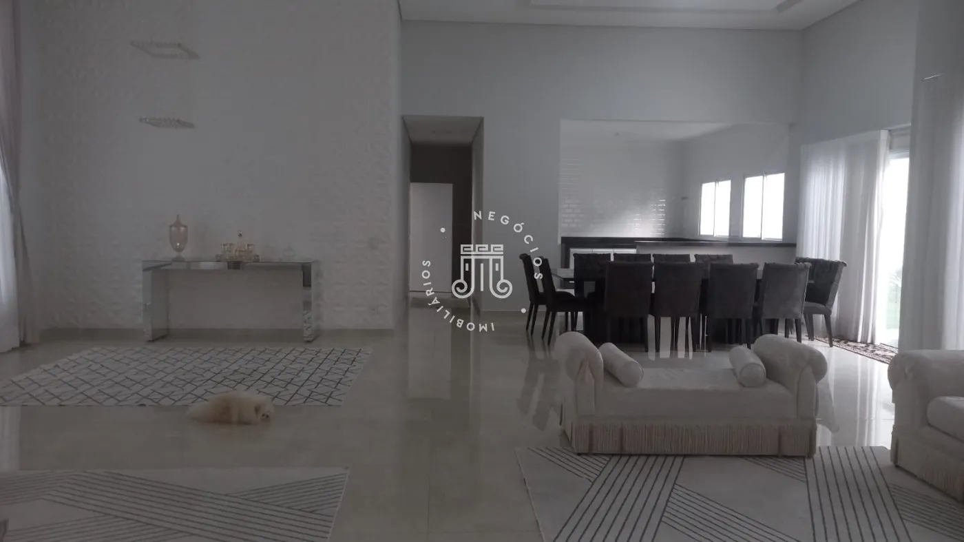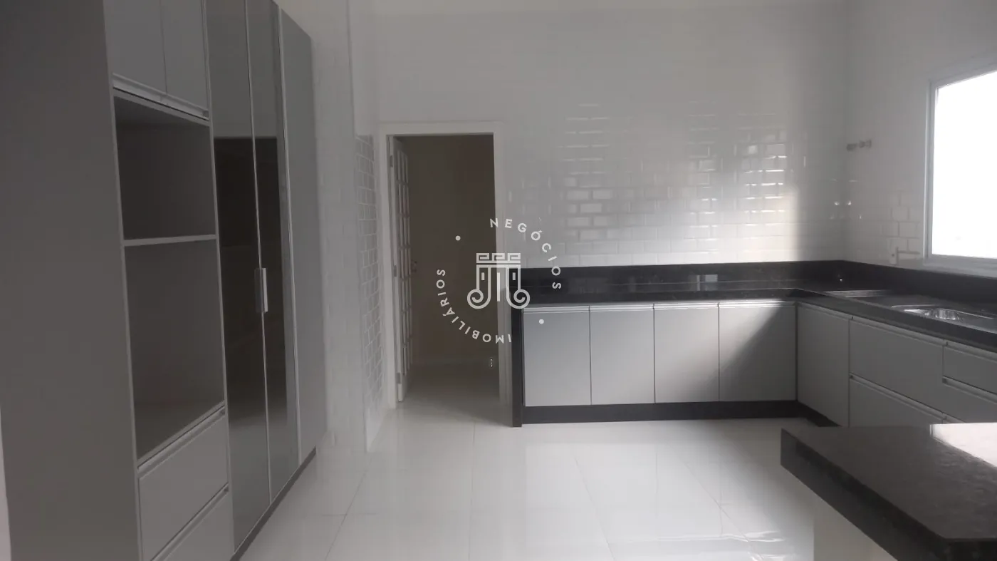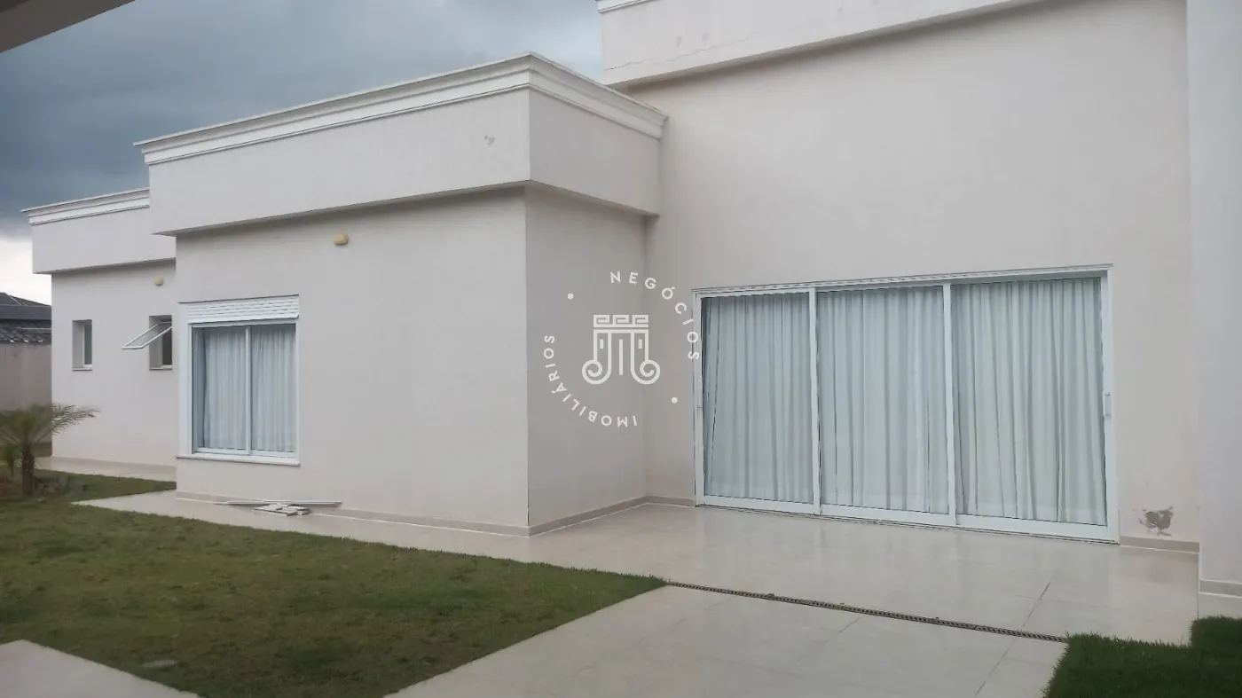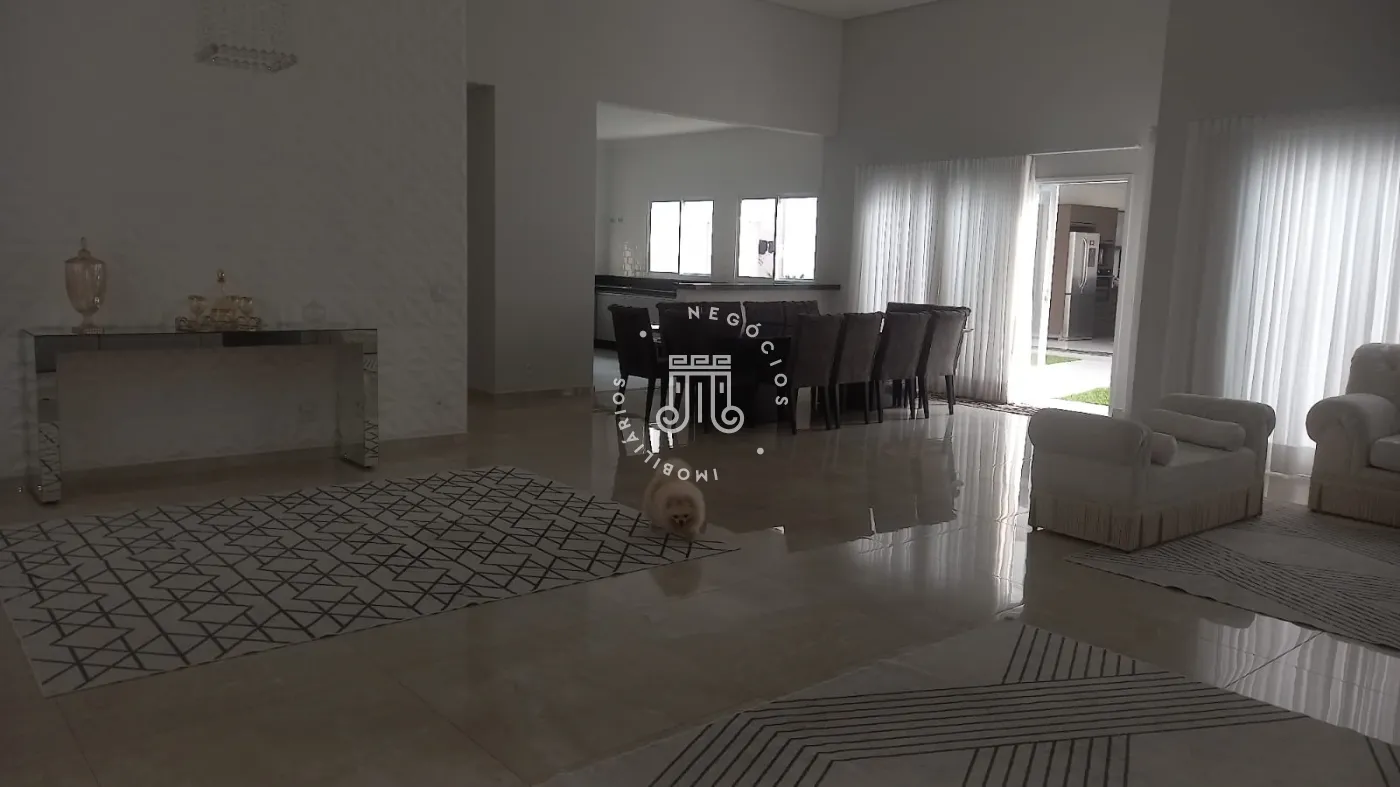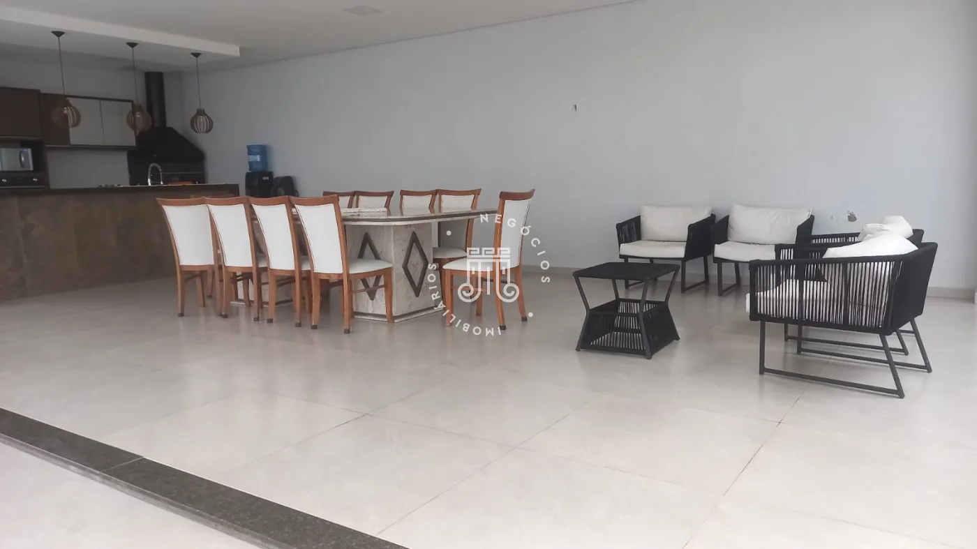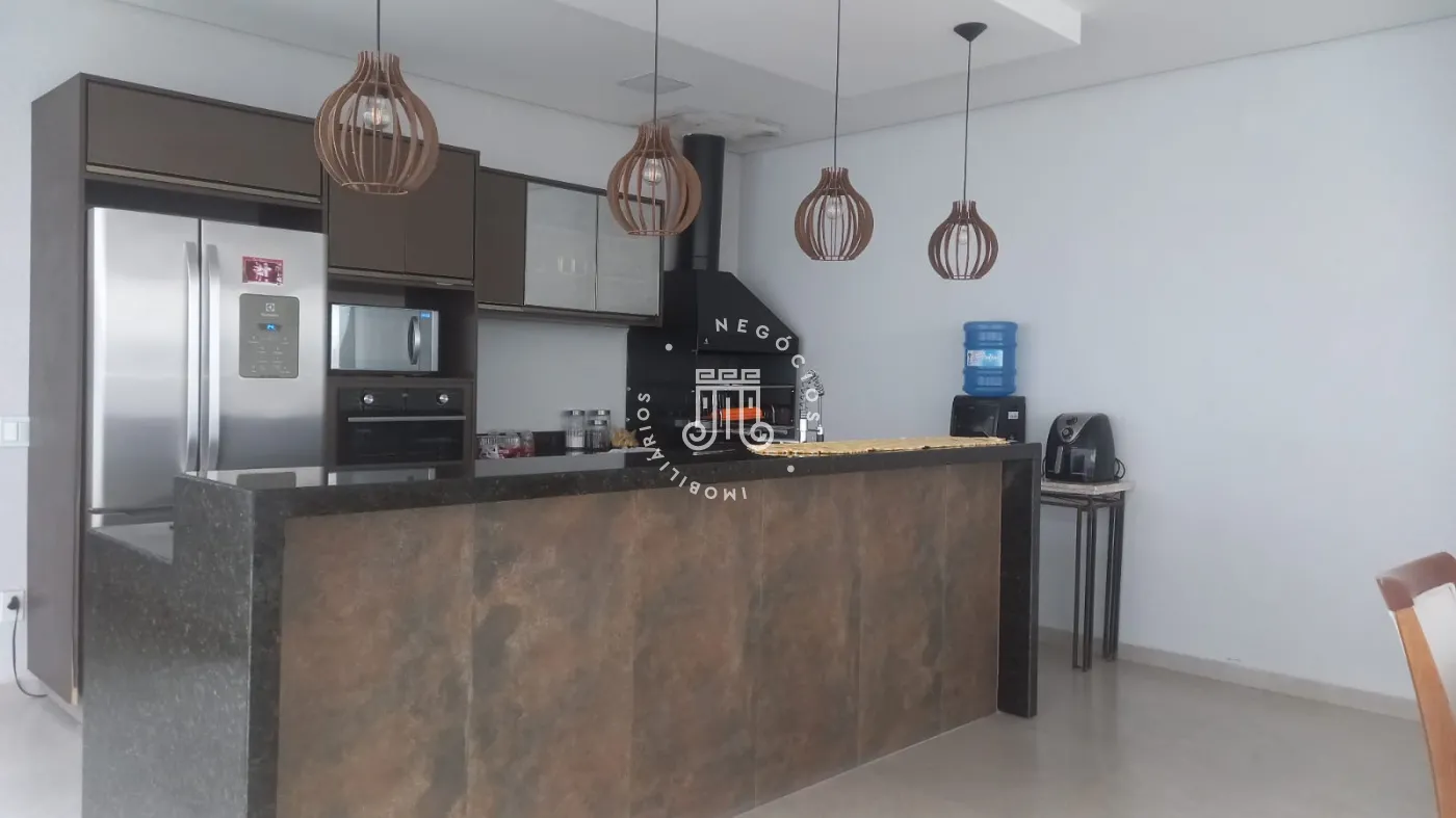 Casa com 4 dormitórios, todos suítes, totalizando 6 banheiros. O imóvel conta com sala, cozinha, despensa e área de serviço. Os dormitórios possuem armários embutidos, sendo um deles com closet, além de instalação de ar-condicionado nos quartos. Na área externa há piscina e espaço com churrasqueira. A casa dispõe ainda de 4 vagas de garagem.