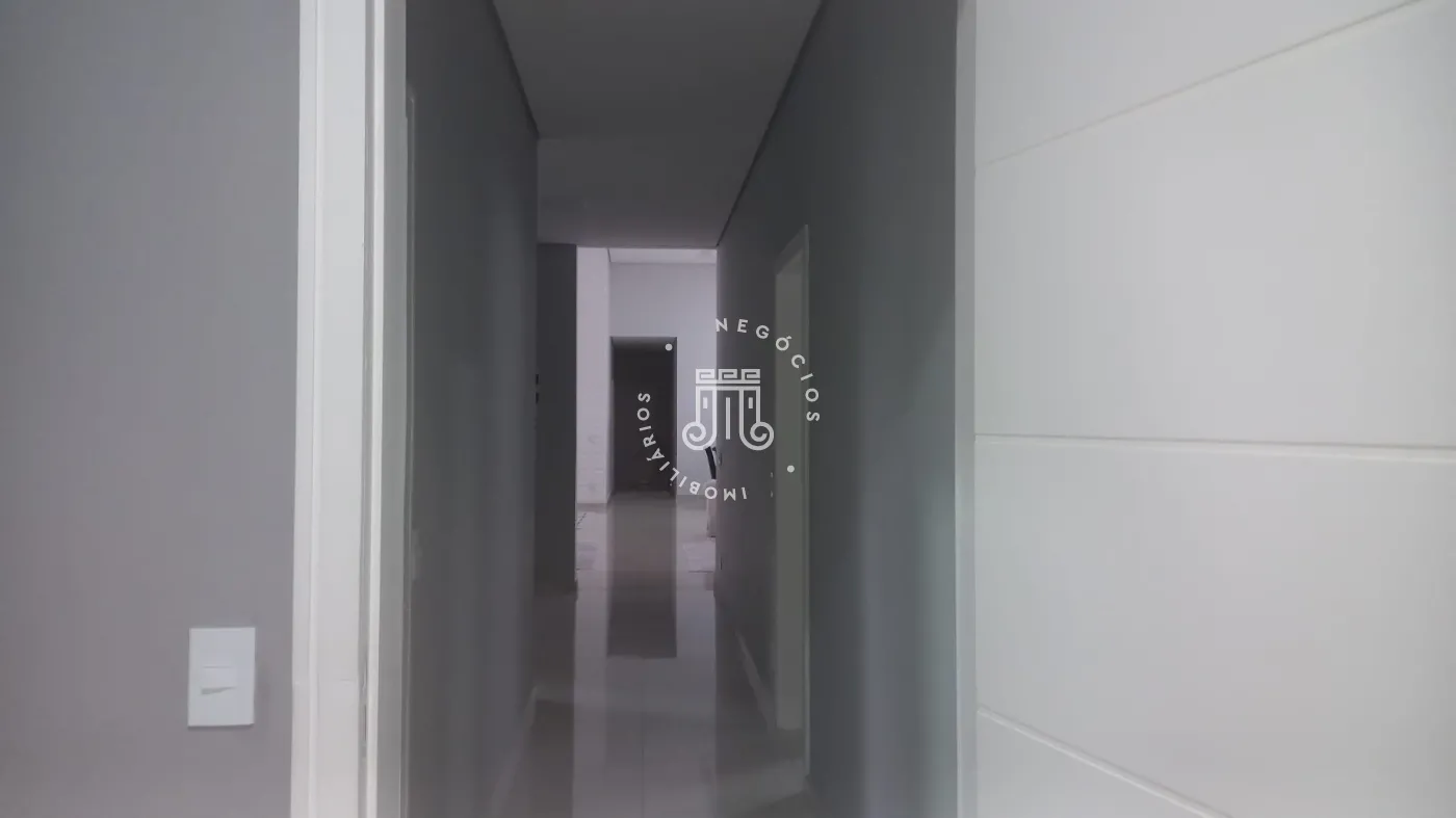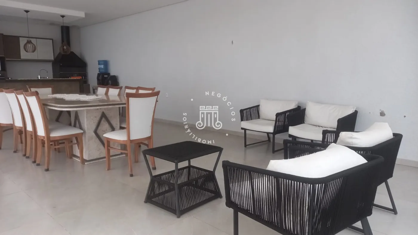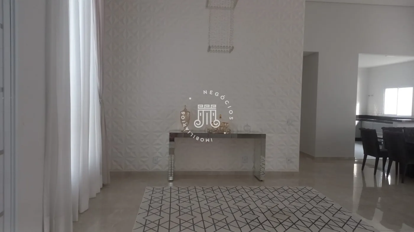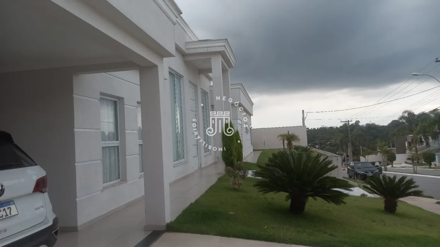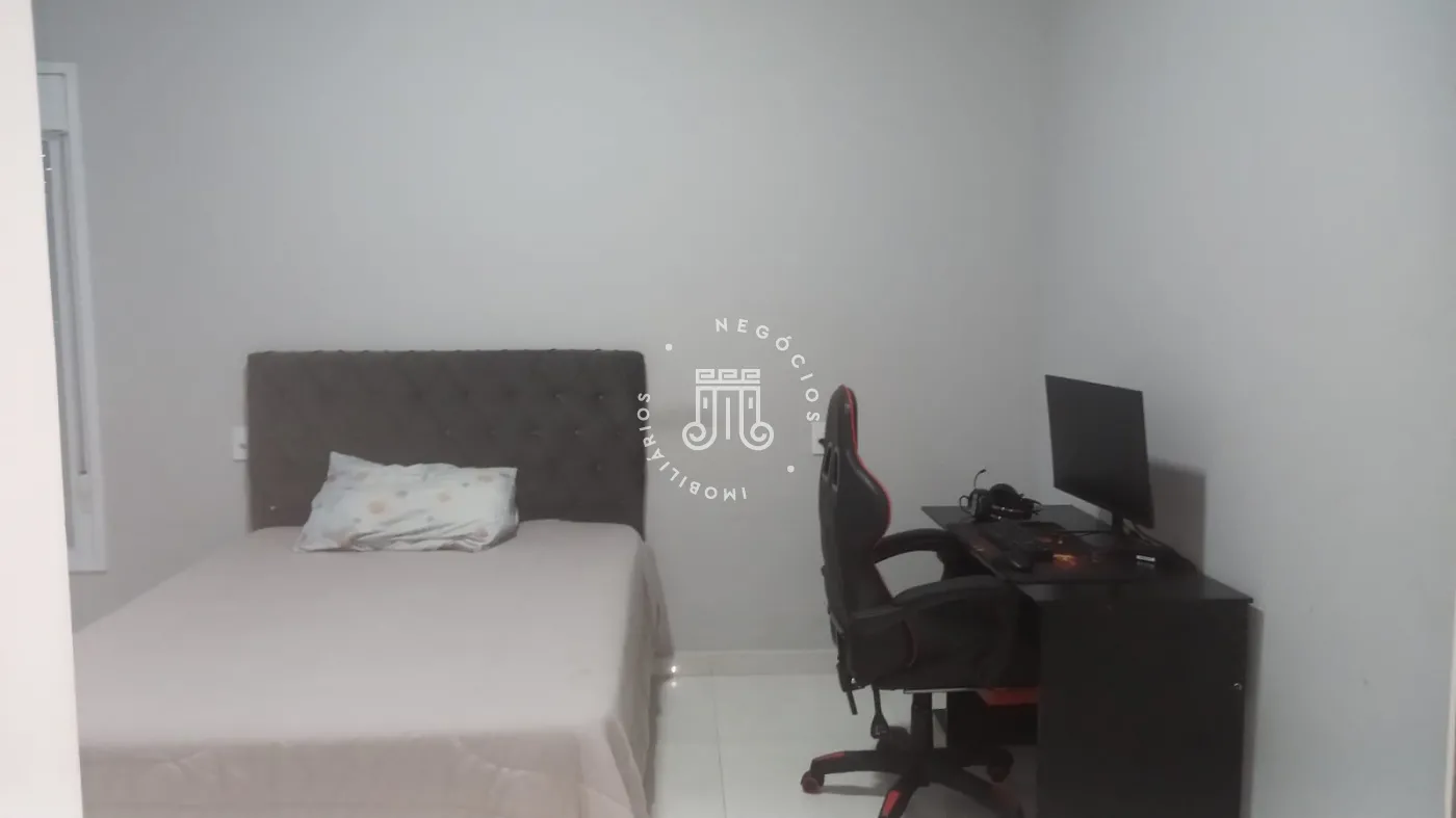 Casa com 4 dormitórios, todos suítes, totalizando 6 banheiros. O imóvel conta com sala, cozinha, despensa e área de serviço. Os dormitórios possuem armários embutidos, sendo um deles com closet, além de instalação de ar-condicionado nos quartos. Na área externa há piscina e espaço com churrasqueira. A casa dispõe ainda de 4 vagas de garagem.