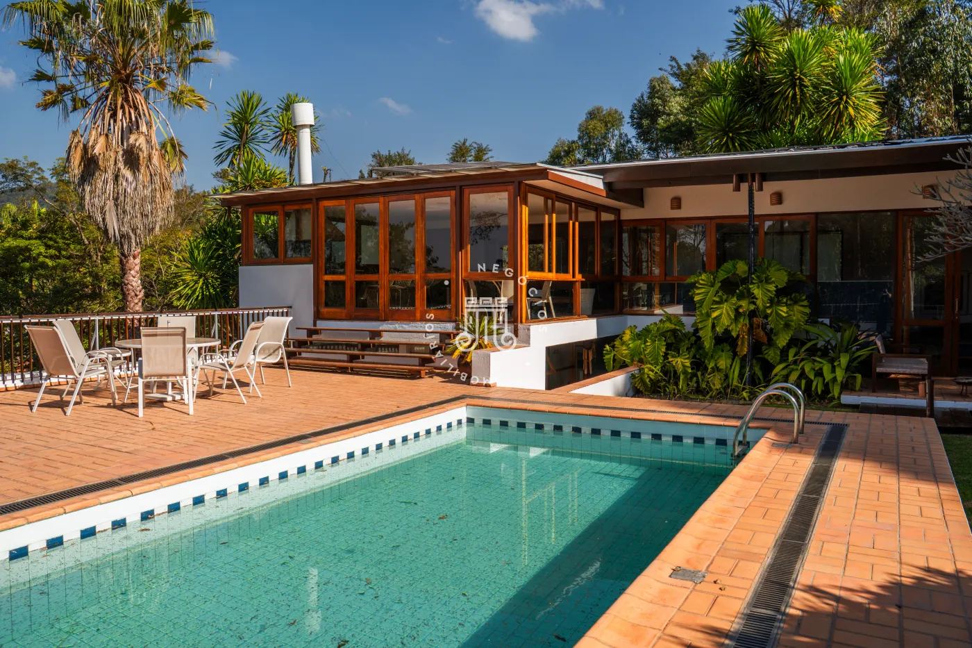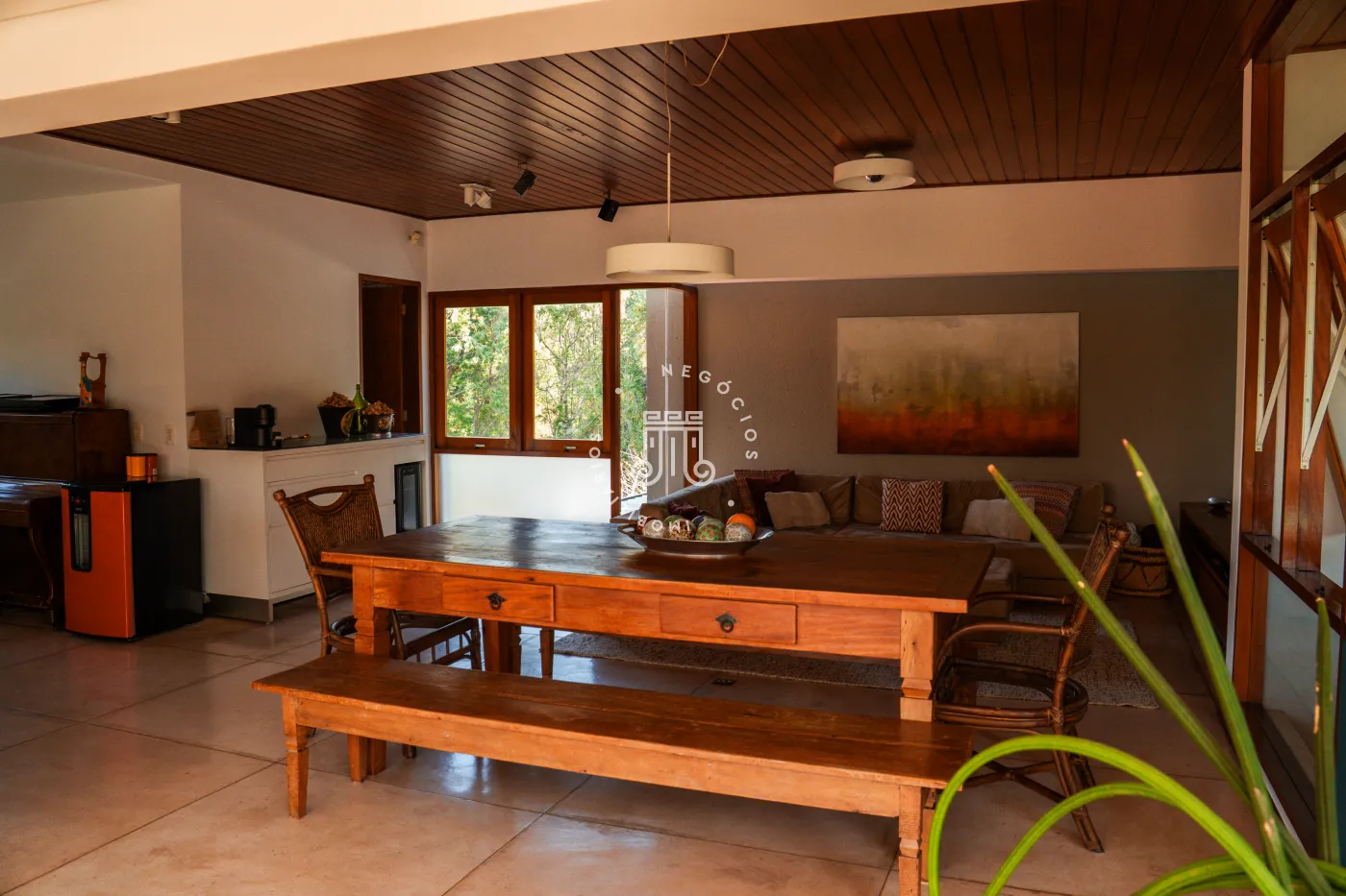Conta com 3 suítes, escritório, copa e cozinha, área de serviço ampla, sala de TV, sala de jantar e sala de visita, área gourmet, piscina e quintal.