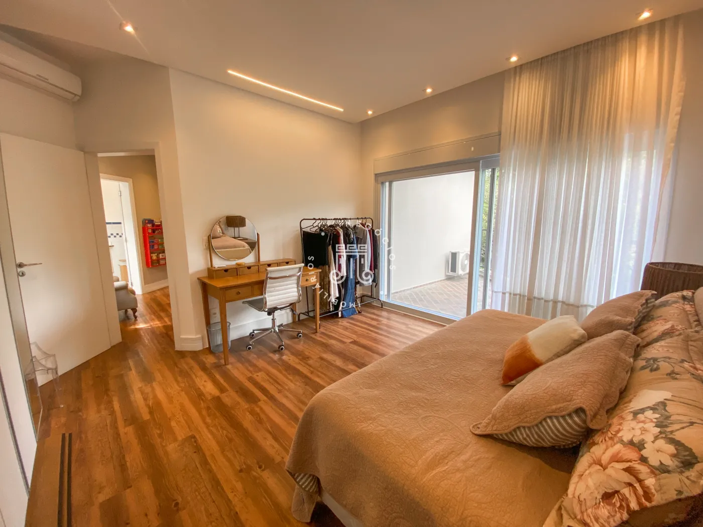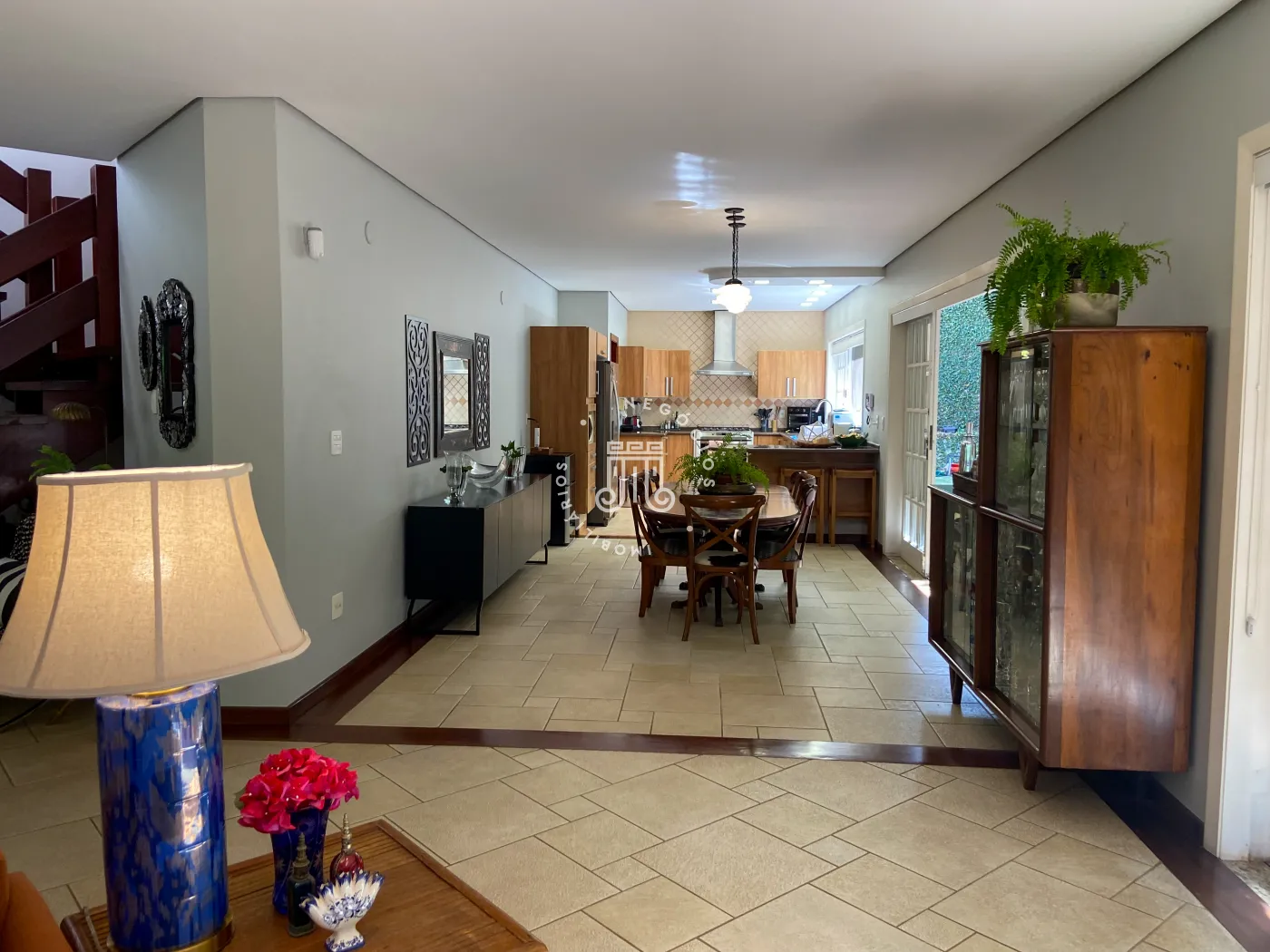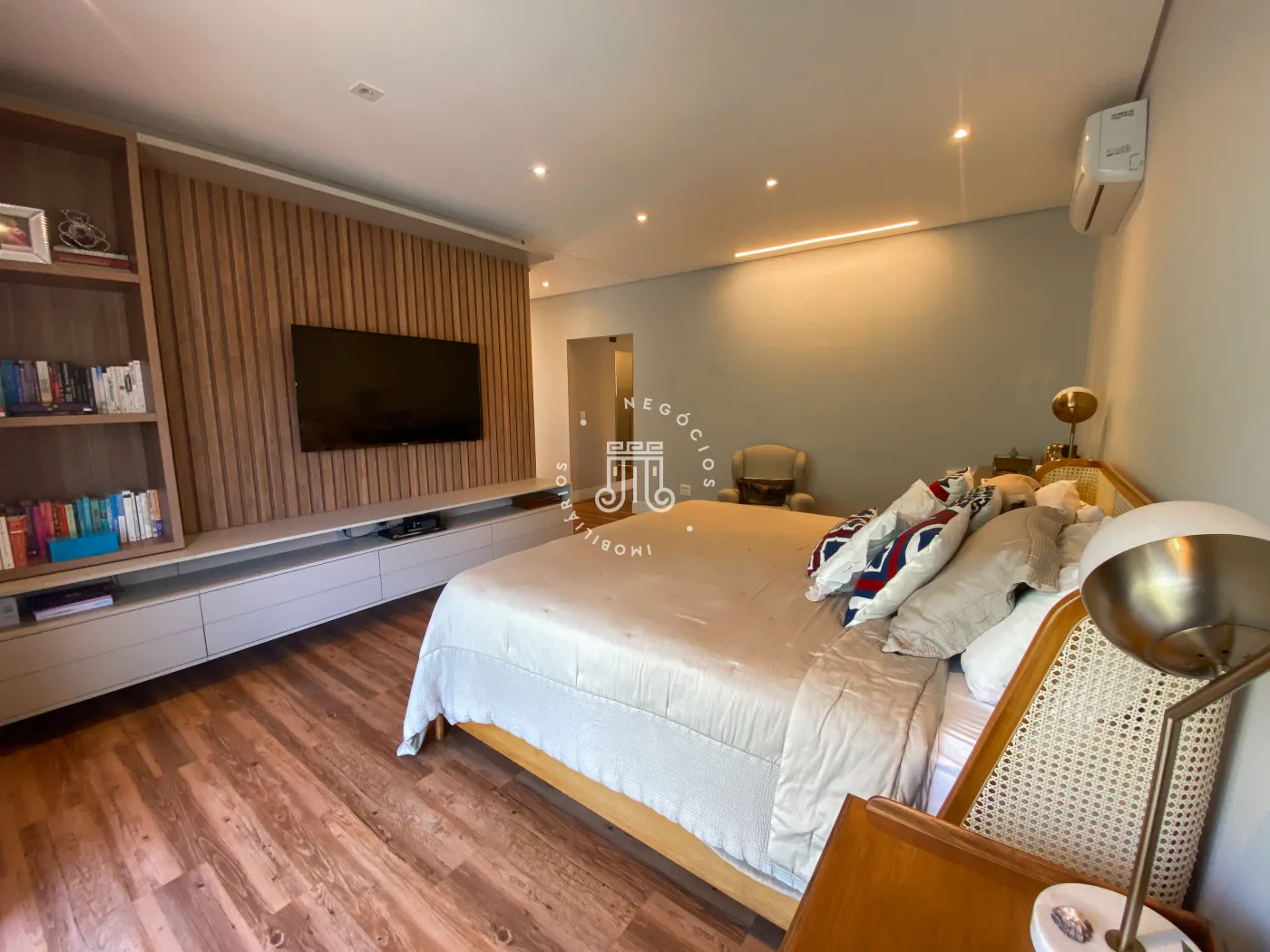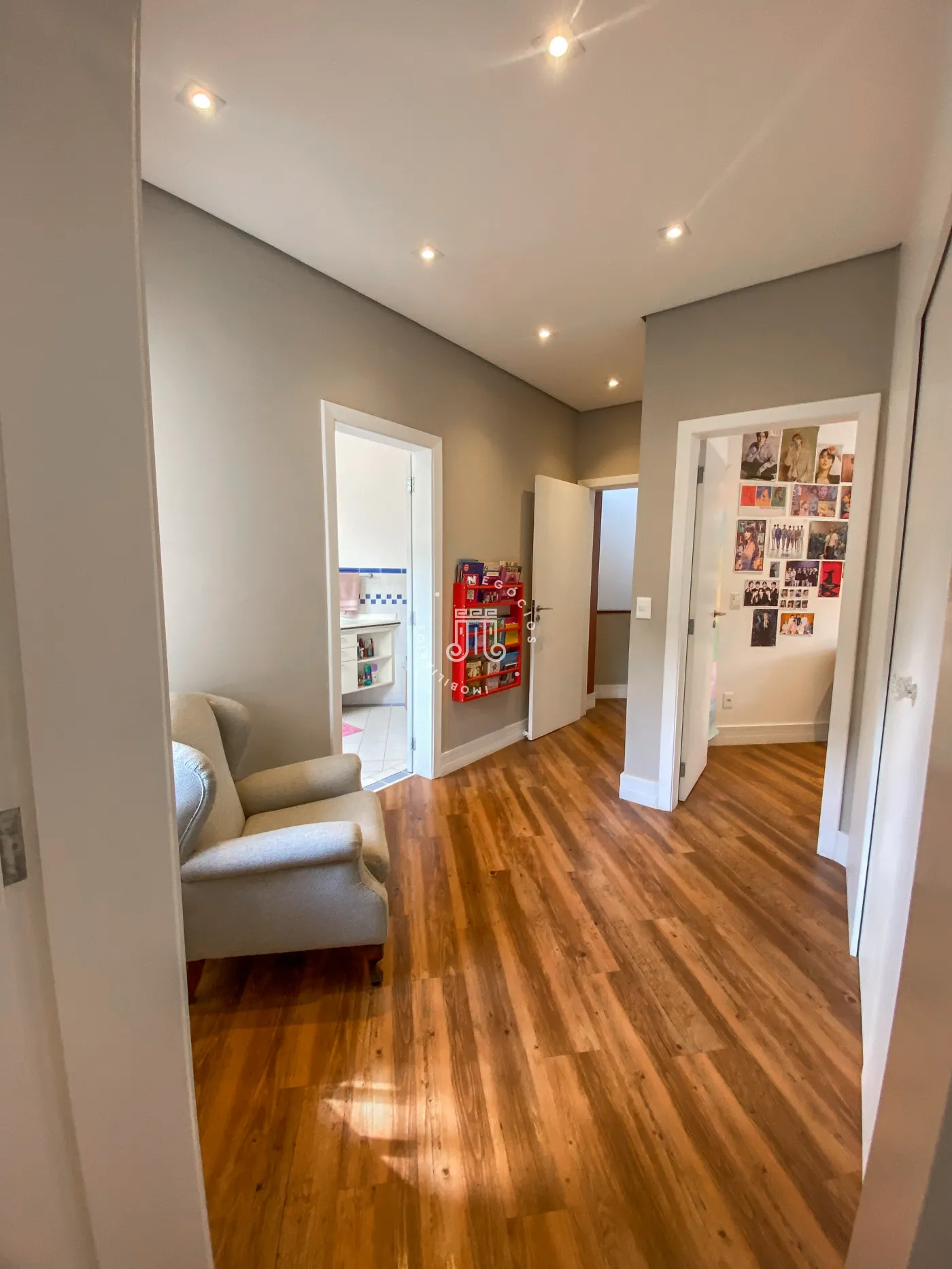 Alto Padrão, com 4 suítes, sendo 1 delas master com closet, todas com ar condicionado, living amplo contando com 4 ambientes (sala de estar, sala de jantar, sala de TV e lareira), lavabo, copa e cozinha, além de uma varanda com área de descanso. 3 Vagas de garagem cobertas.