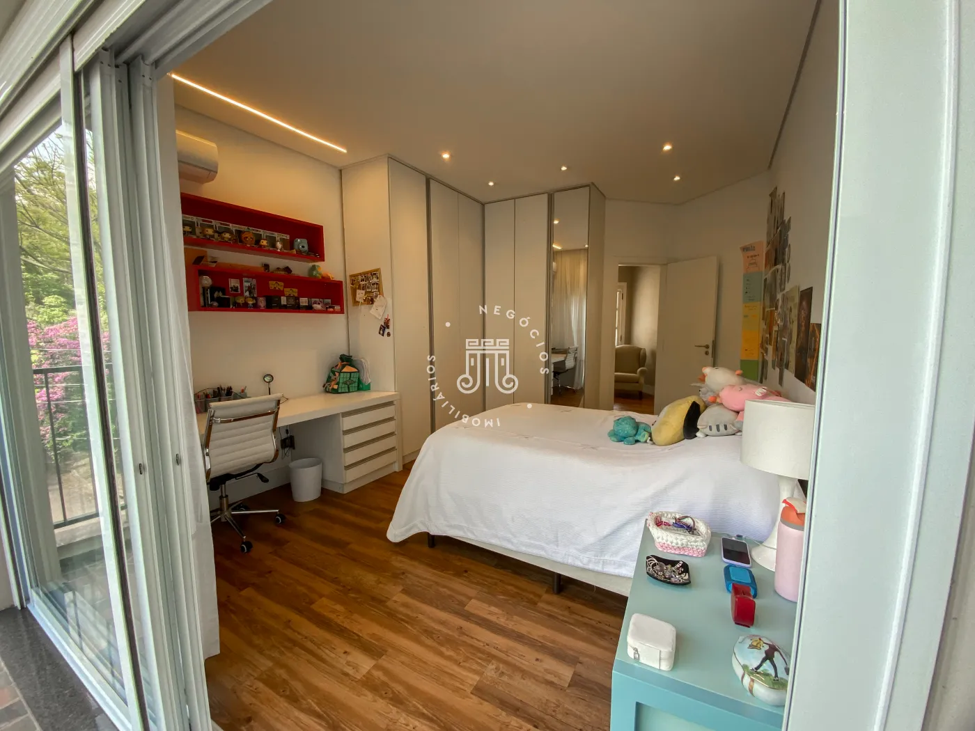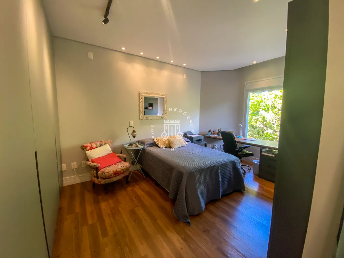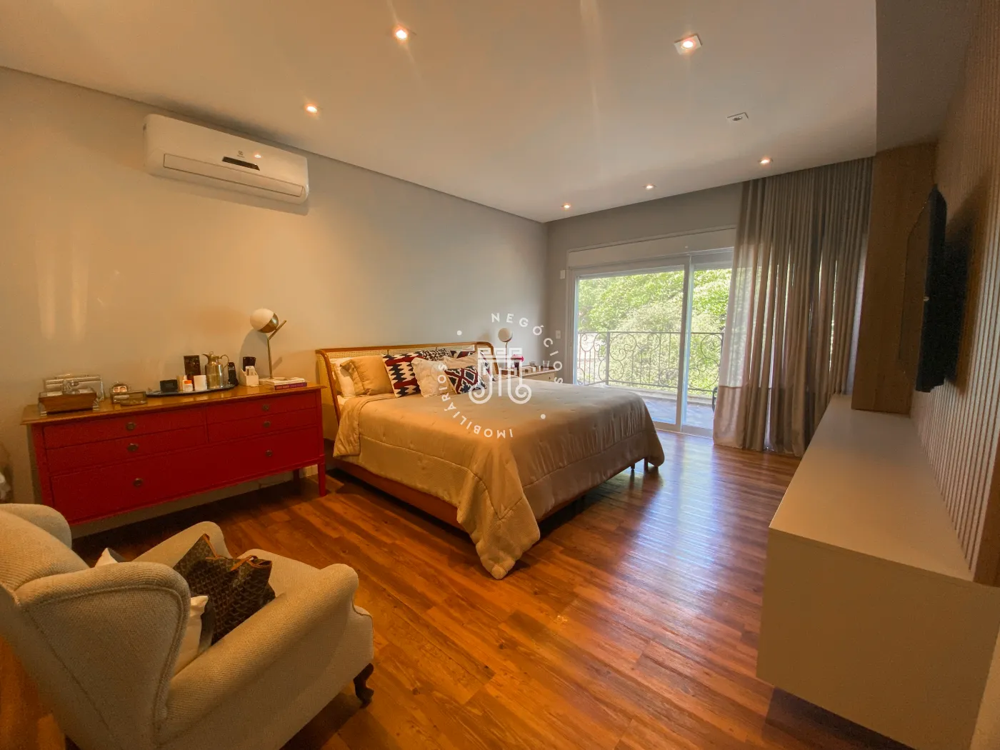 Alto Padrão, com 4 suítes, sendo 1 delas master com closet, todas com ar condicionado, living amplo contando com 4 ambientes (sala de estar, sala de jantar, sala de TV e lareira), lavabo, copa e cozinha, além de uma varanda com área de descanso. 3 Vagas de garagem cobertas.