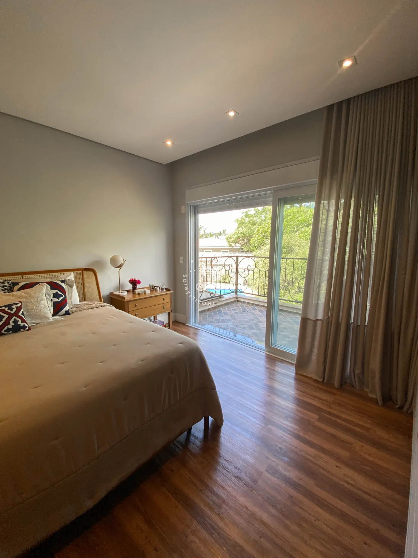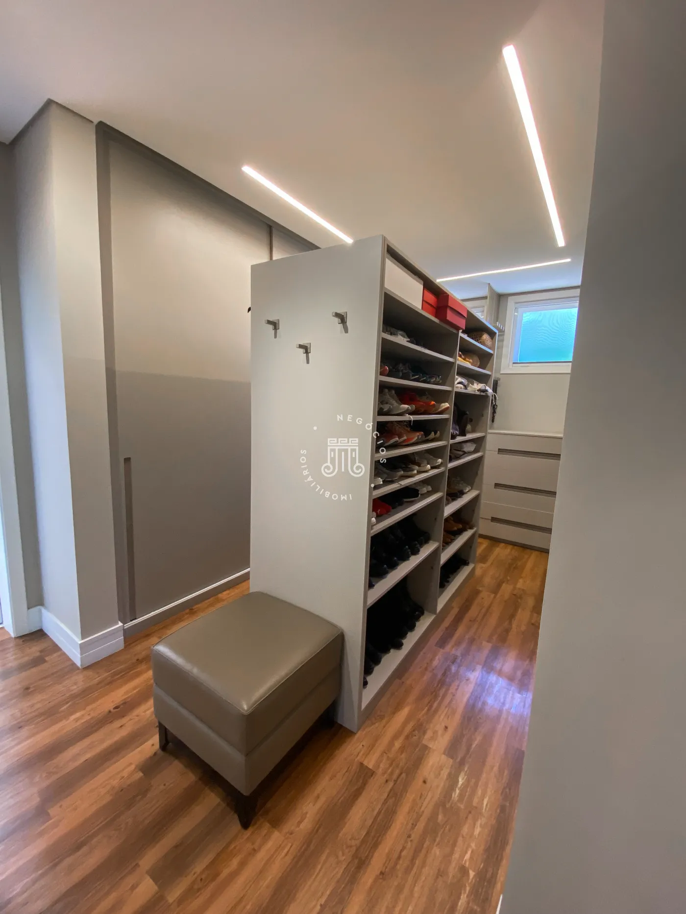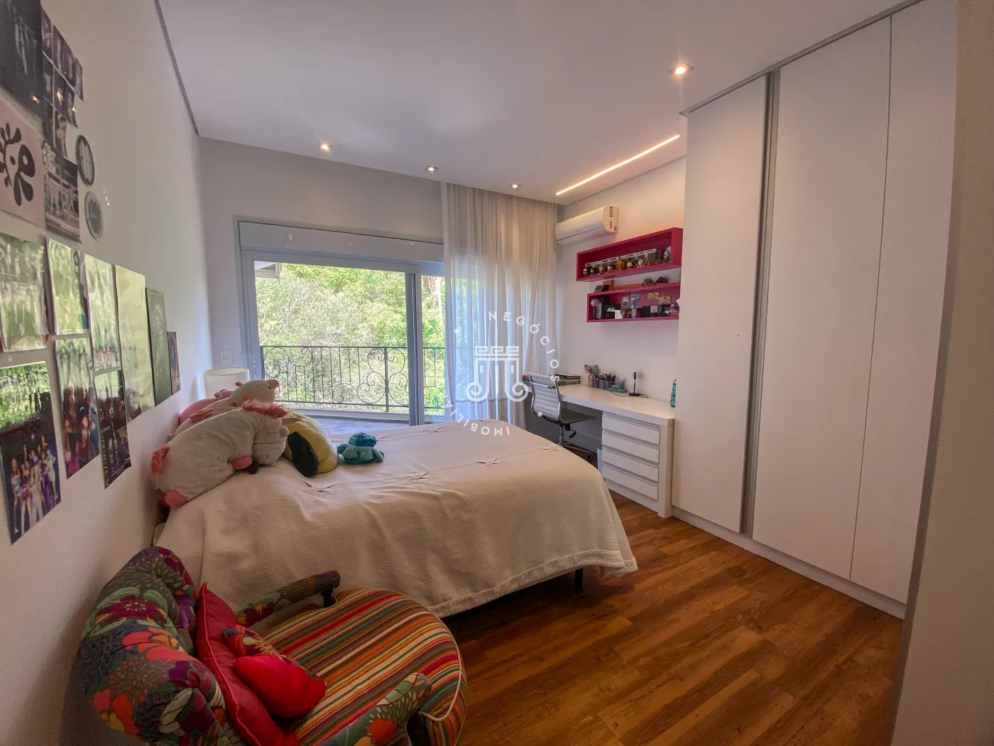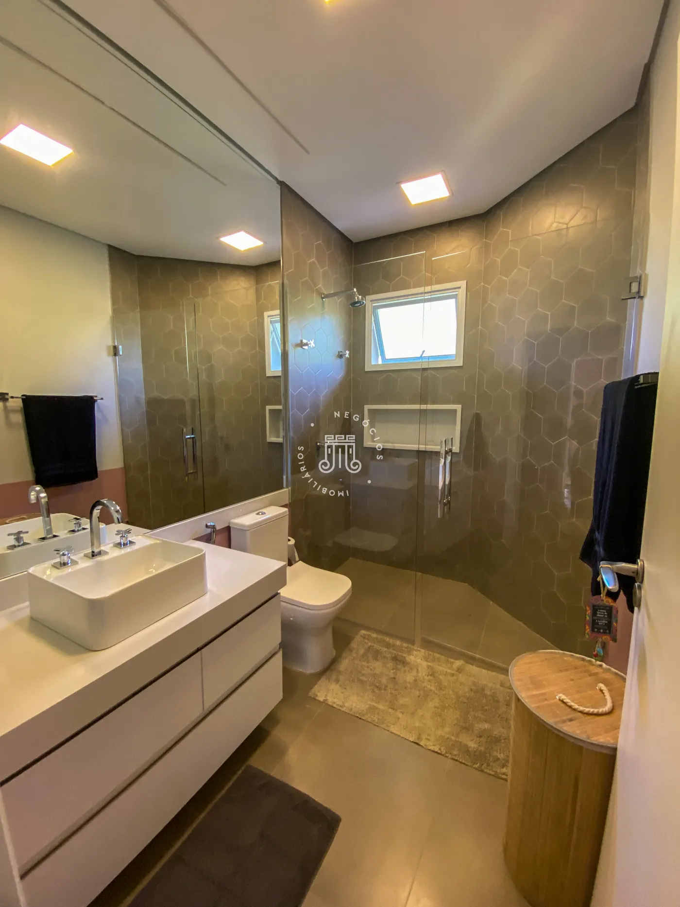 Alto Padrão, com 4 suítes, sendo 1 delas master com closet, todas com ar condicionado, living amplo contando com 4 ambientes (sala de estar, sala de jantar, sala de TV e lareira), lavabo, copa e cozinha, além de uma varanda com área de descanso. 3 Vagas de garagem cobertas.