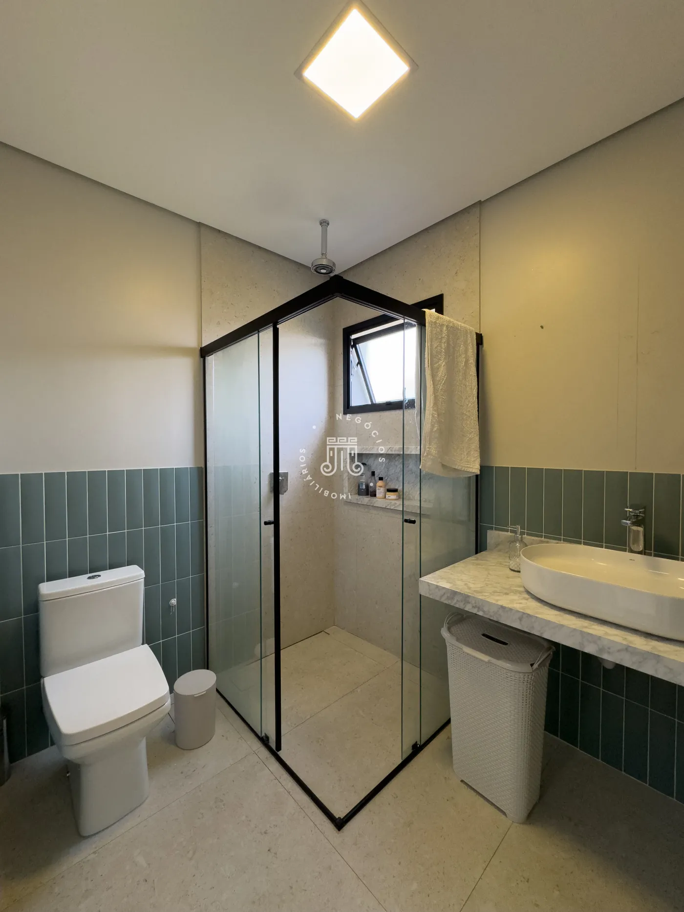 - 3 suítes, sendo uma suíte máster com ar condicionado instalado e closet iluminado por claraboia. Todas as suítes apresentam amplas varandas para curtir o nascer e o pôr do sol, os quartos possuem piso vinílico, venezianas automatizadas por controle remoto e tela mosquiteiro;