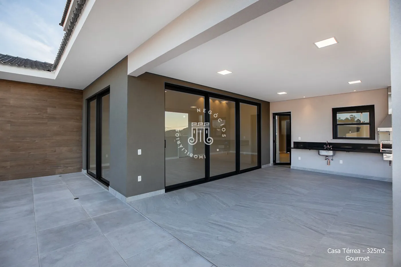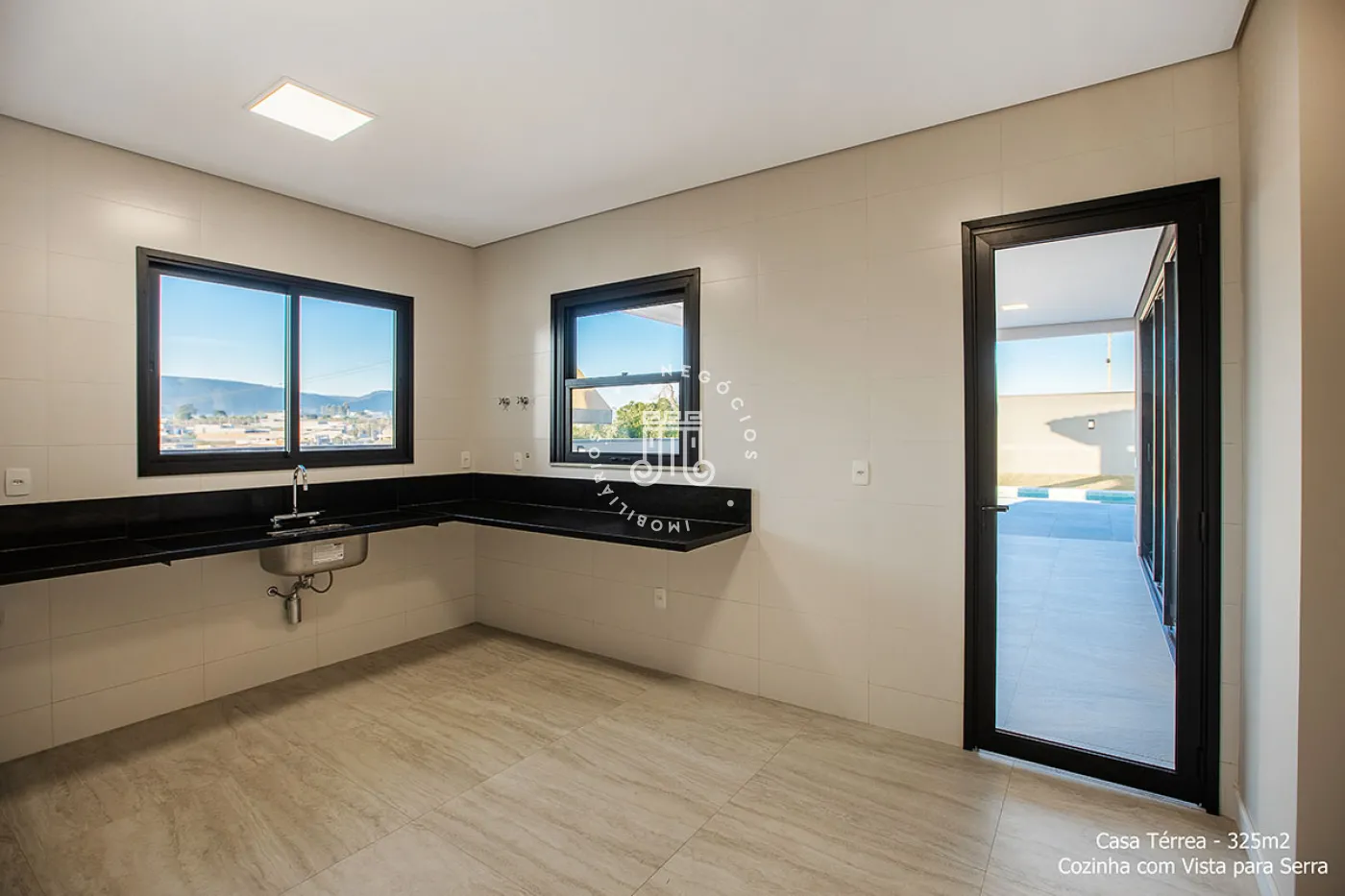 Sistema de aquecimento de água da residência é solar com apoio elétrico e da piscina, solar com apoio a gás. Infraestrutura para ar condicionado (07 pontos) toda pronta. Acabada com revestimentos (pisos, paredes, rodapés), forros, iluminação, caixilhos de alumínio, bancadas, louças, metais, box, espelhos e tela mosqueteira.