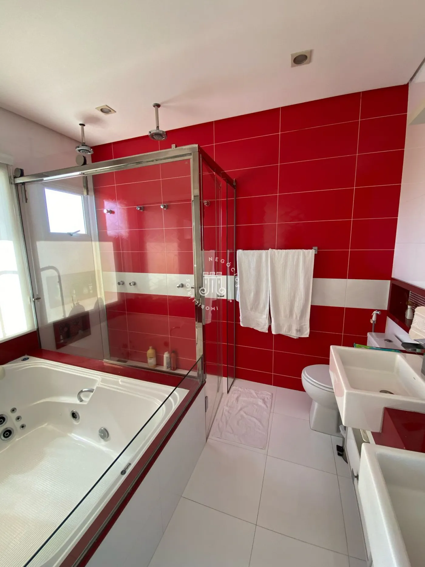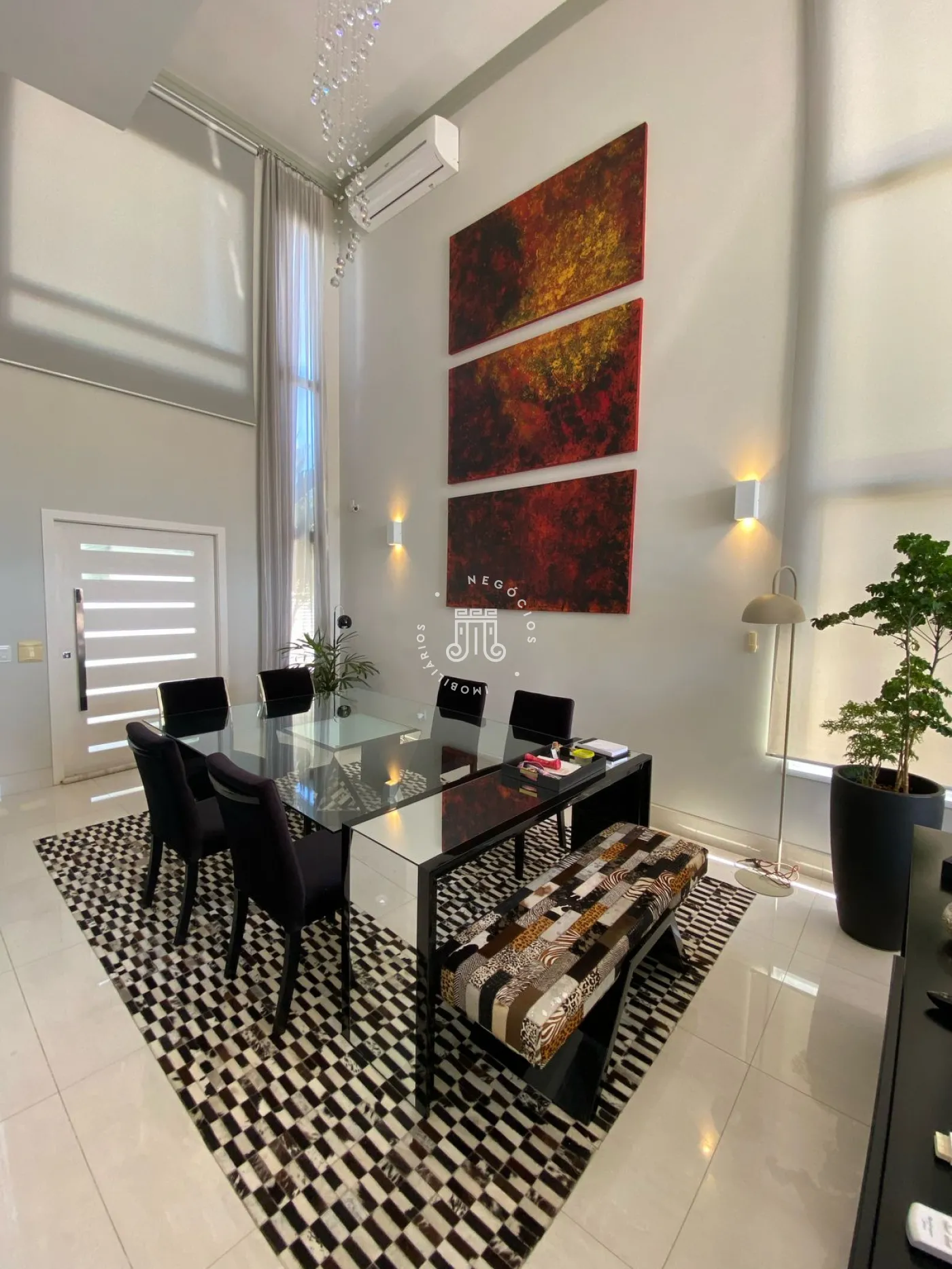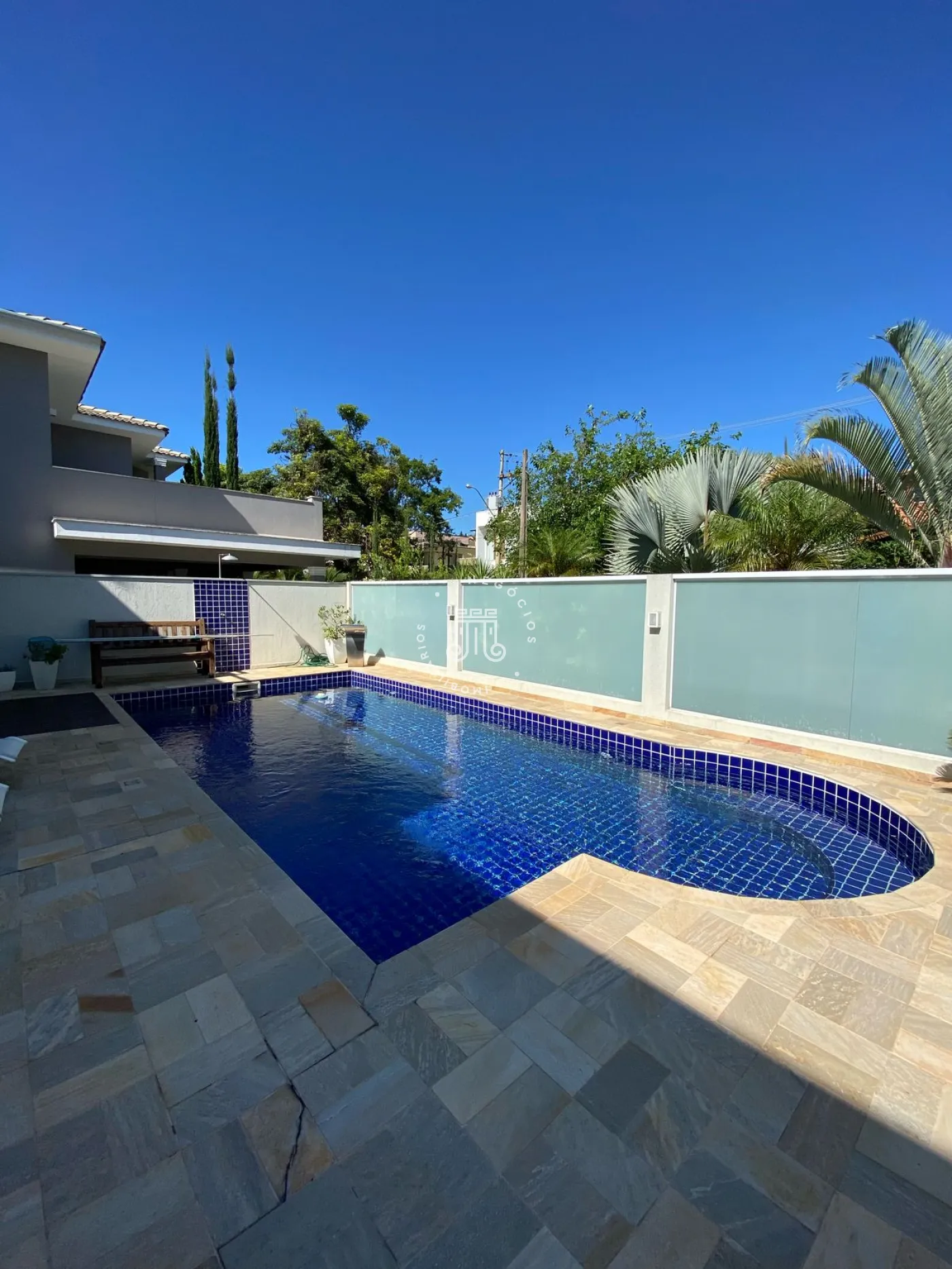 Maravilhosa casa com fino acabamento localizada em um terreno de 529m², com 332m² divididos em 3 quartos, sendo 1 suíte master com closet, banheira e varanda; sala de estar e jantar integradas e com pé direito duplo; cozinha; despensa; lavabo; ampla sala de TV (podendo ser convertida em mais um dormitório ou espaço home office); espaço gourmet com churrasqueira, piscina aquecida e dois vestiários completos; lavanderia/área de serviço; 8 espaçosas vagas de garagem, sendo 4 cobertas; espaço na garagem podendo ser utilizado como salão.