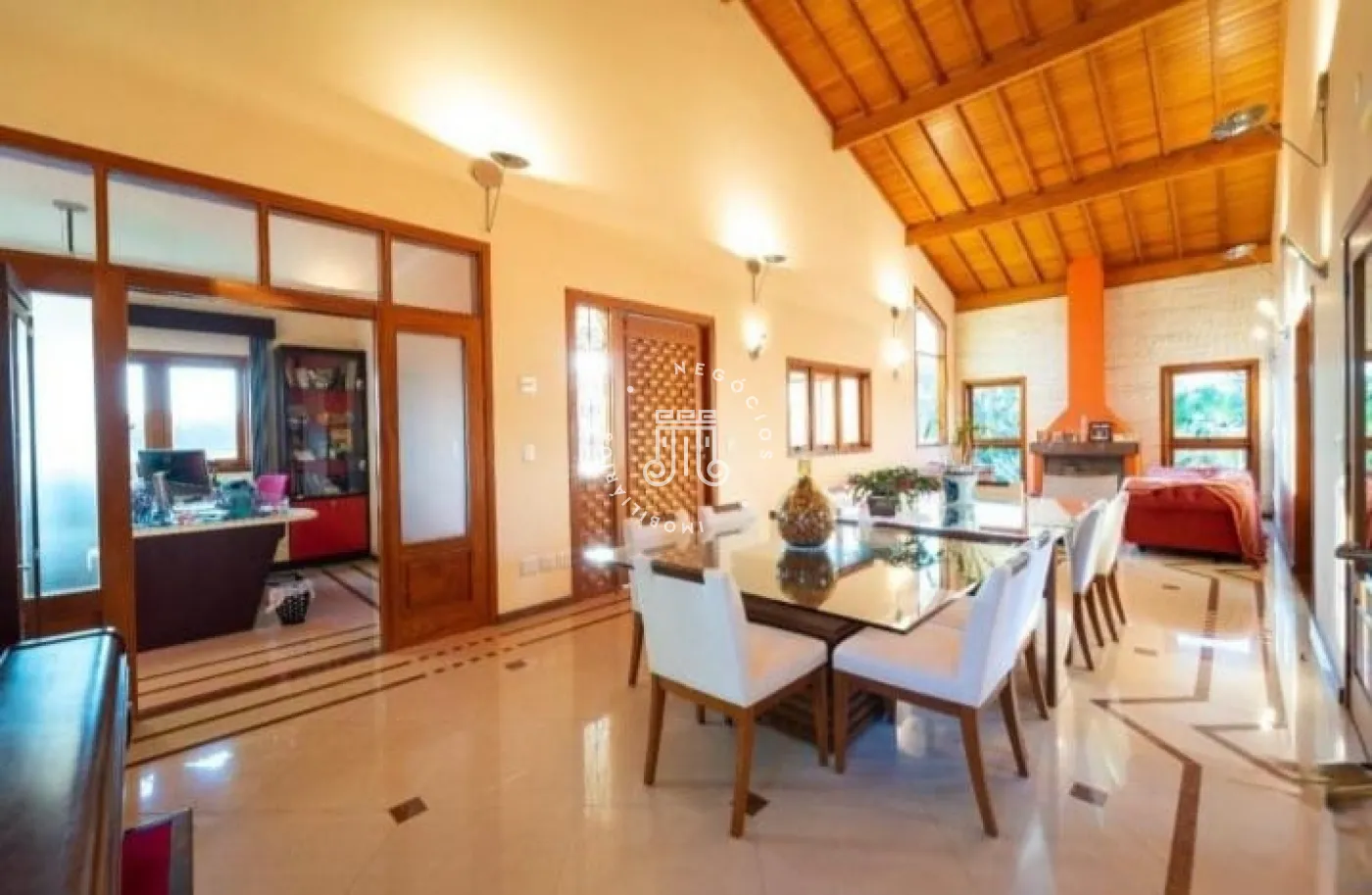 Casa de alto padrão, no ponto mais alto do condomínio, com linda vista para a Serra do Japi, construída ao redor do jardim de inverno. Com 3 suítes amplas, sala de estar, sala de jantar e sala íntima, home office com 2 pontos de trabalho, cozinha e copa, lavabo, banheiro social, banheiro de serviço, 10 vagas de garagem, sendo 4 cobertas.